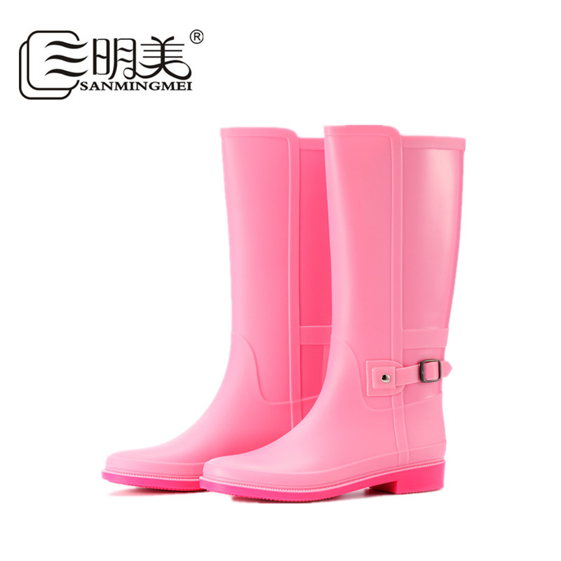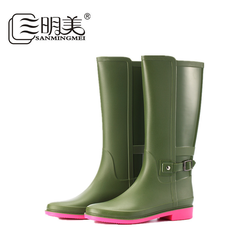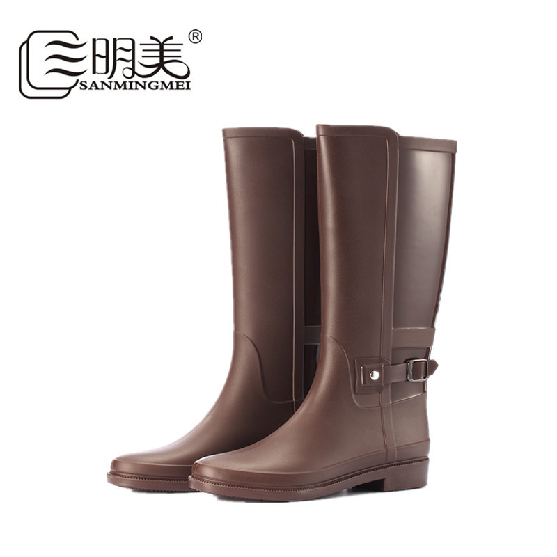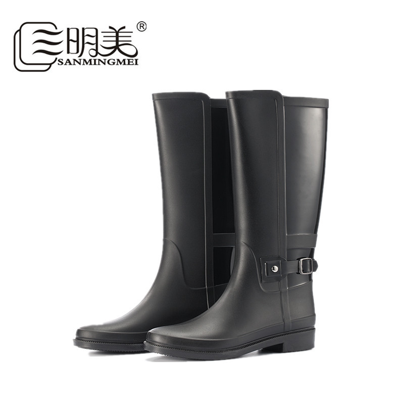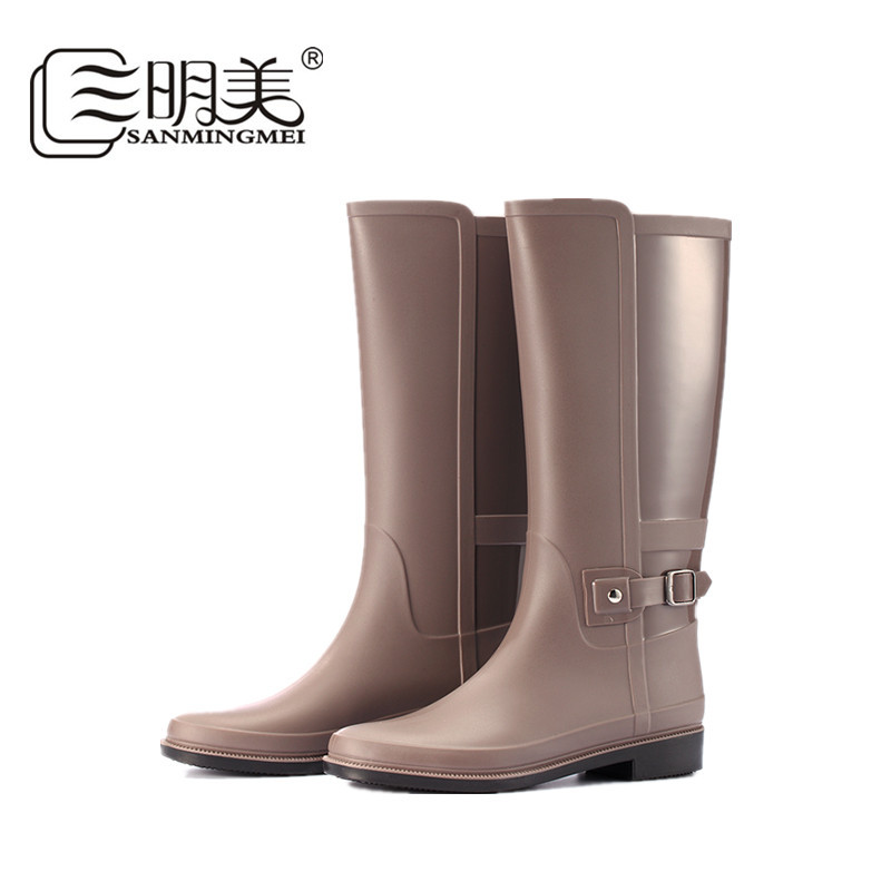 三明美秋冬新品雨靴女纯色搭扣高筒雨鞋防滑防水鞋1793耐磨长筒