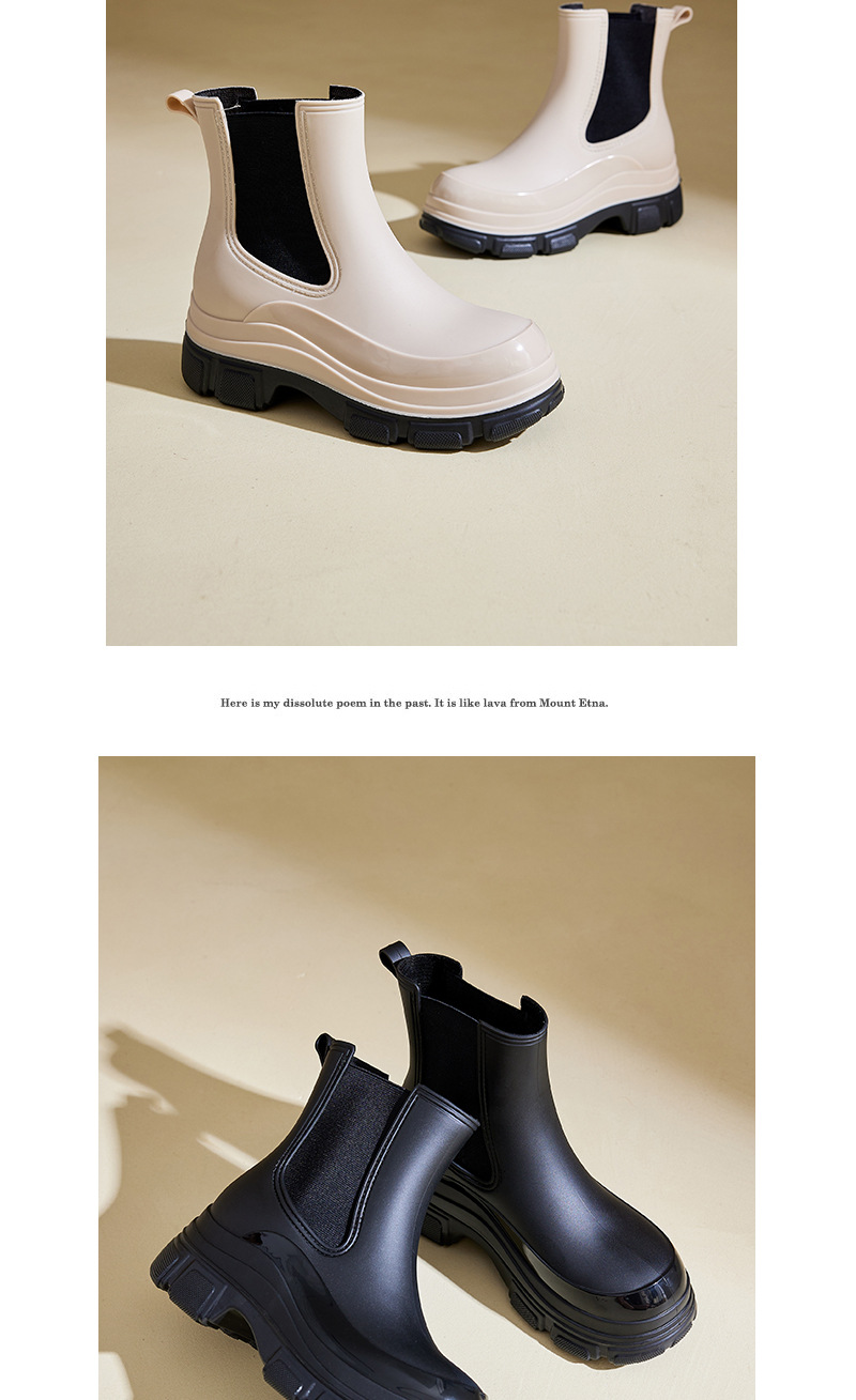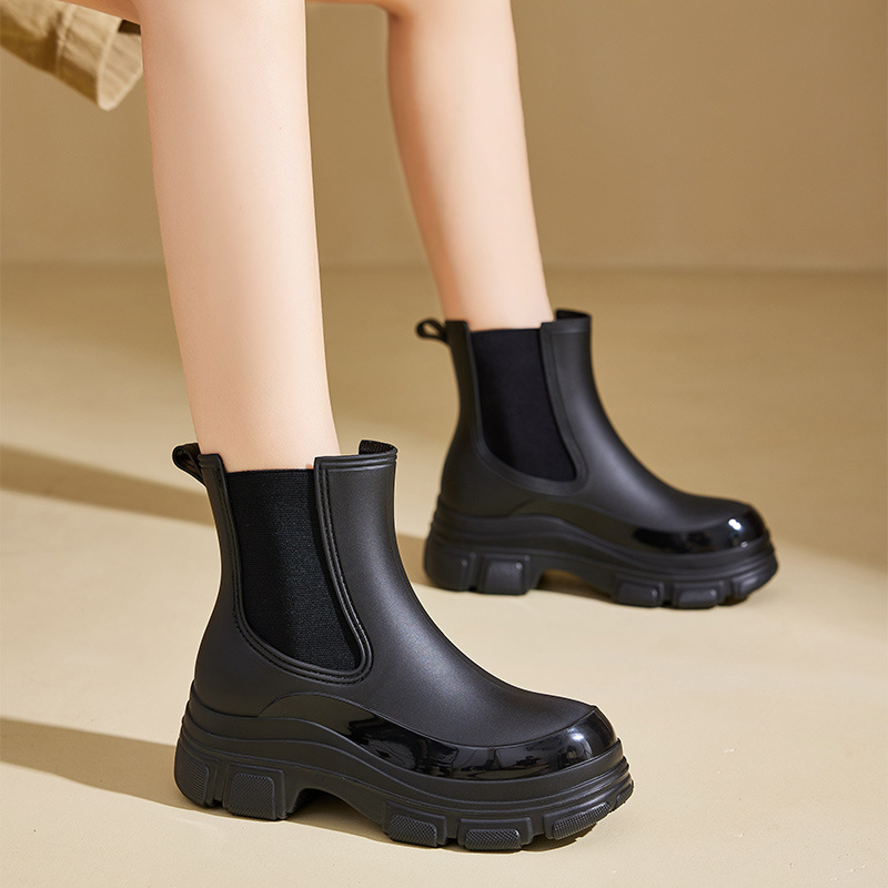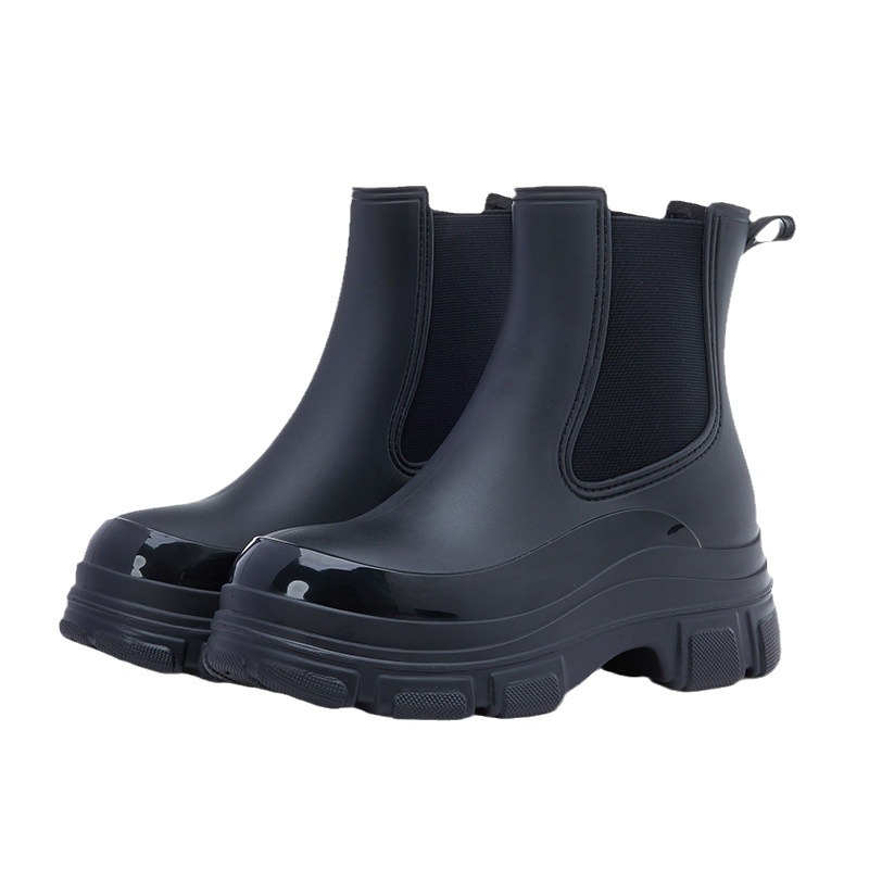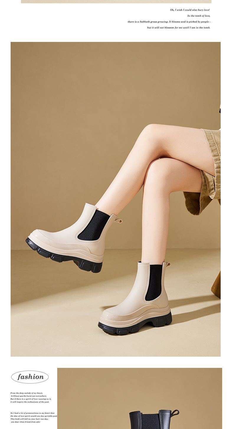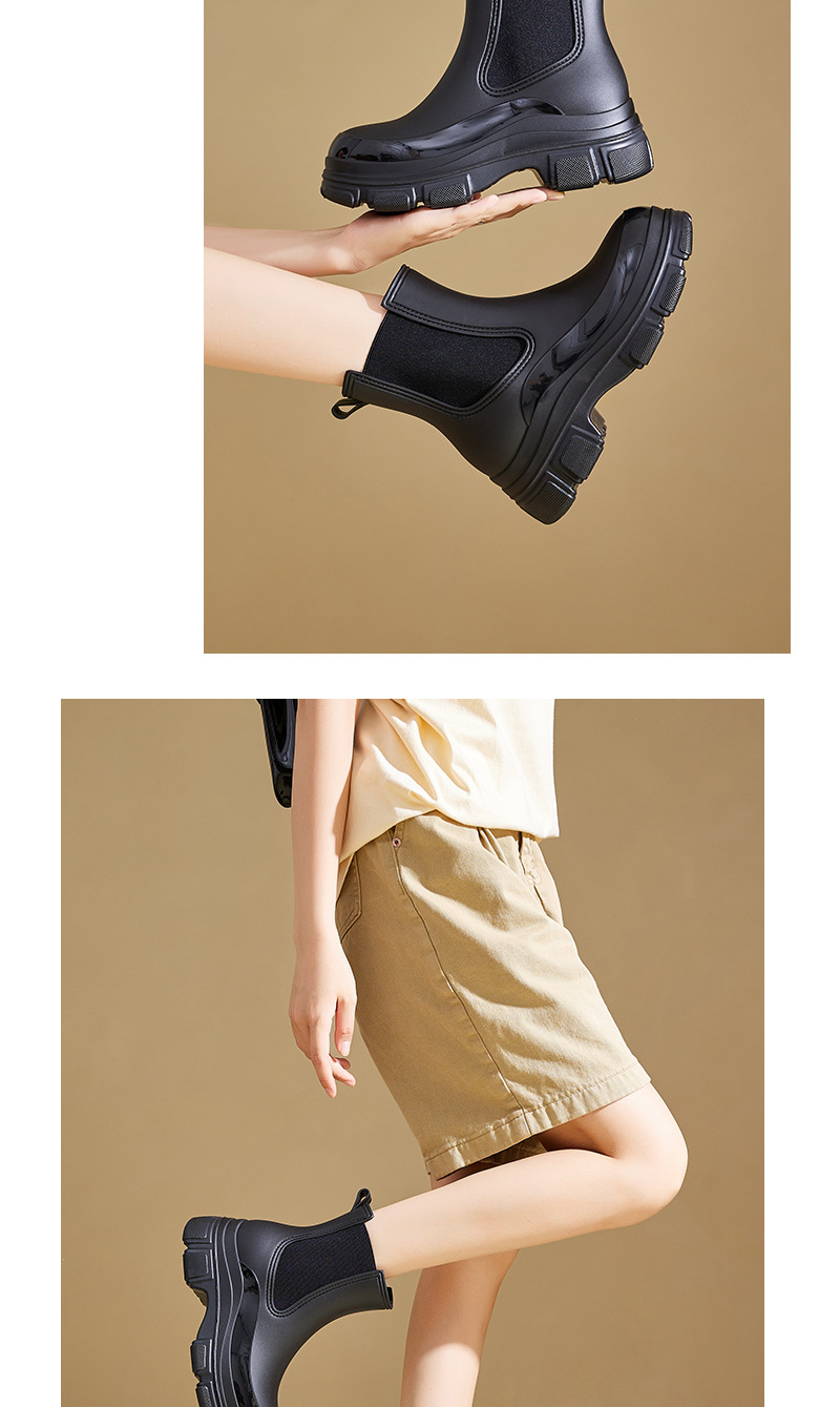 新款厚底松紧口雨鞋中筒女雨靴切尔西防水防滑下雨室外可穿中筒靴