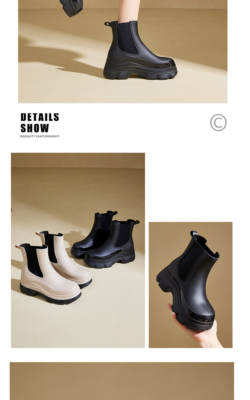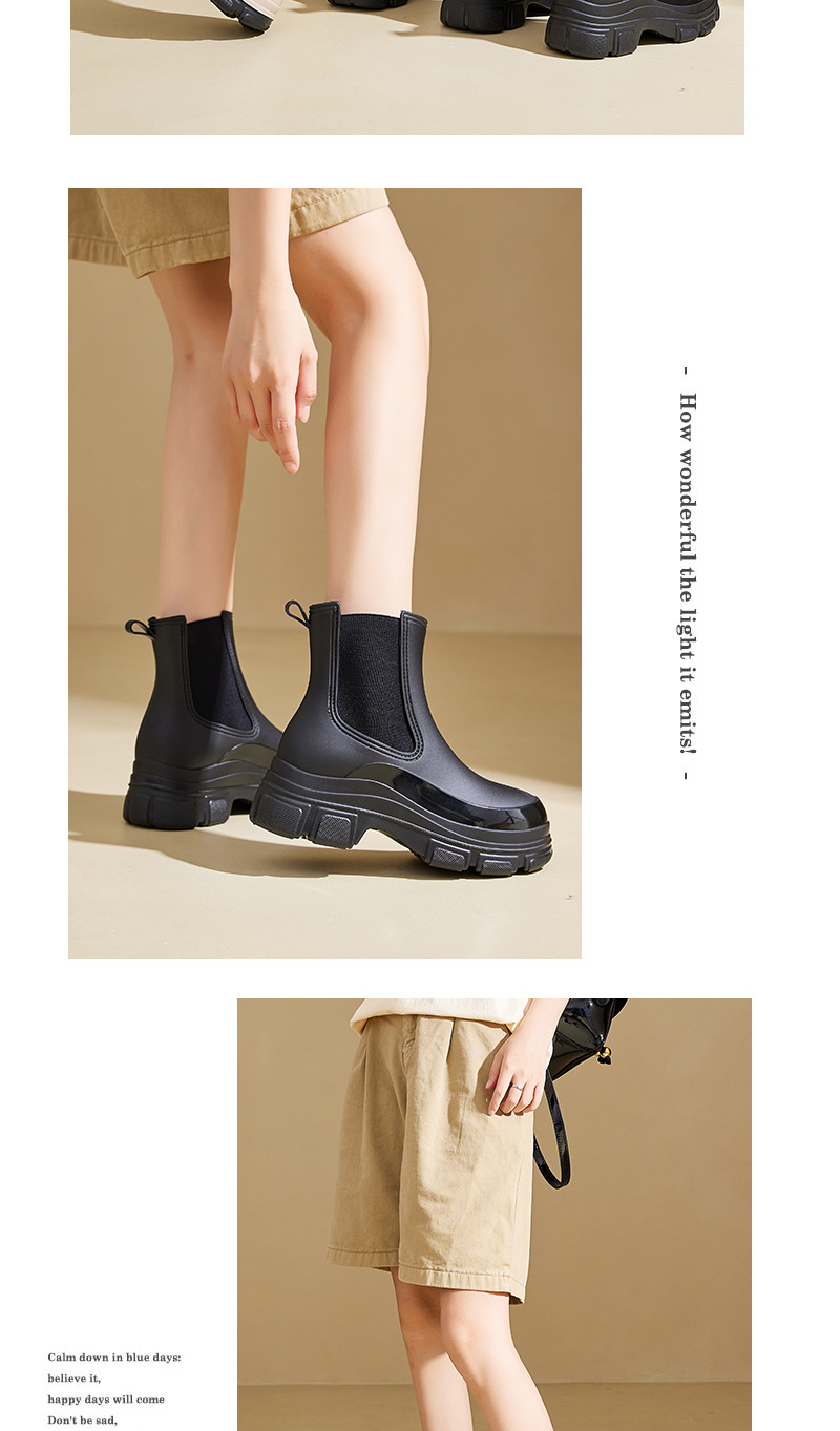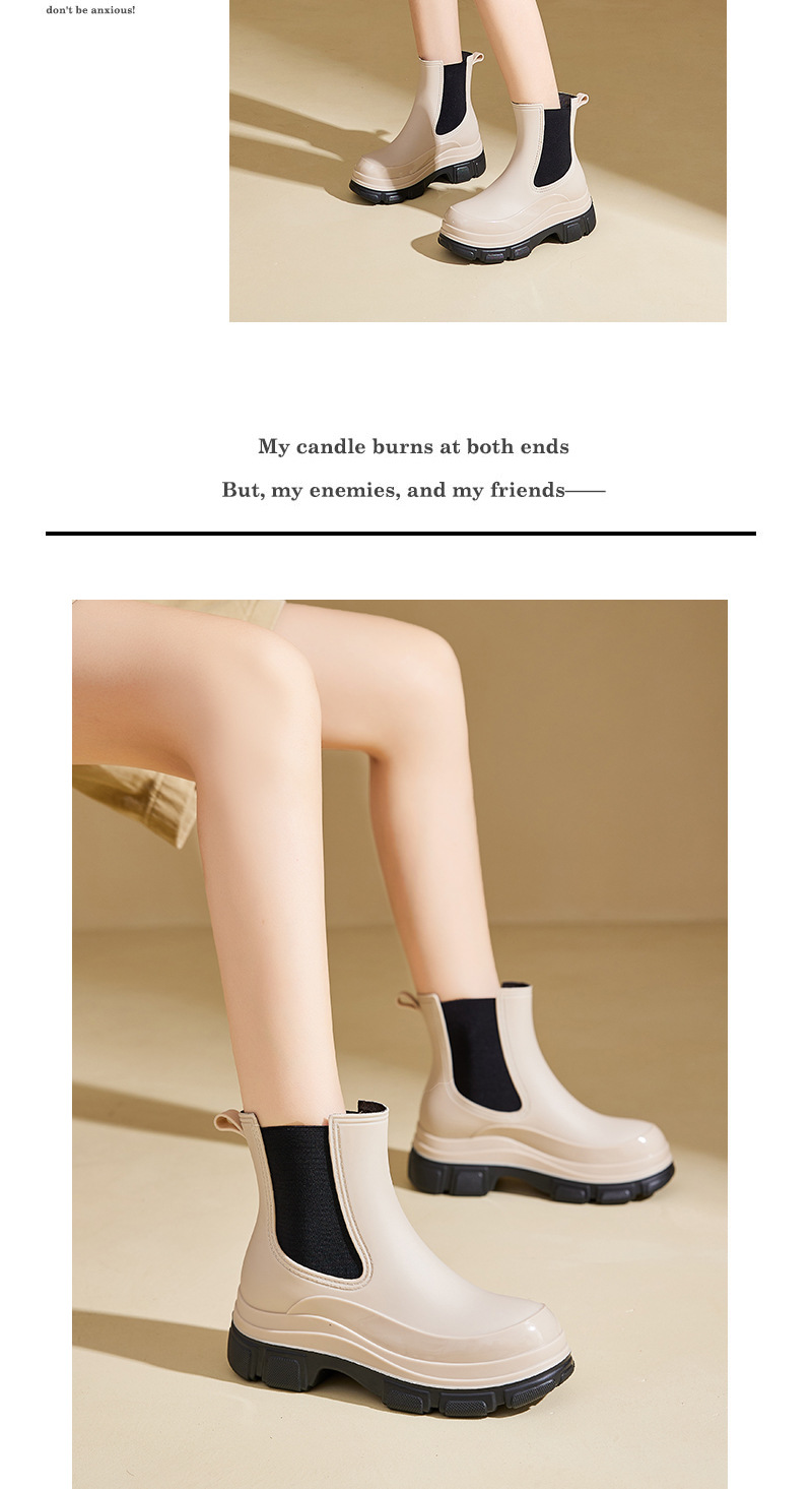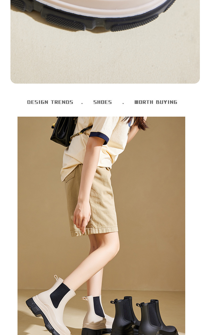 新款厚底松紧口雨鞋中筒女雨靴切尔西防水防滑下雨室外可穿中筒靴