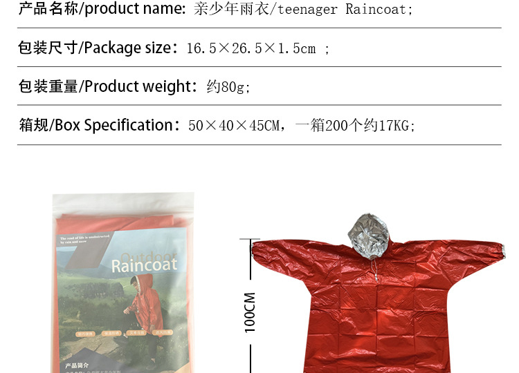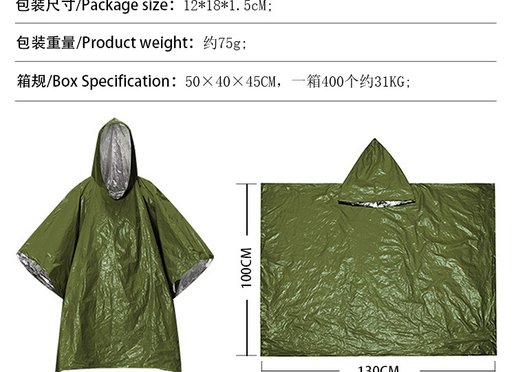 cross-border outdoor emergency raincoat mountaineering camping portable thermal poncho disposable multifunctional raincoat wholesale