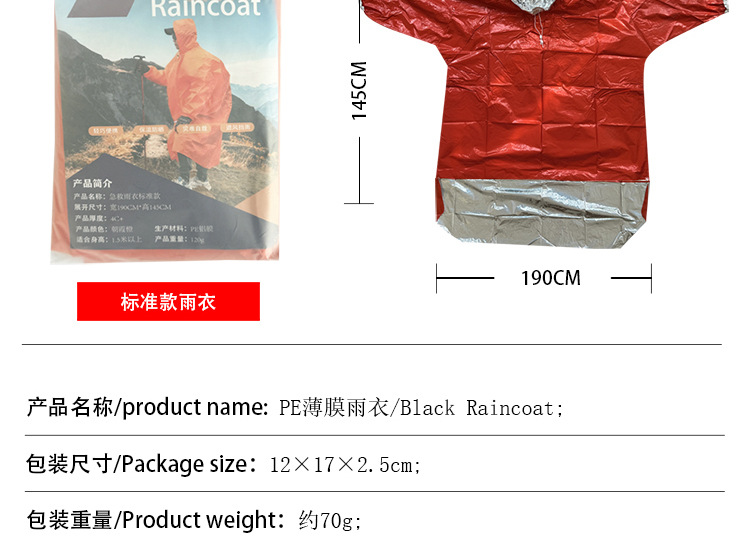 跨境户外应急雨衣登山露营便携保温雨披一次性多功能雨衣批发