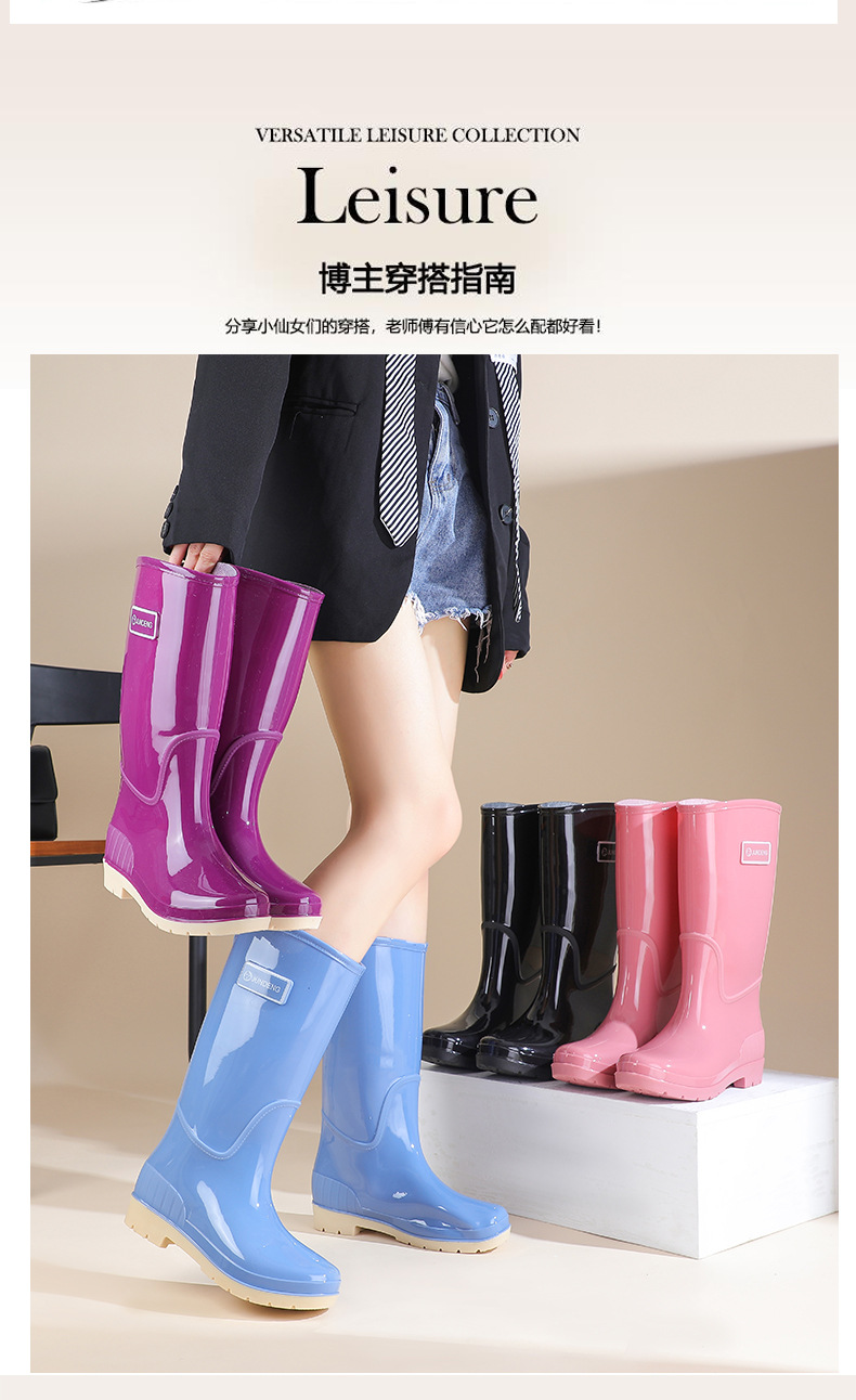 2026新款跨境时尚女雨鞋高筒女式雨靴防滑防水PVC女水鞋批发