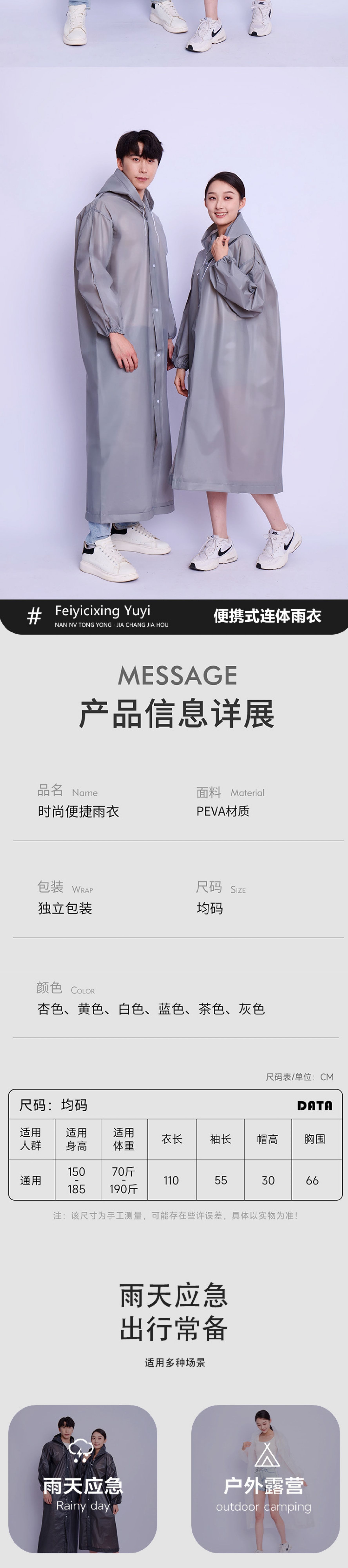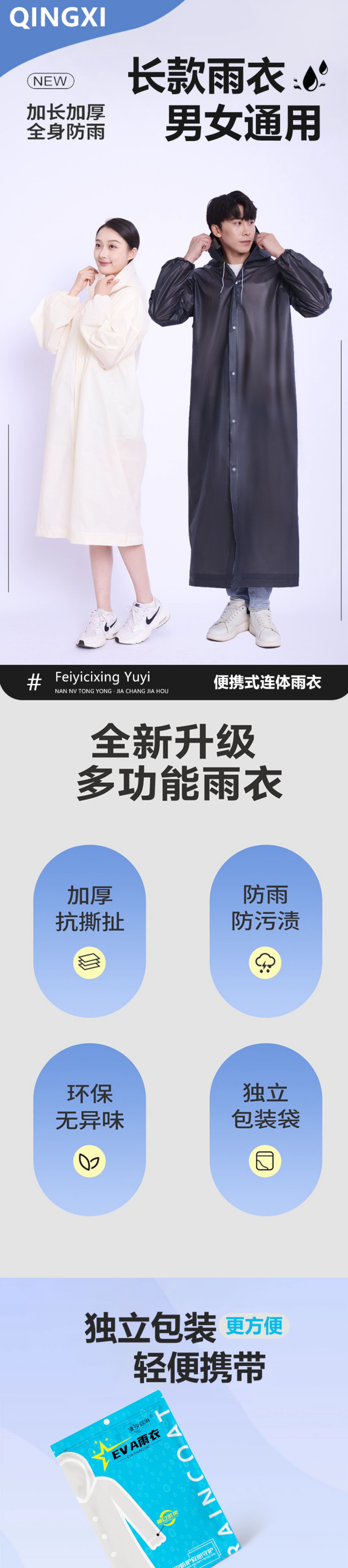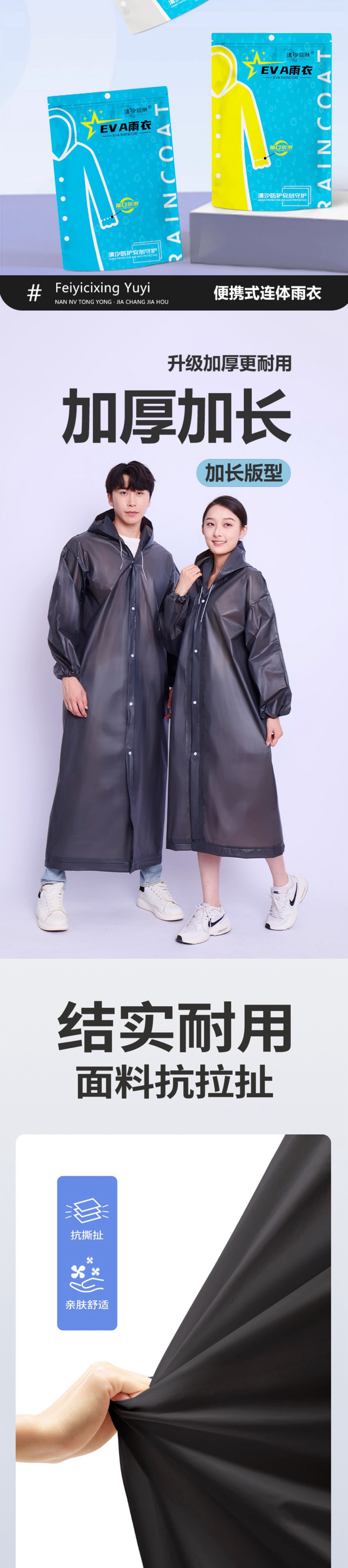 非一次性EVA雨衣成人长款加厚防暴雨雨披户外旅行便携式连体雨衣