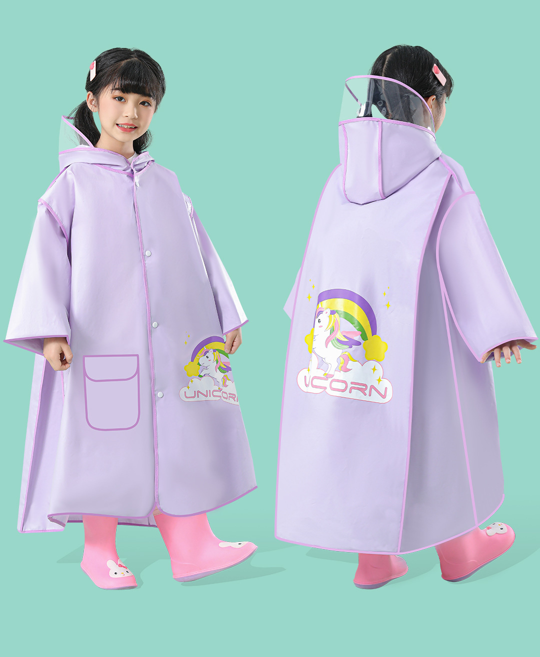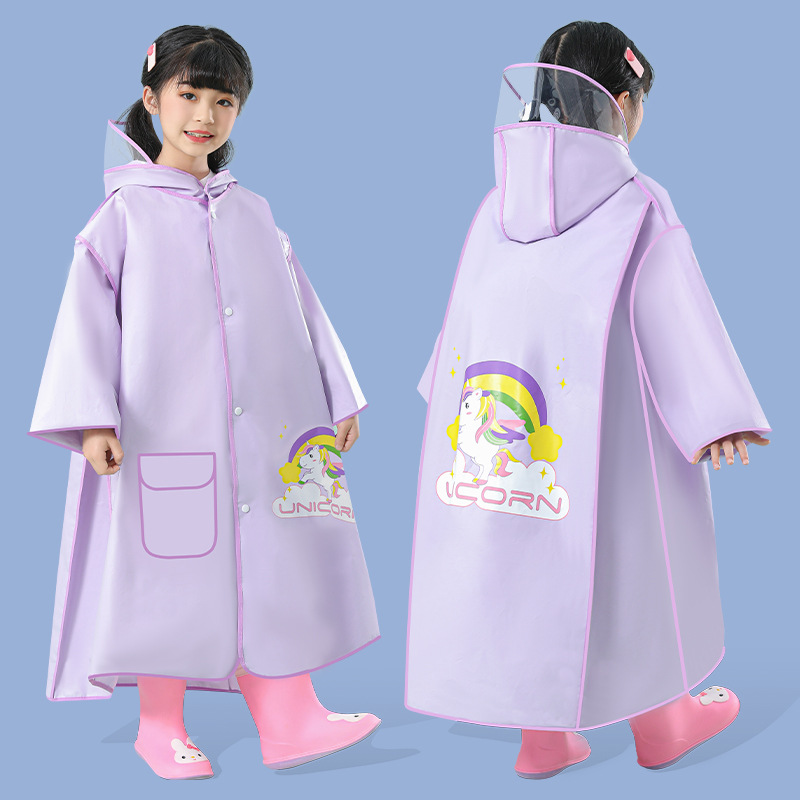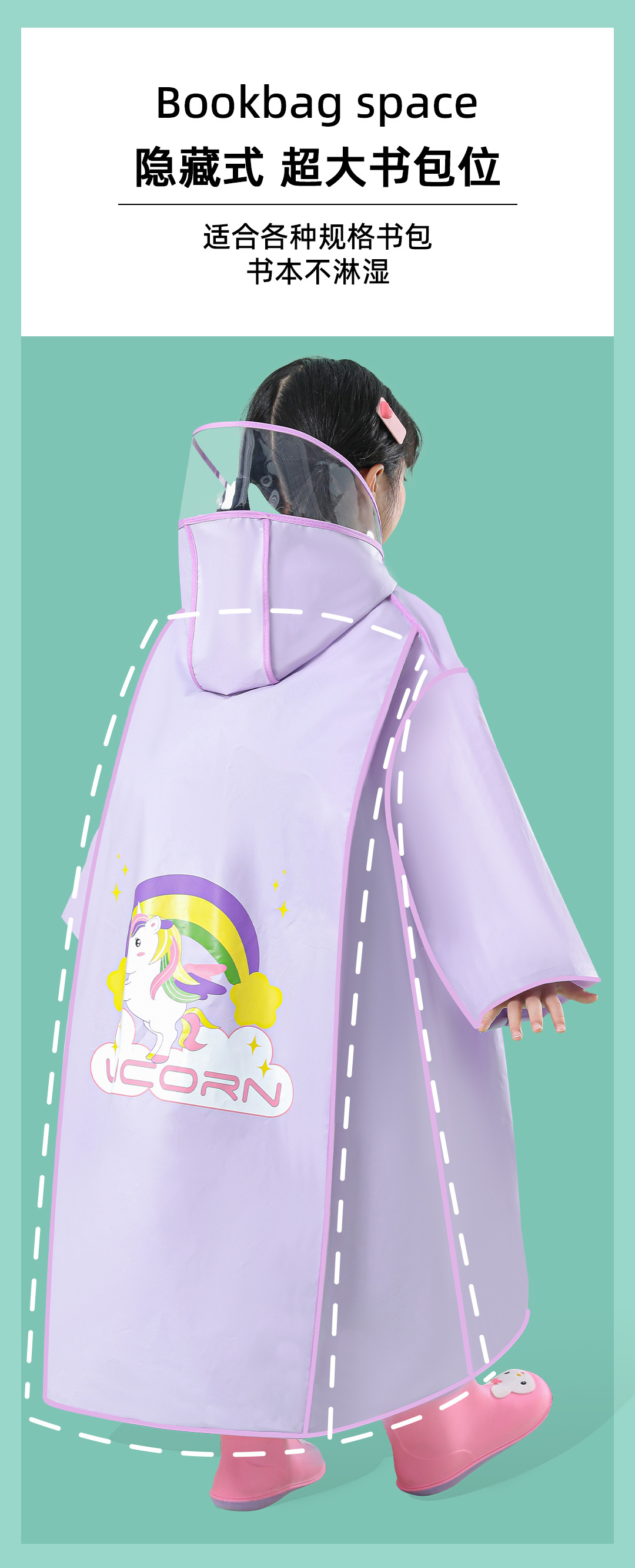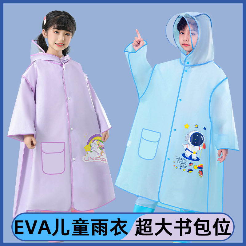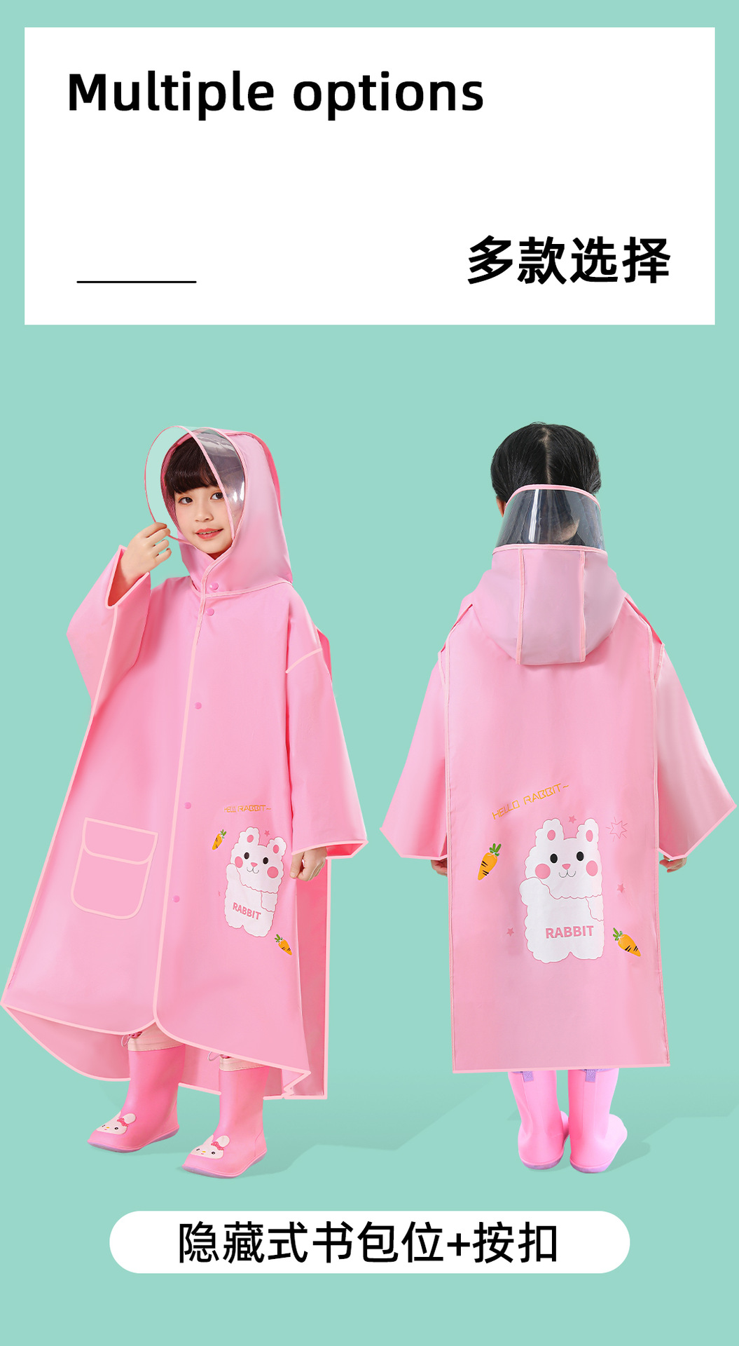 儿童雨衣小学生上学幼儿宝宝男女童小女孩卡通透明雨披带书包位