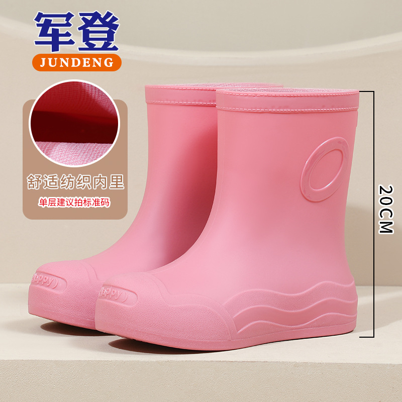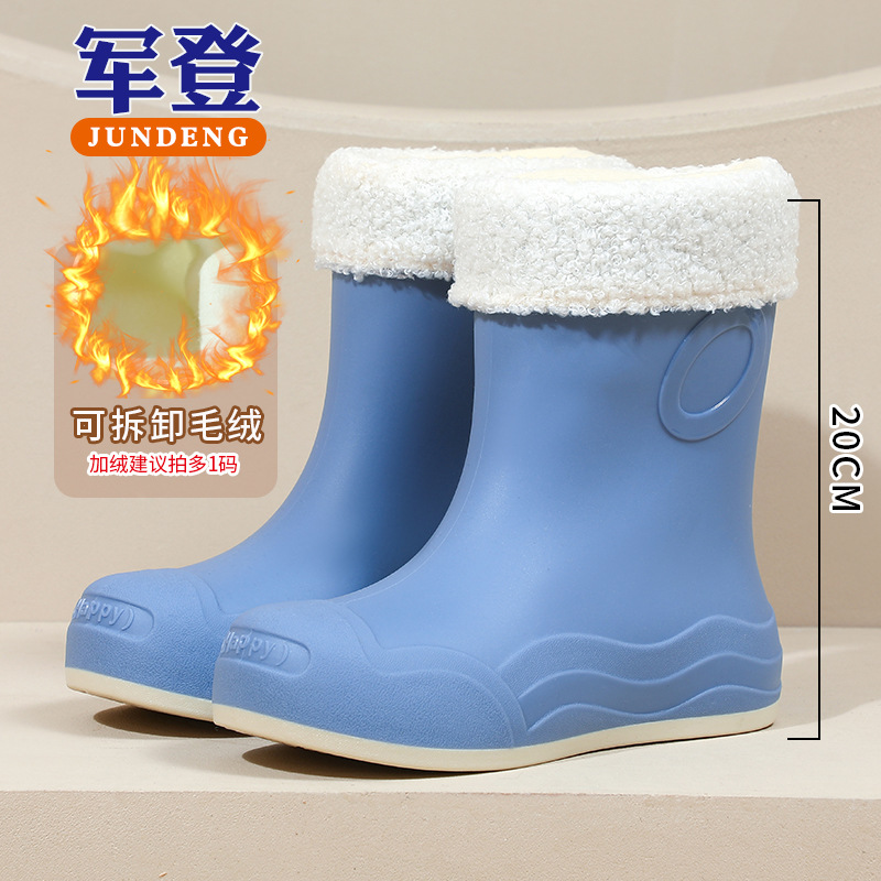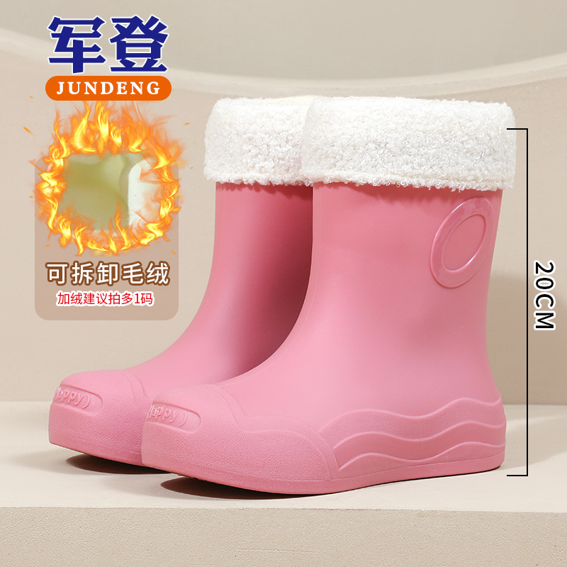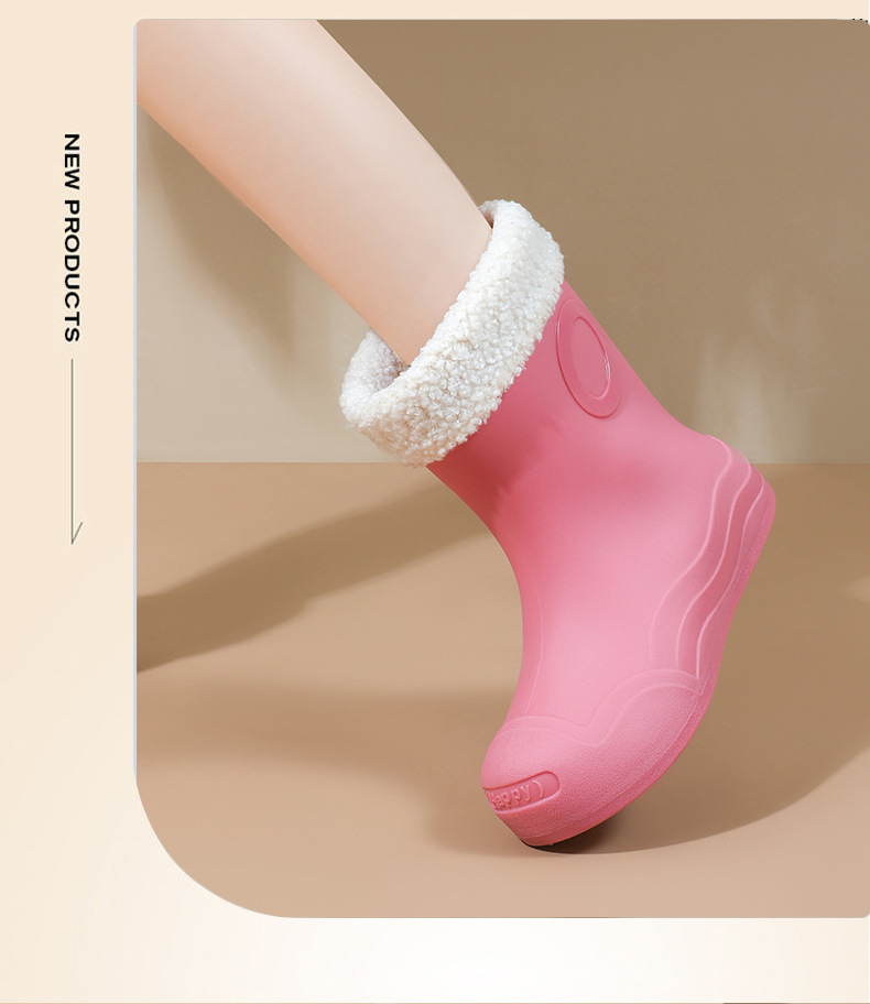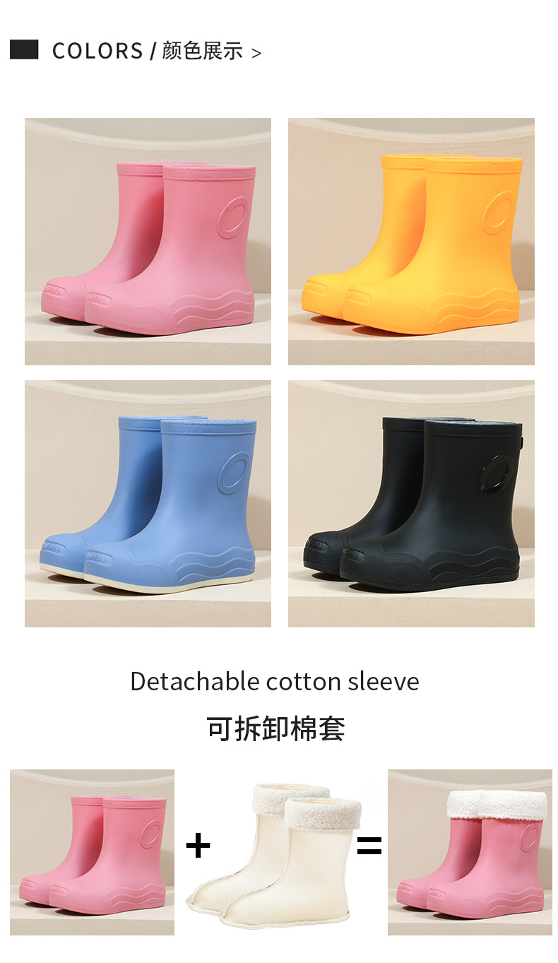 糖果色女士中筒防水防滑加绒雨靴 韩版耐磨时尚雨鞋新款女外穿