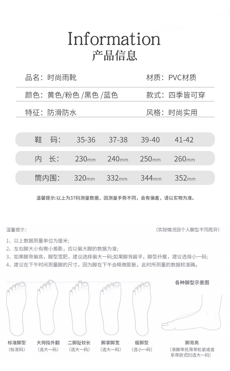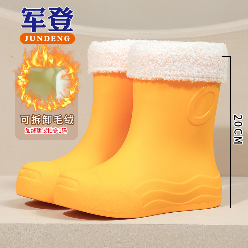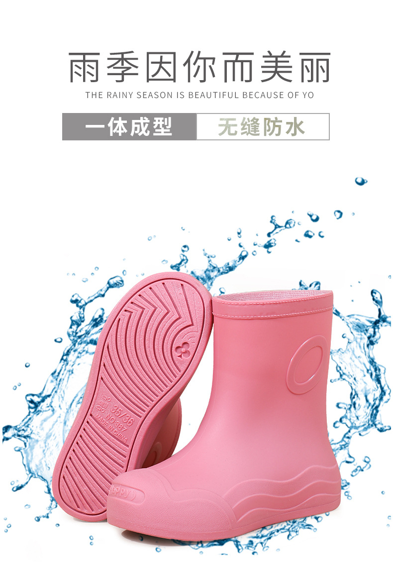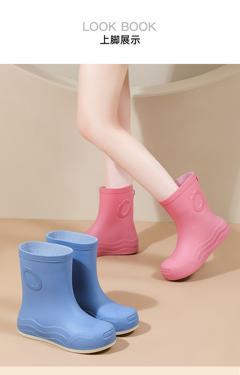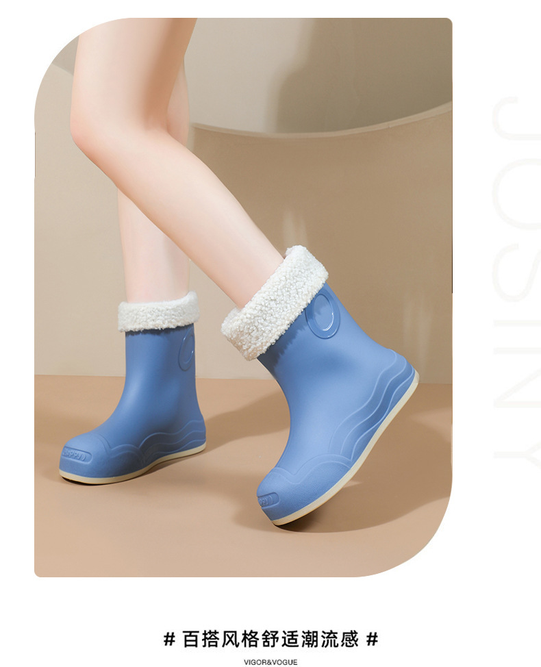 糖果色女士中筒防水防滑加绒雨靴 韩版耐磨时尚雨鞋新款女外穿