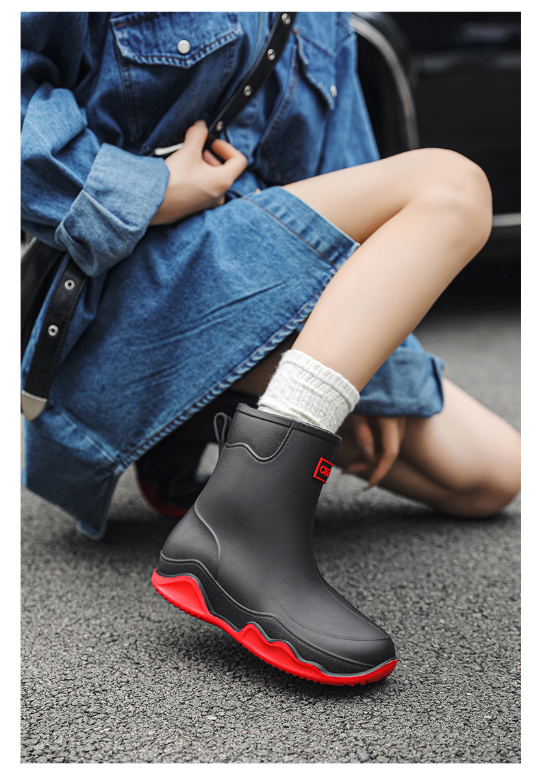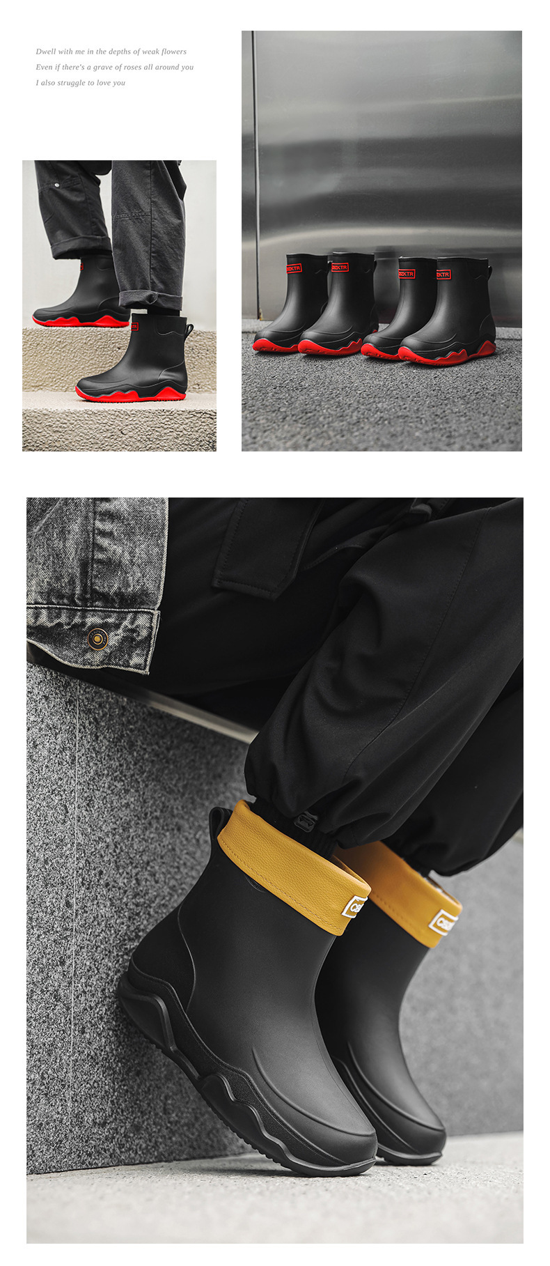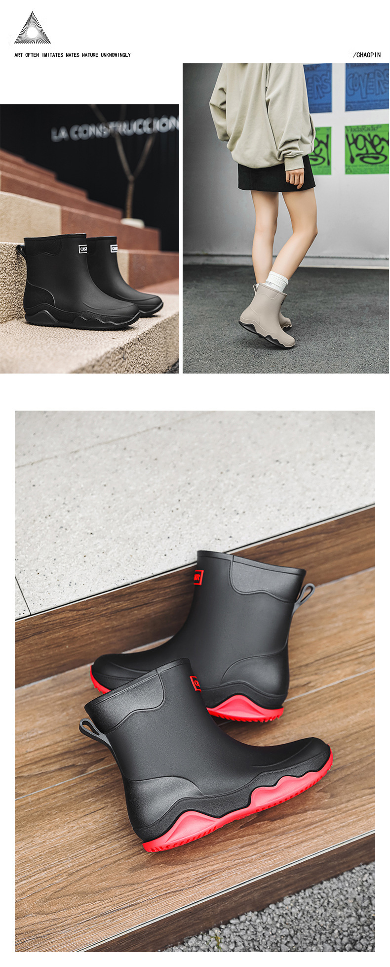 跨境时尚雨鞋女外穿百搭情侣水鞋软底舒适防滑厨房胶鞋防水洗车鞋