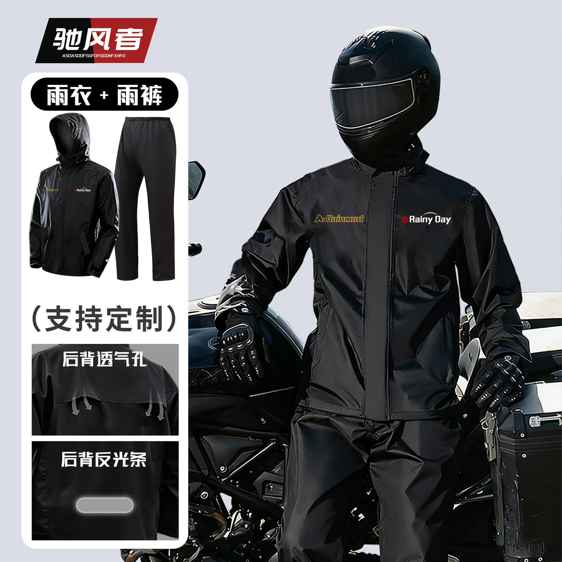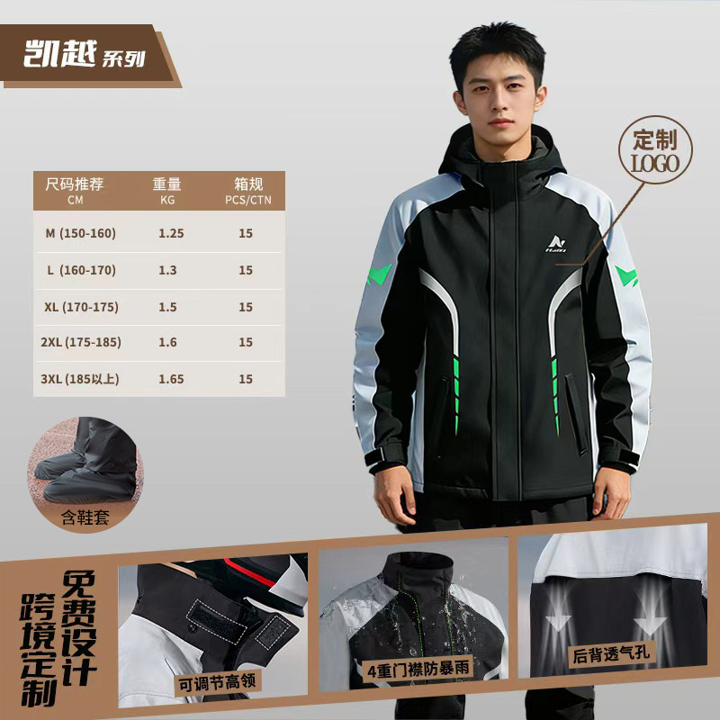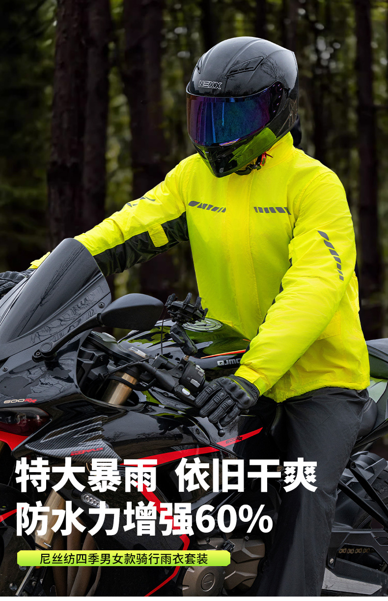 跨境户外骑行分体式雨衣雨裤套装防暴雨时尚男摩托车反光雨衣批发