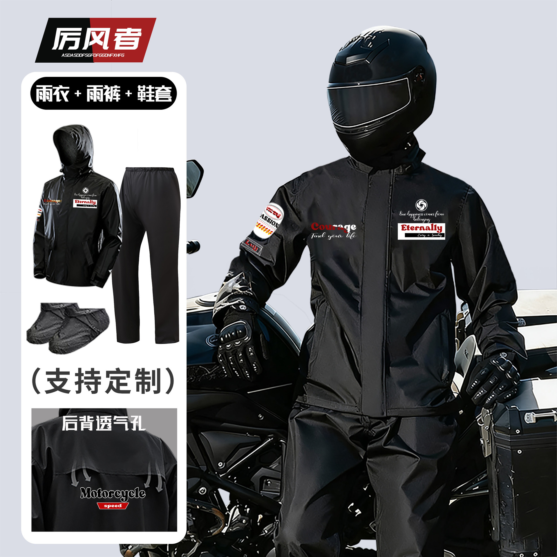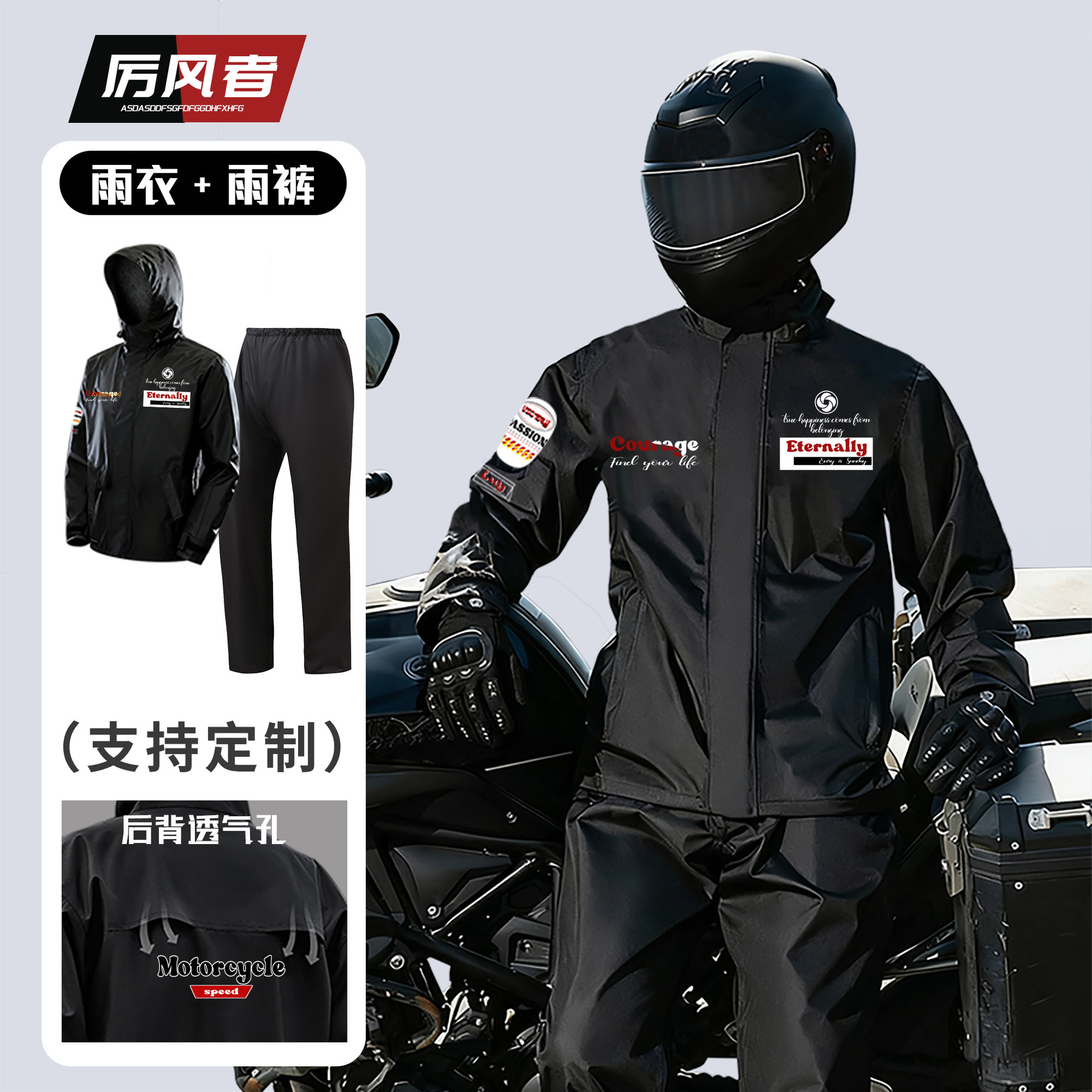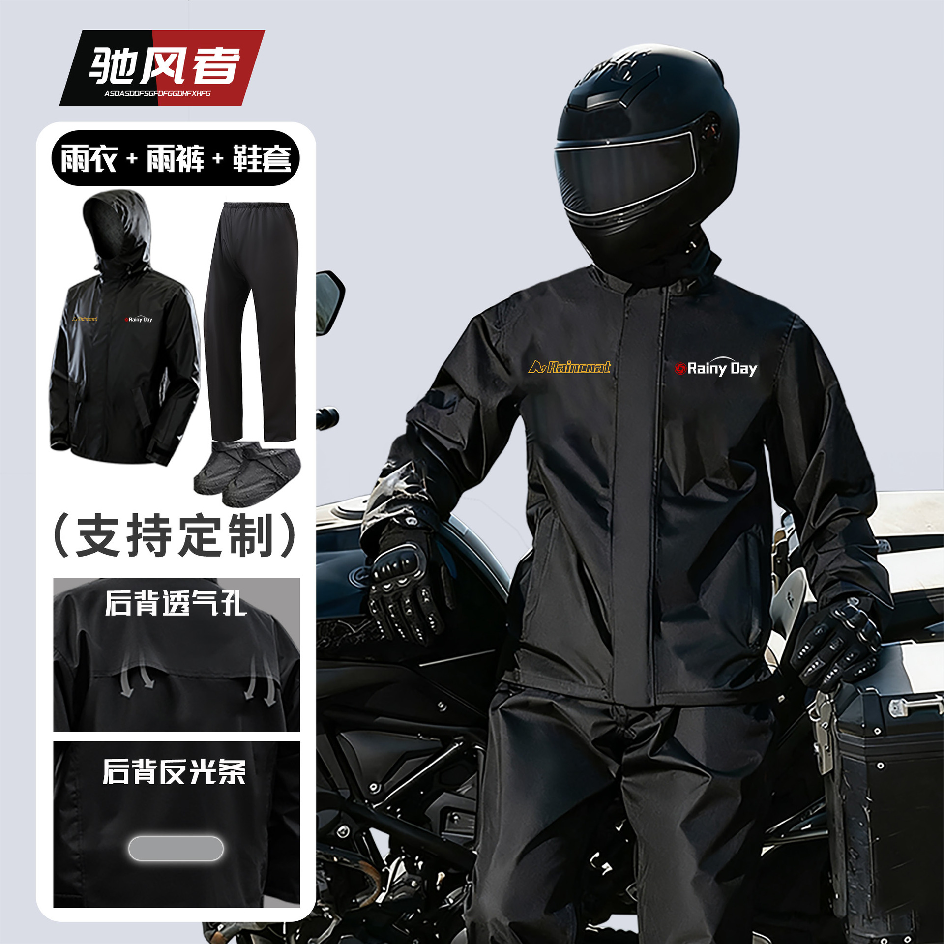 跨境户外骑行分体式雨衣雨裤套装防暴雨时尚男摩托车反光雨衣批发