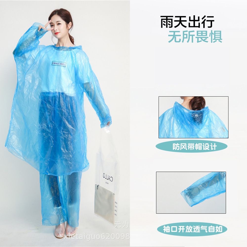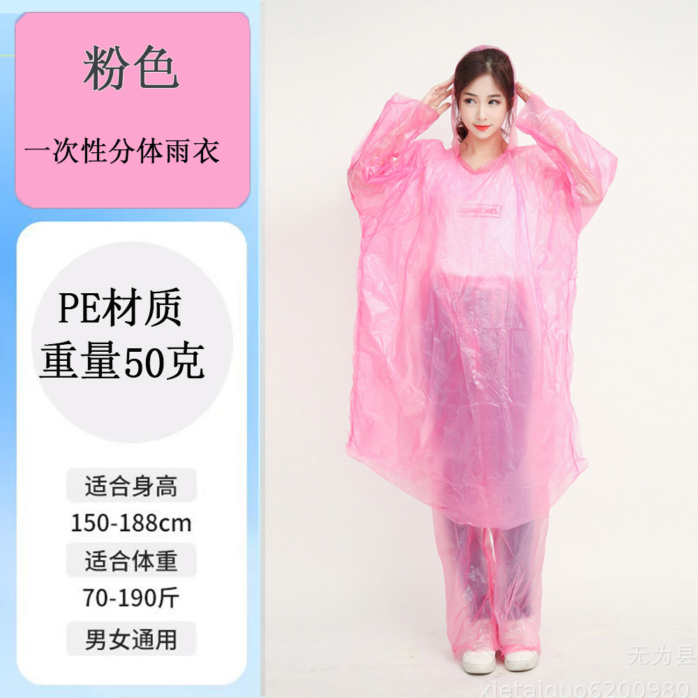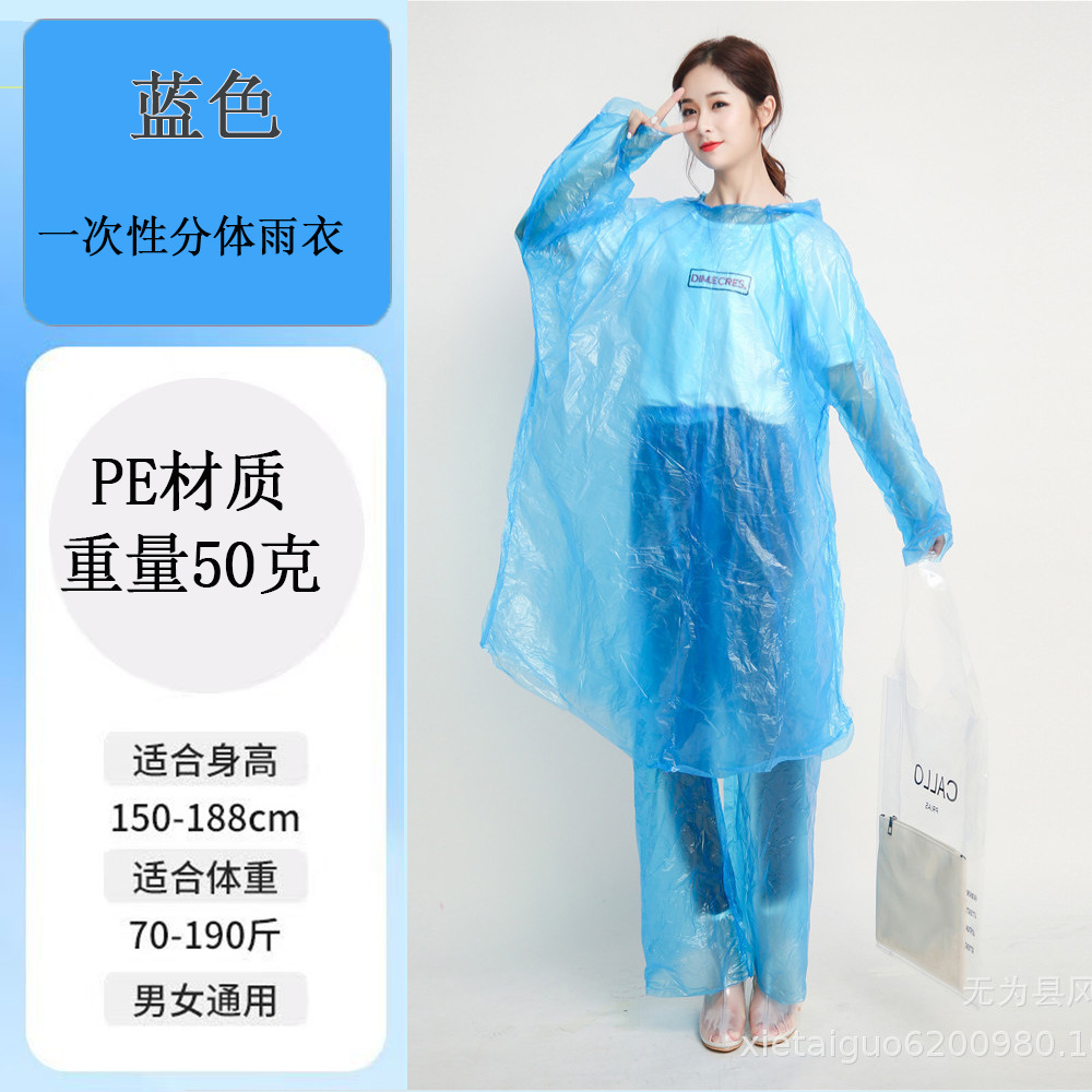 一次性轻便型套装雨衣分体雨衣 漂流河专用雨衣 成人pe雨衣50克