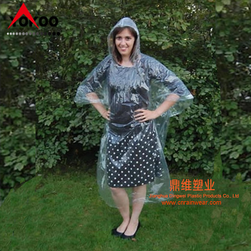 42克透明连体一次性斗篷雨衣 PE一次性雨披 disposable poncho