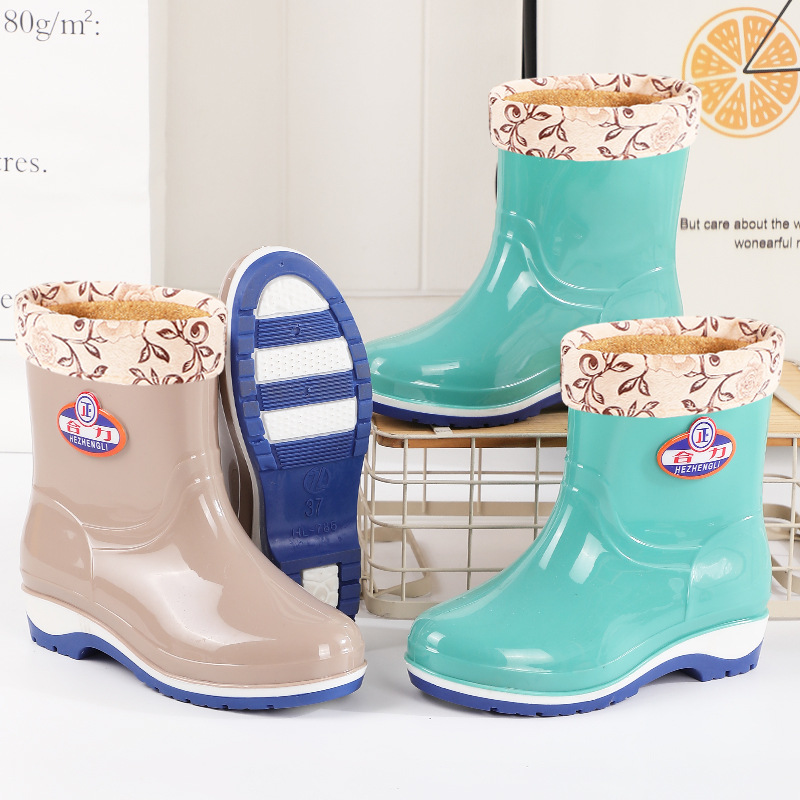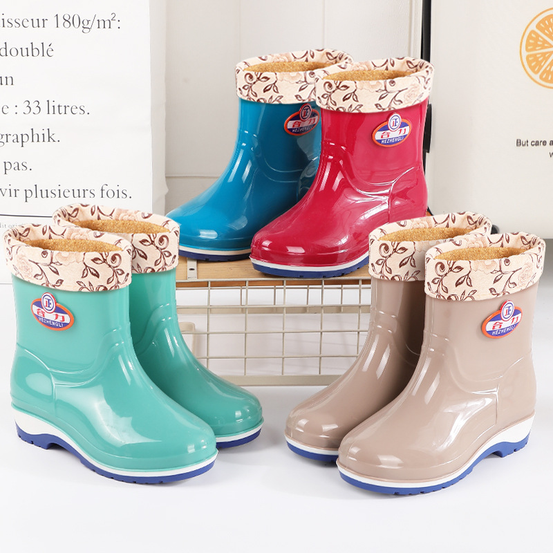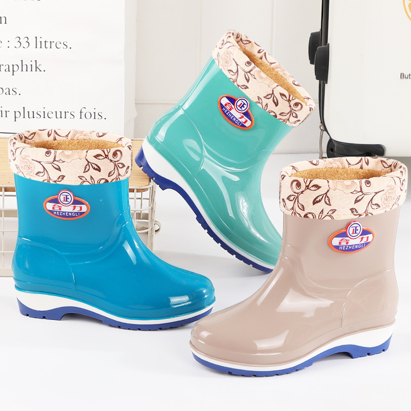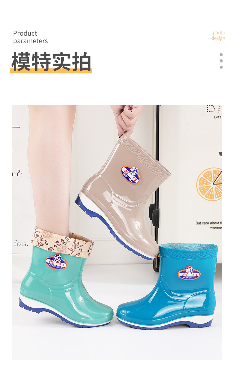 四季雨鞋女中筒成人加绒雨靴时尚防水鞋女士防滑短筒胶鞋水靴保暖