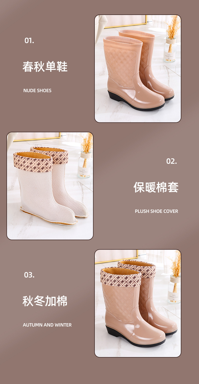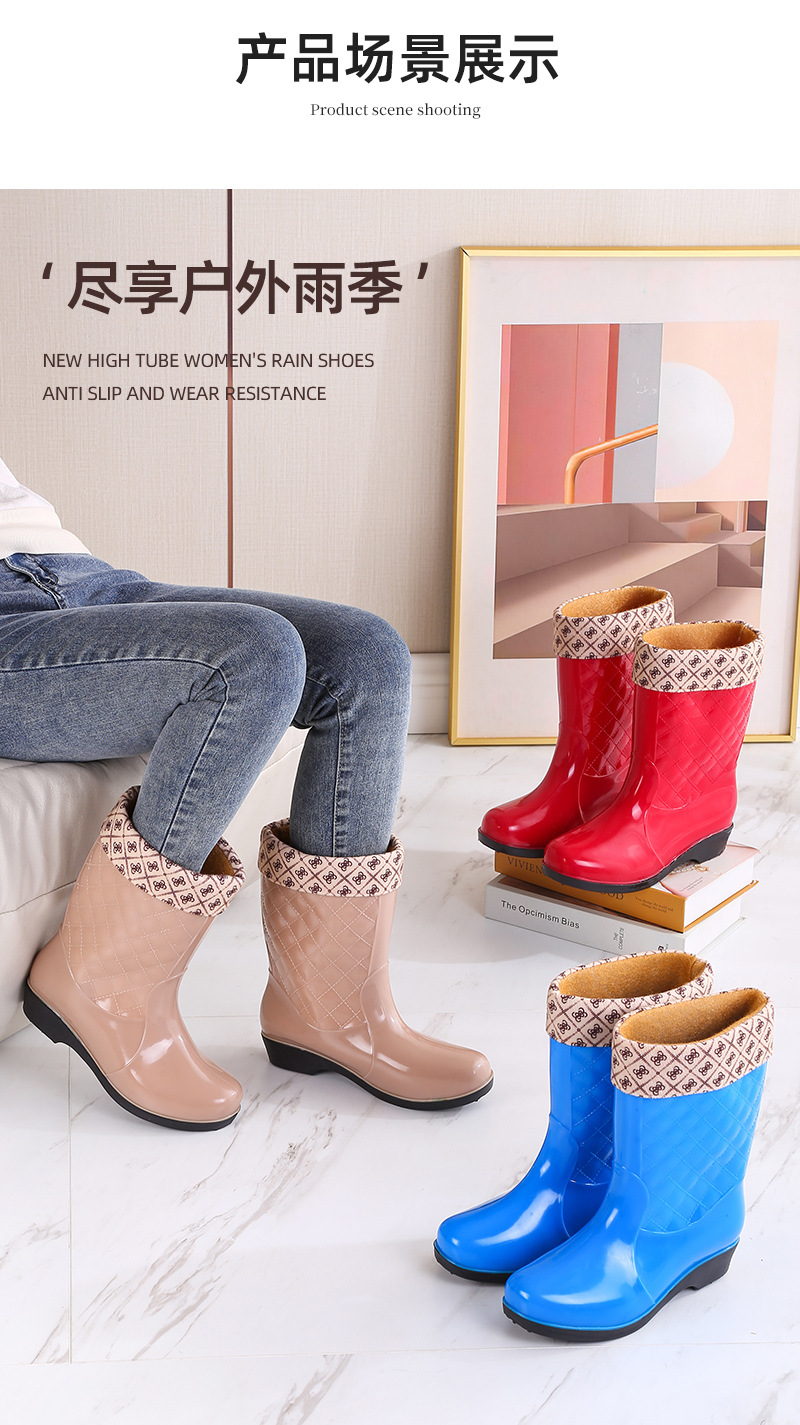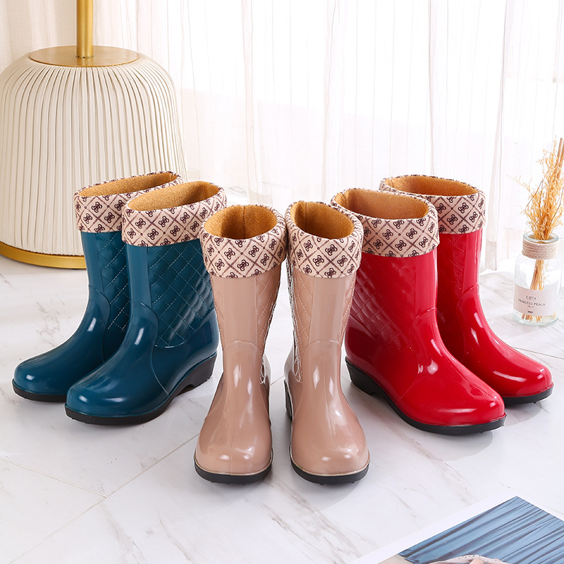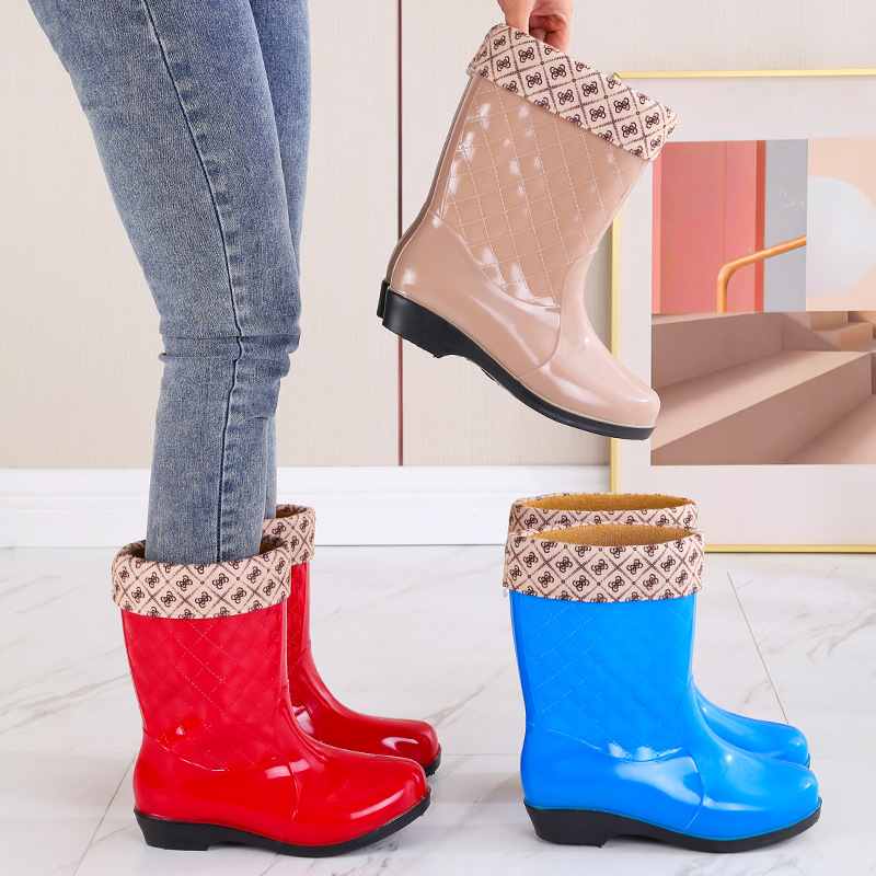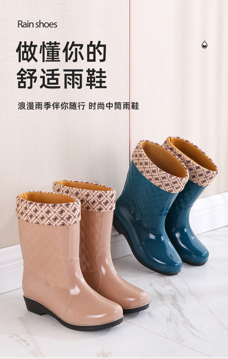 水鞋批发中筒雨鞋女时尚加绒可拆保暖加厚防水防滑鞋雨靴劳保厨房