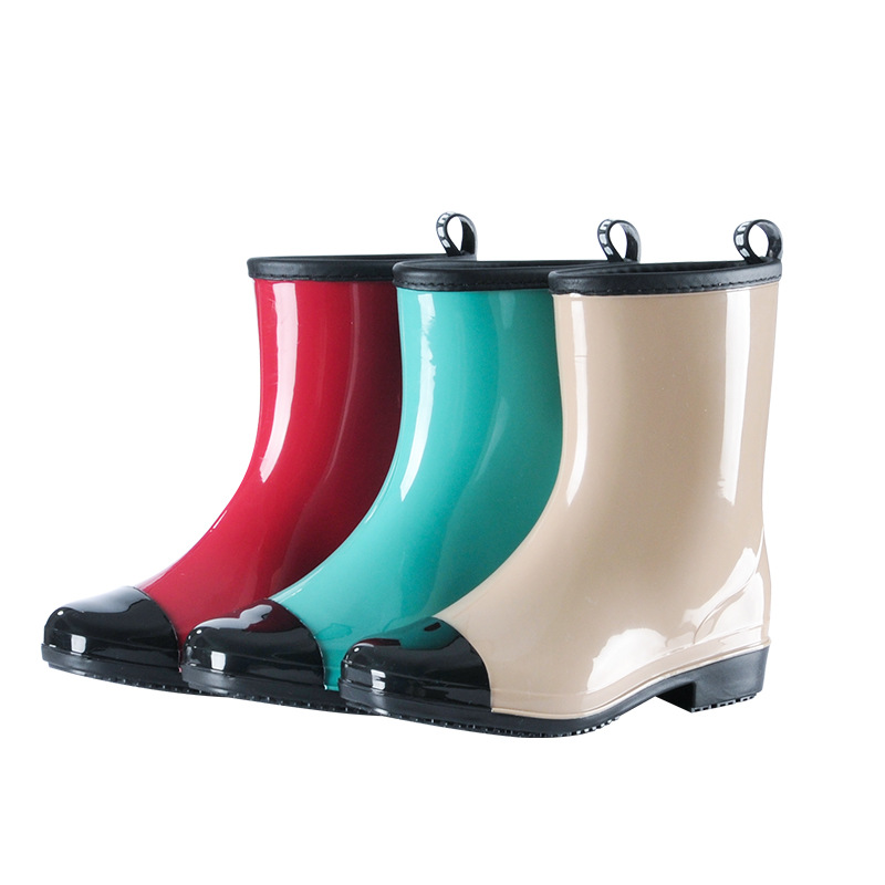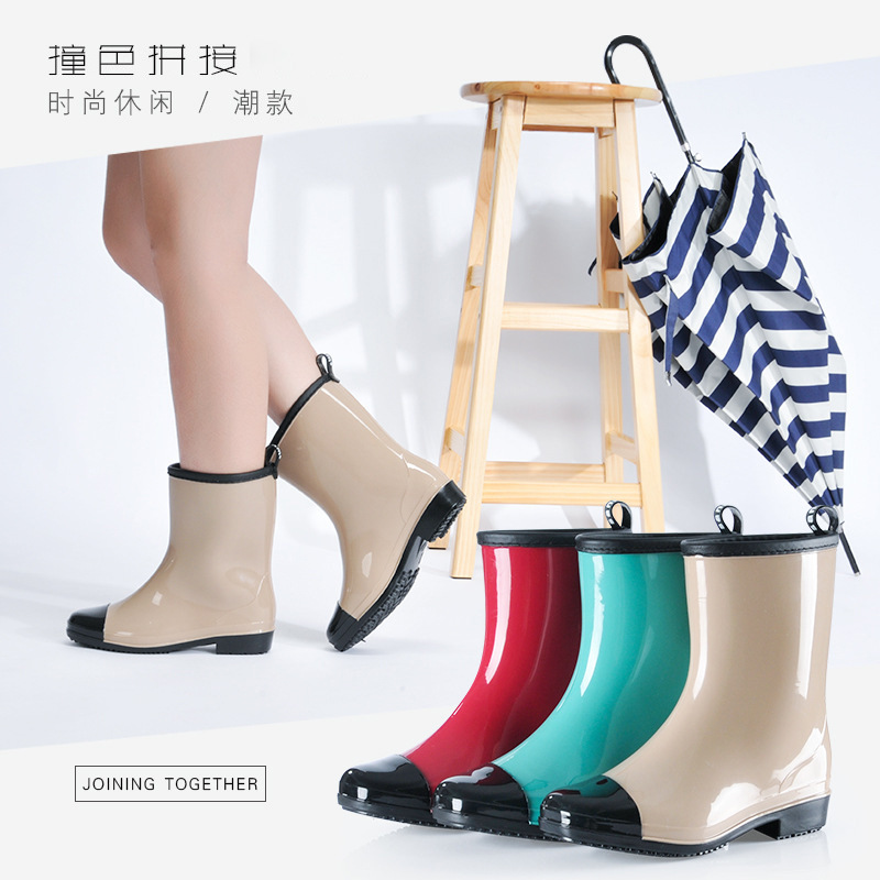 韩版成人女士雨靴时装胶鞋中筒时尚雨鞋拼色低跟加绒保暖水鞋水靴