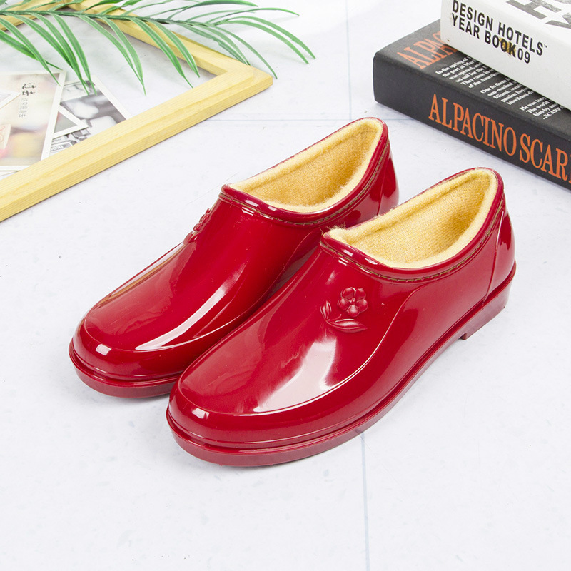 雨鞋女士短筒春秋元宝厨房防滑耐磨雨靴平底保暖水鞋女低帮水靴女