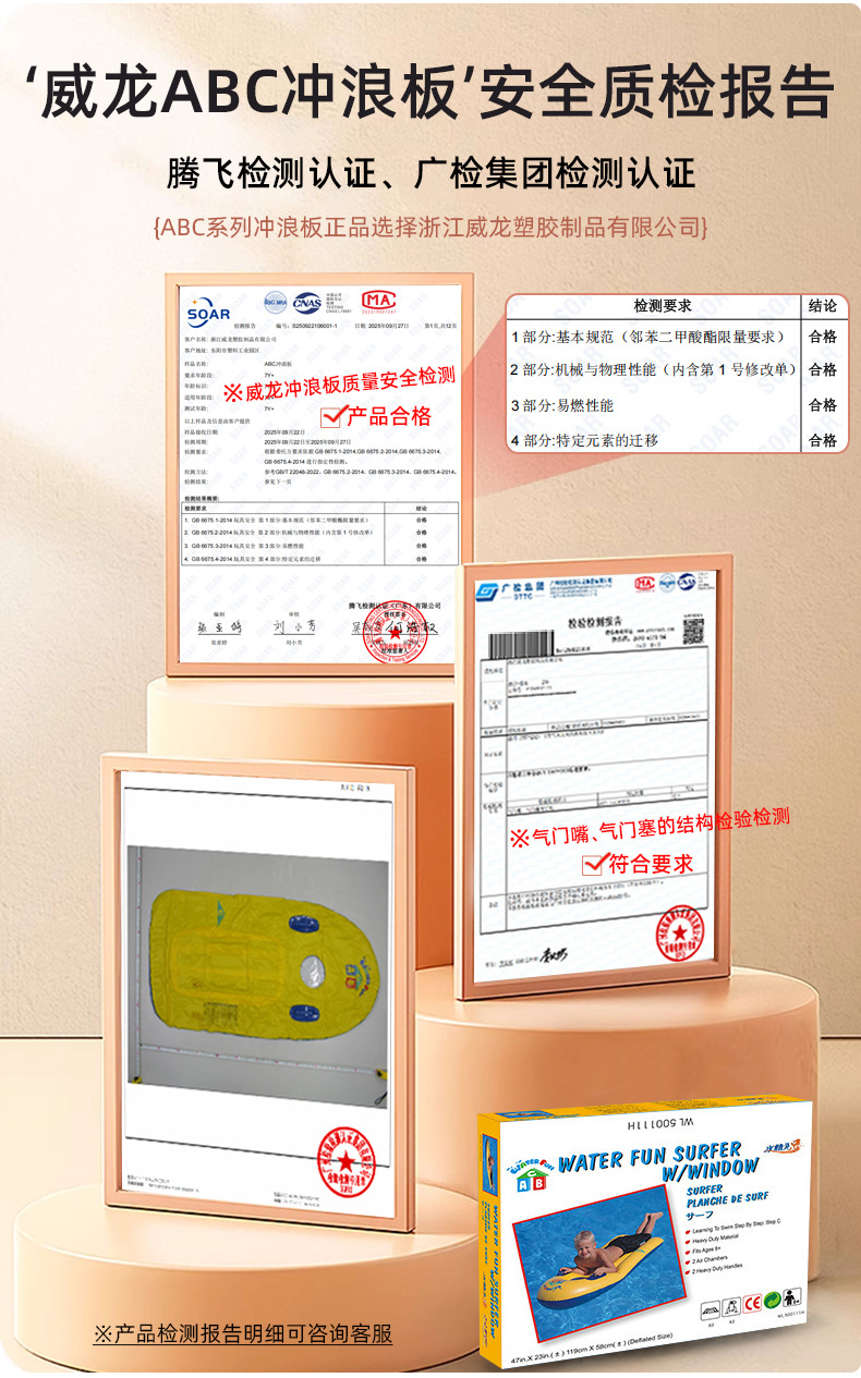 正品ABC游泳圈3岁-6岁加厚儿童充气救生衣浮排冲浪板游泳用品批发