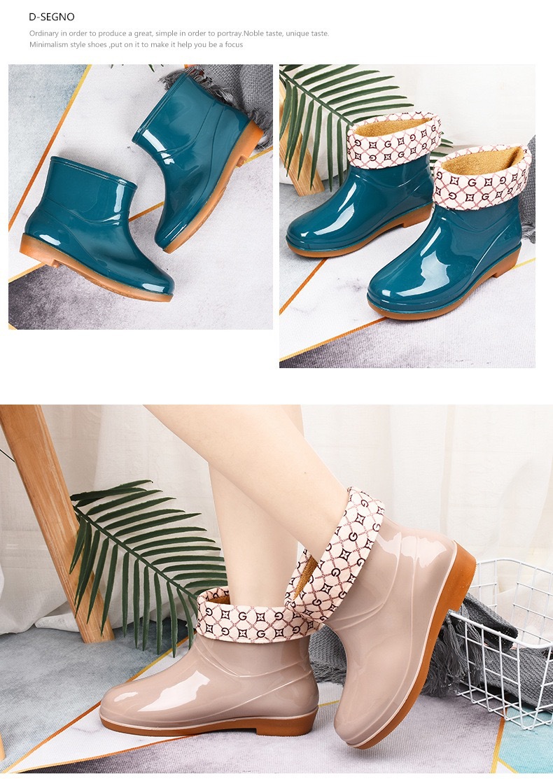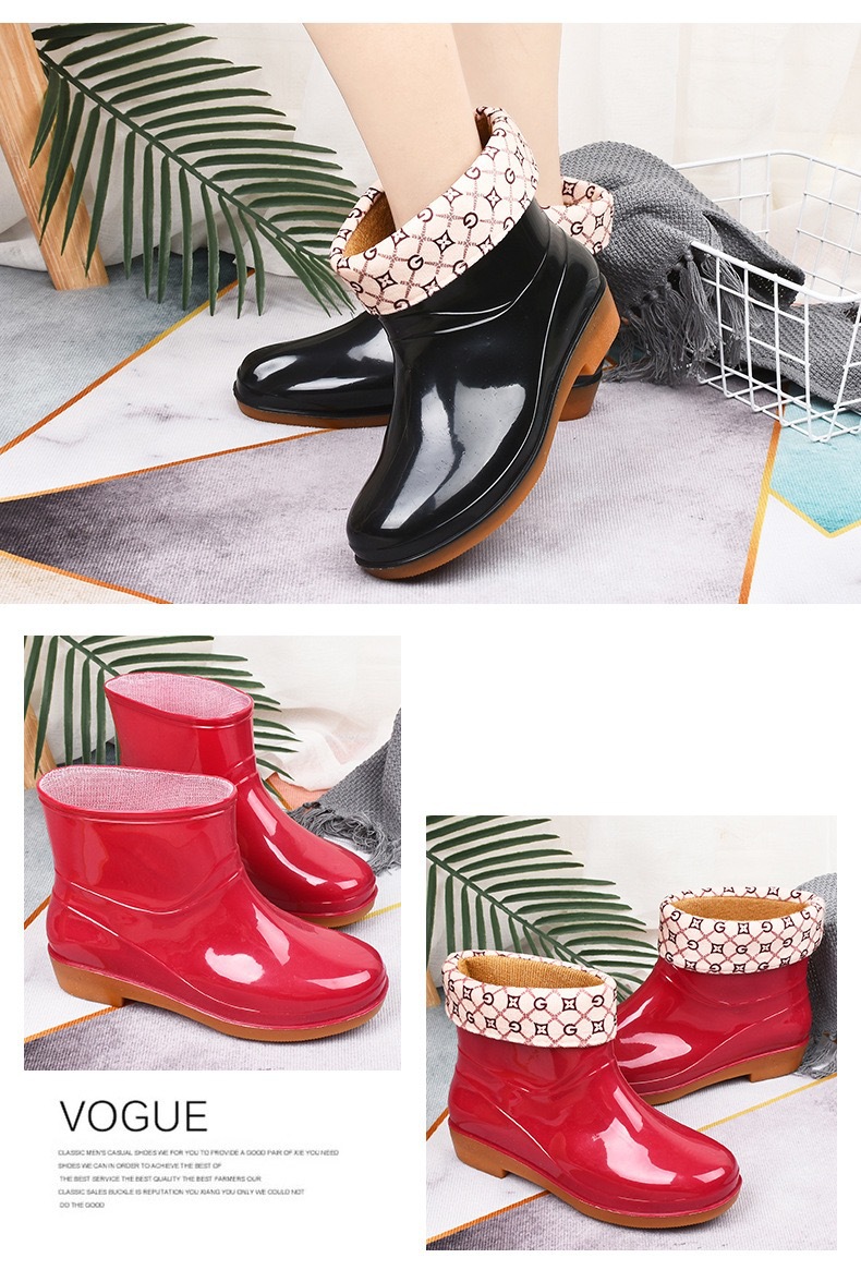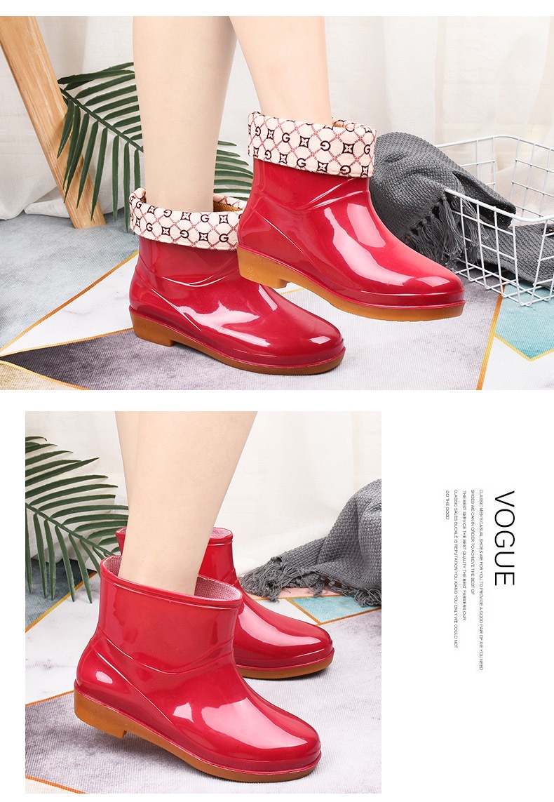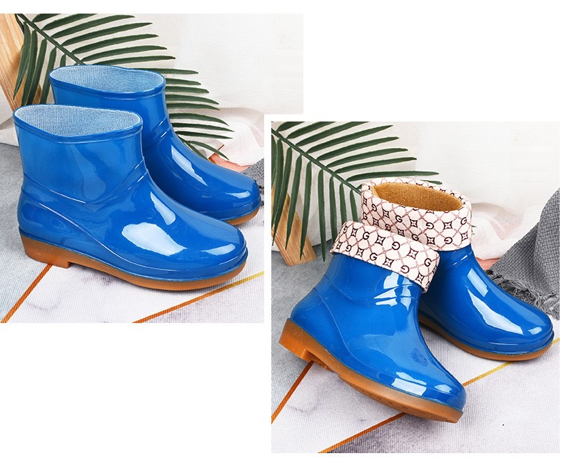 加绒雨鞋雨靴防水鞋女短筒厨房洗车胶鞋靴套鞋成人防滑洗衣服冬季