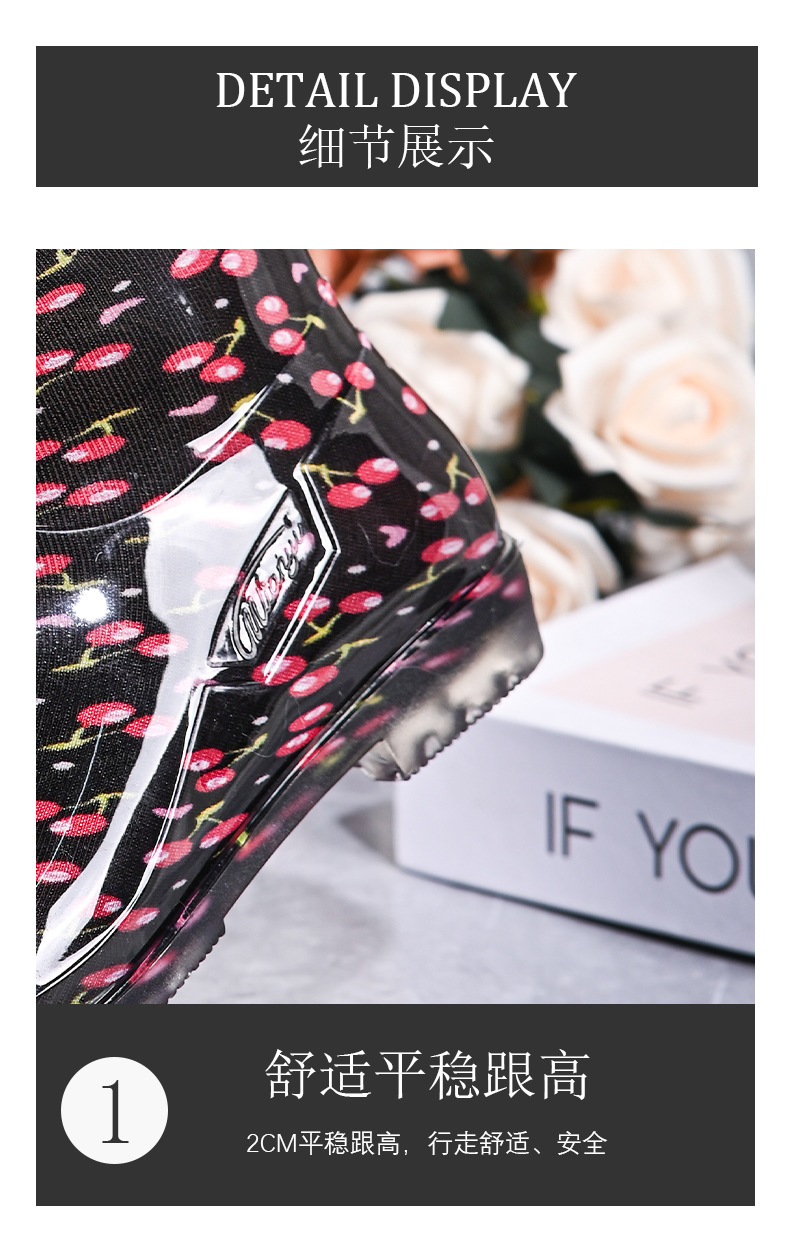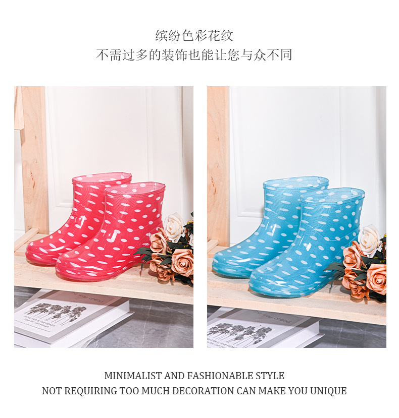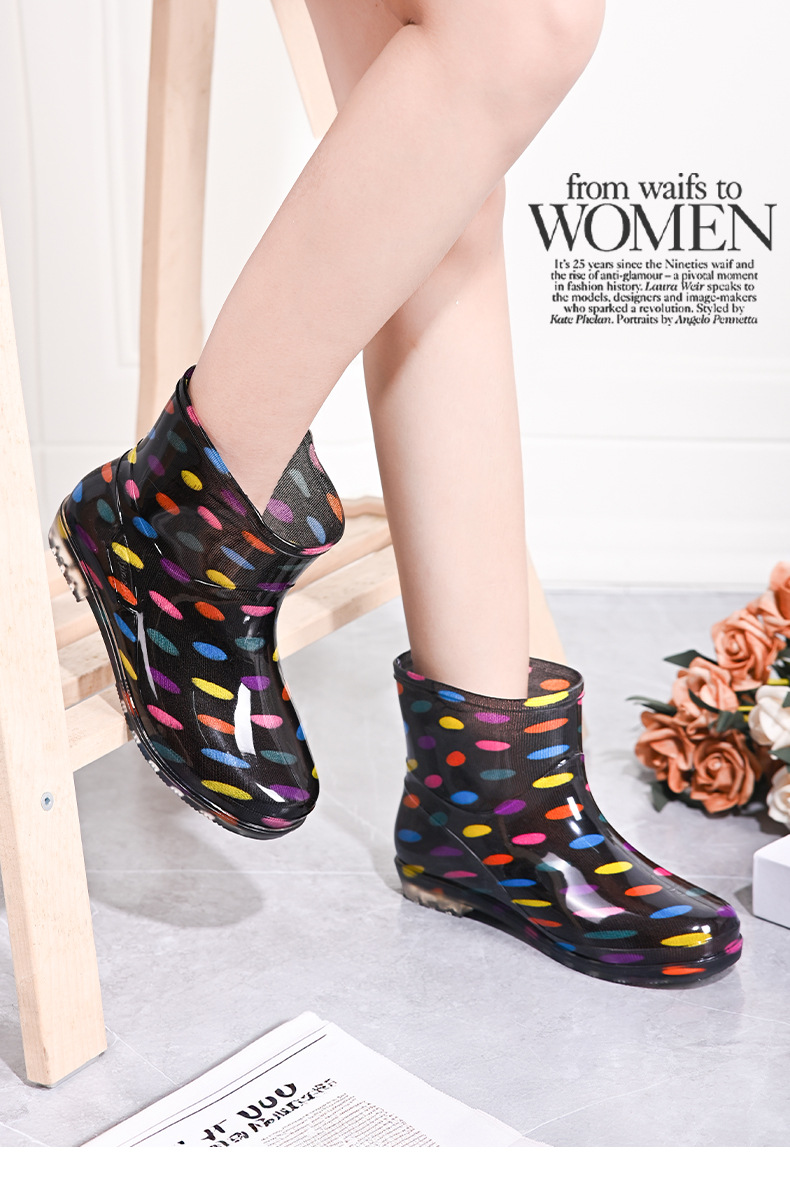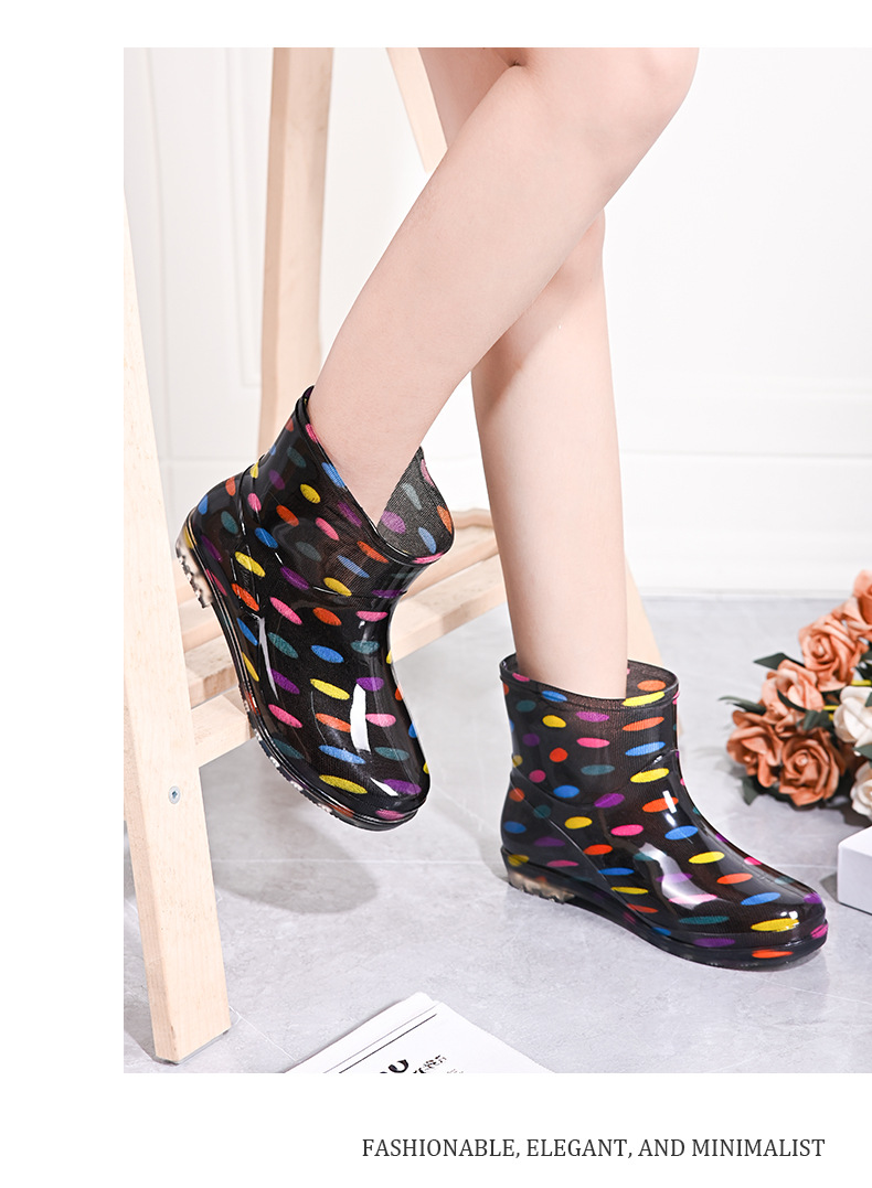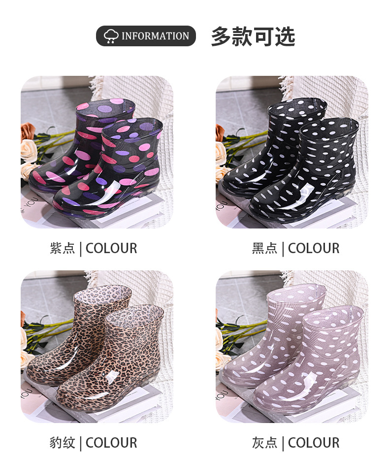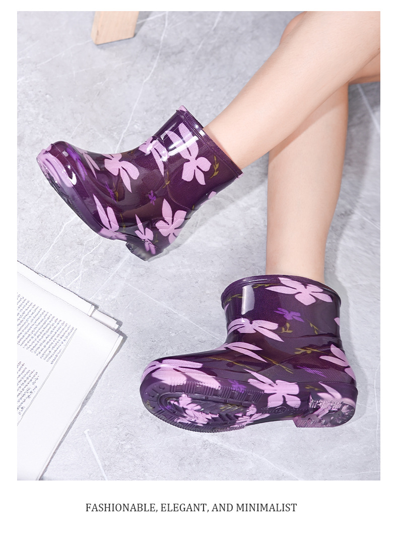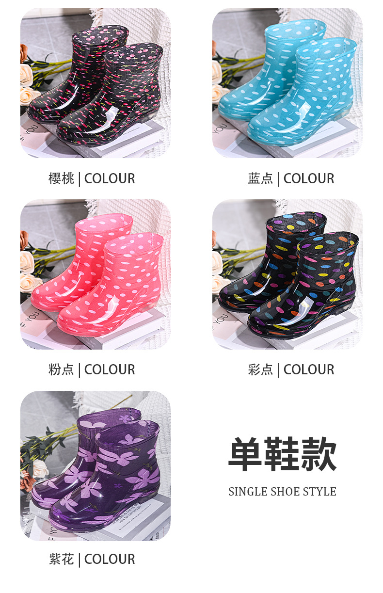 雨鞋短筒水鞋雨靴低筒时尚百搭加棉绒套防水水晶花布厨房工作胶鞋