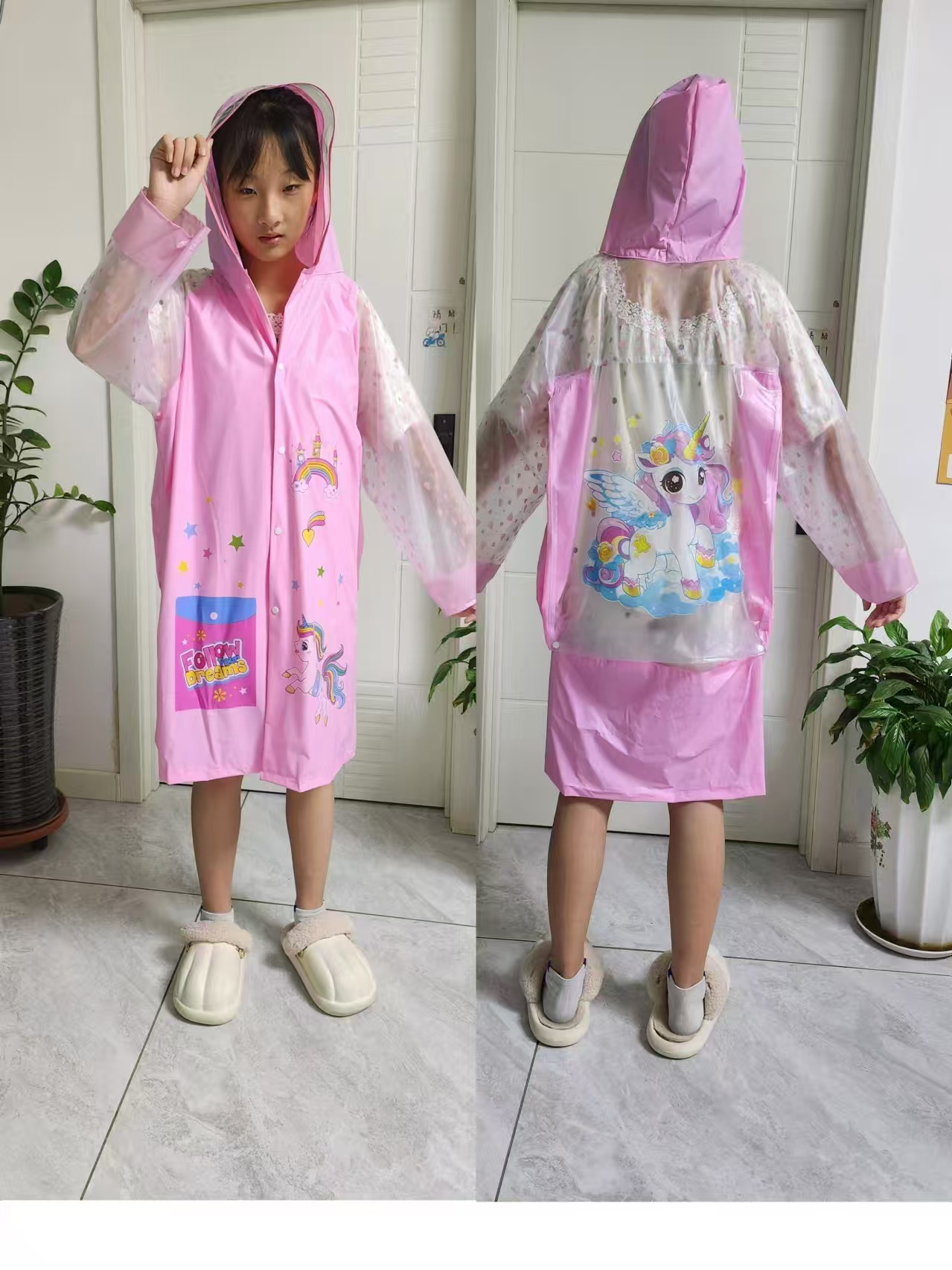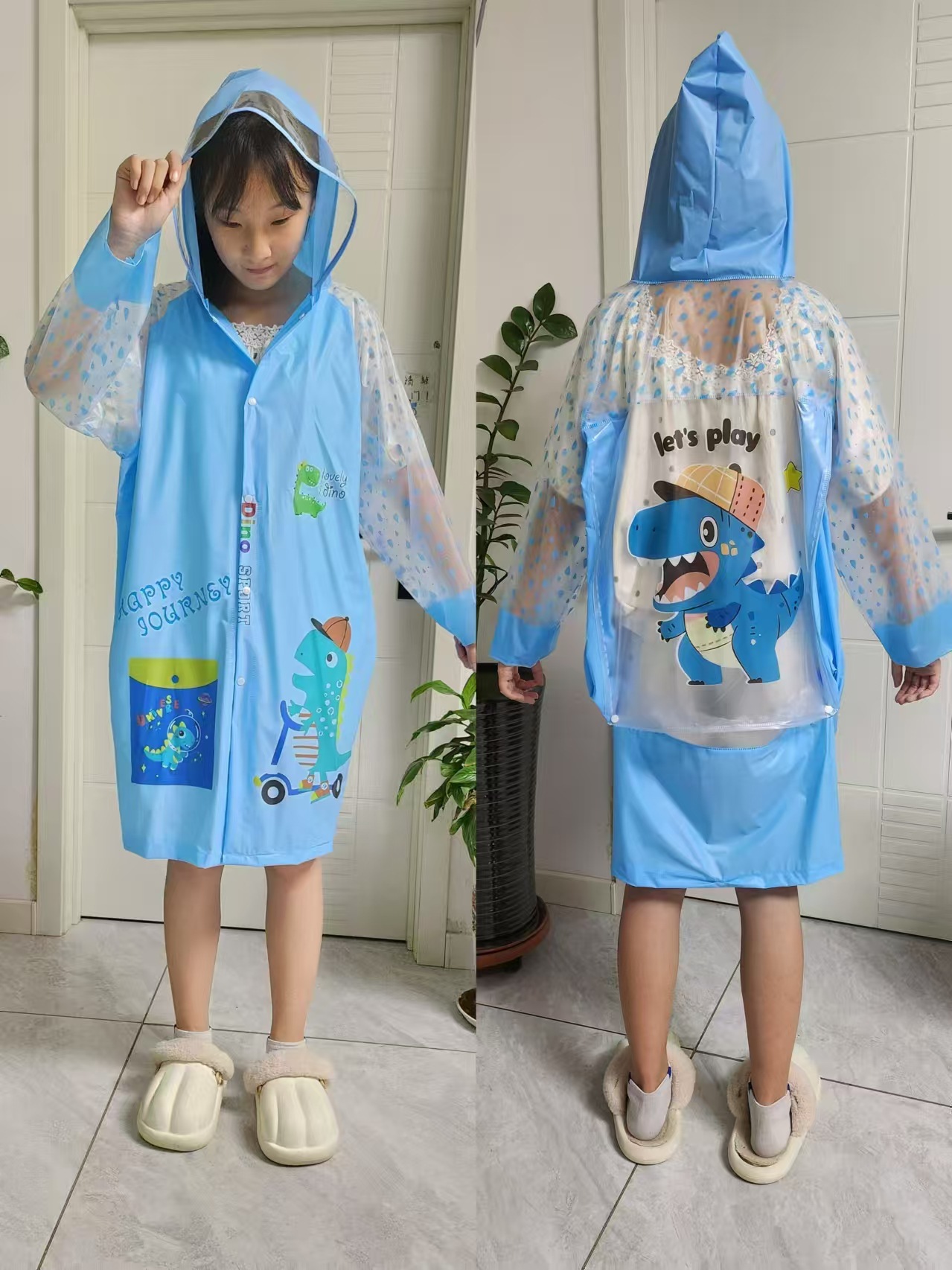 宸兴宝宝雨衣儿童加工小朋友小恐龙带书包位PVC雨披充气帽檐跨境