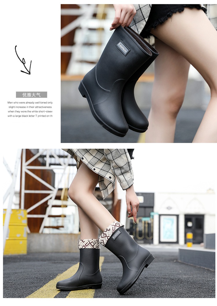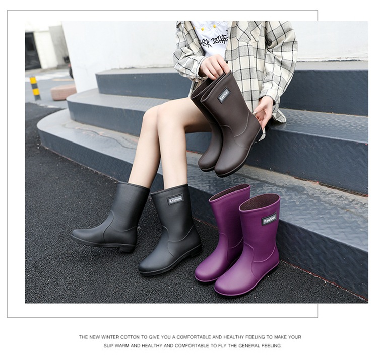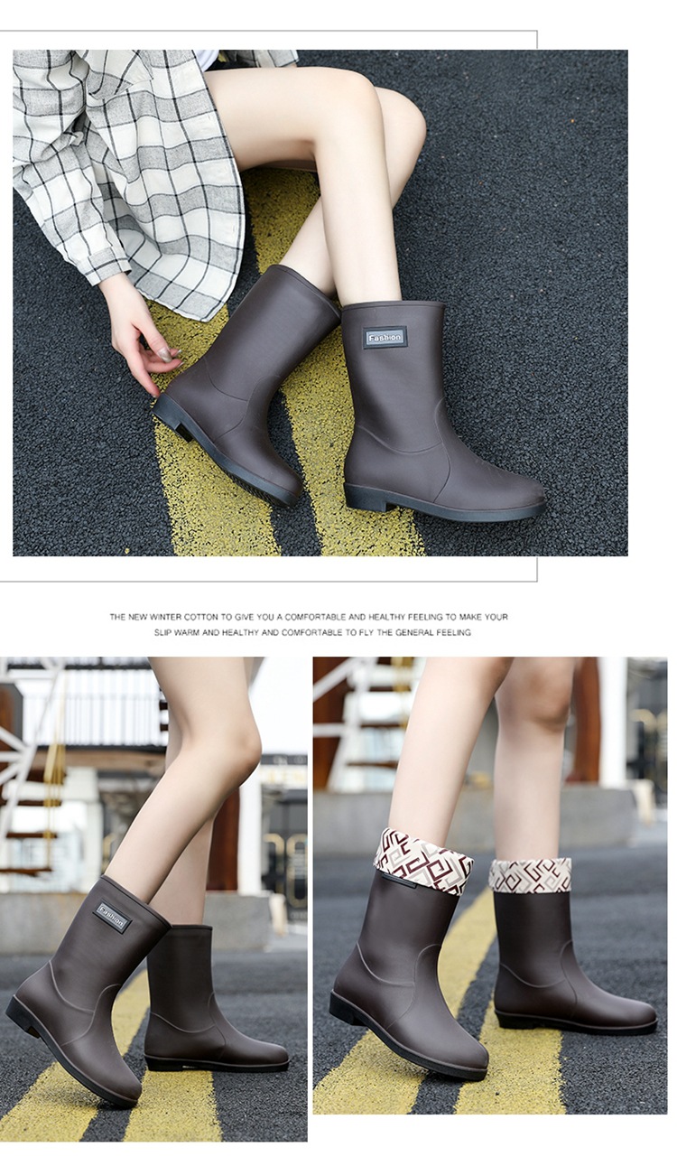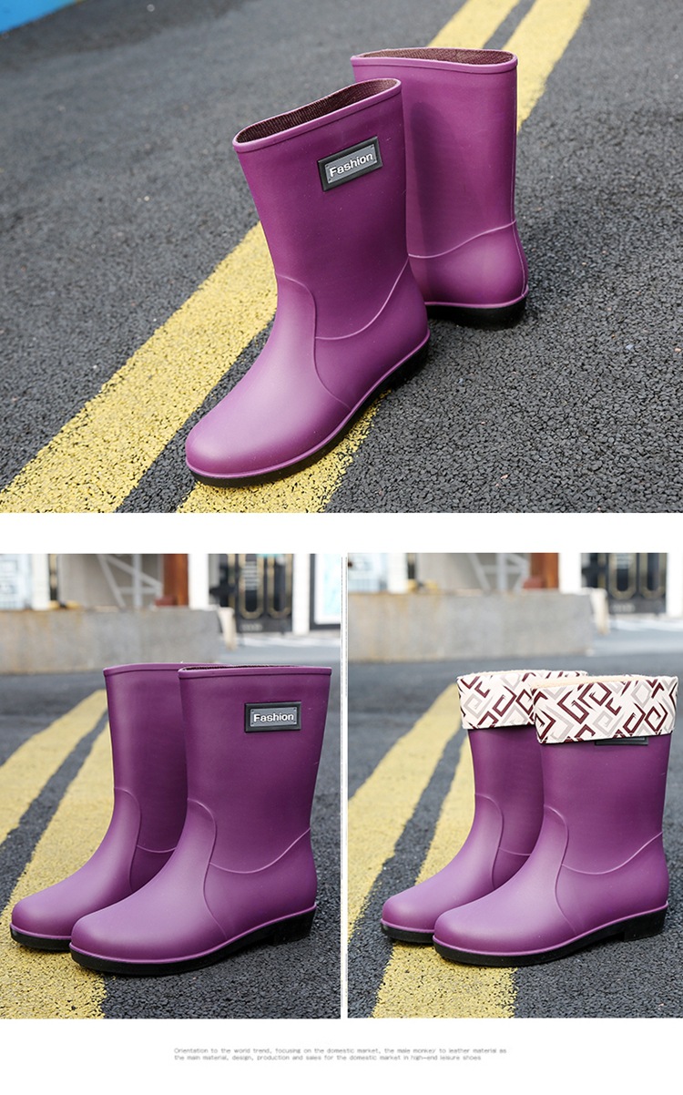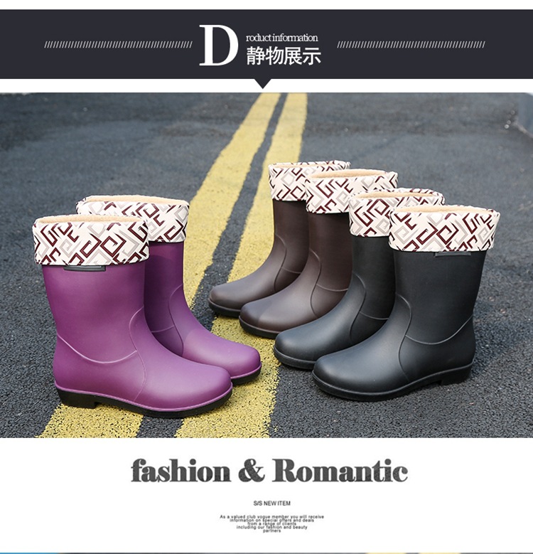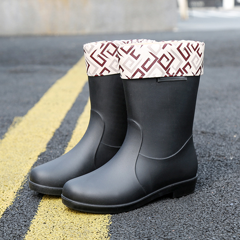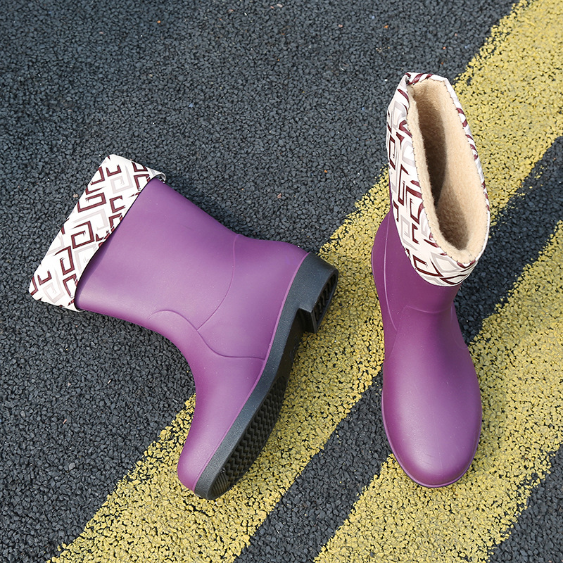 新款时尚女士中筒雨鞋加绒保暖厚底耐磨防水雨鞋厨房买菜防滑胶鞋