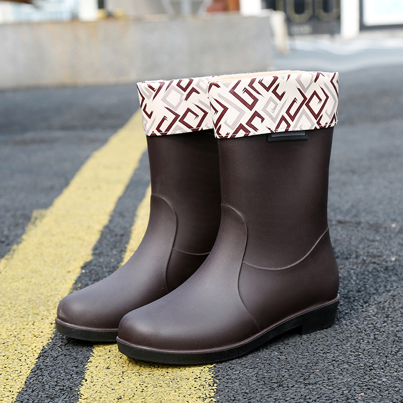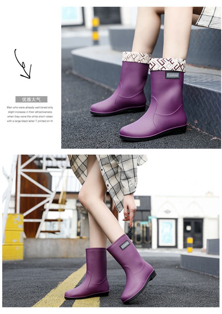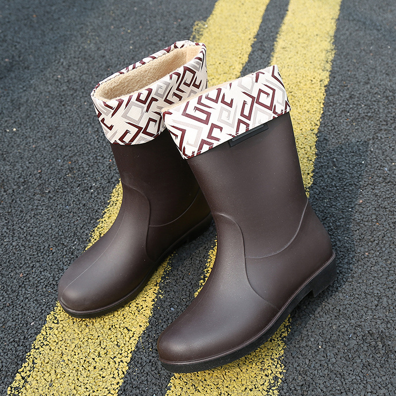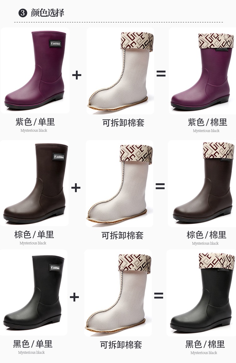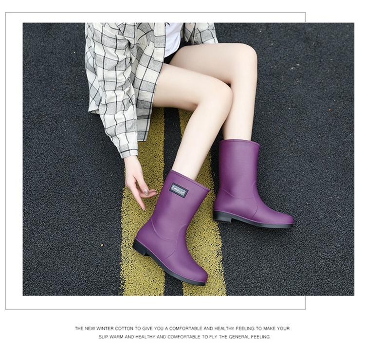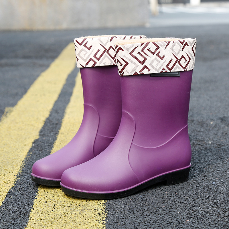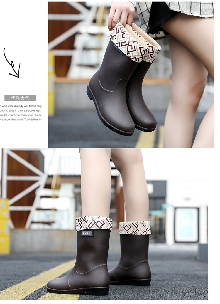 新款时尚女士中筒雨鞋加绒保暖厚底耐磨防水雨鞋厨房买菜防滑胶鞋