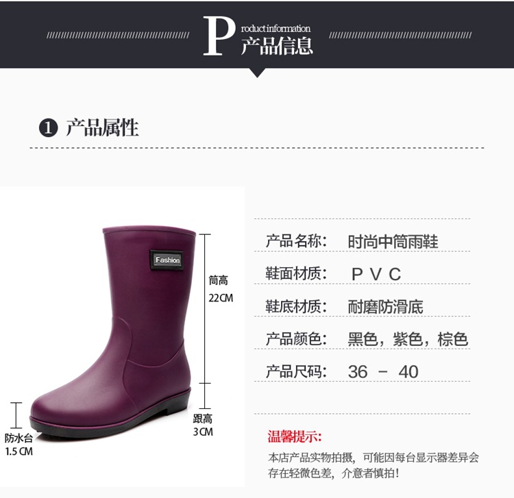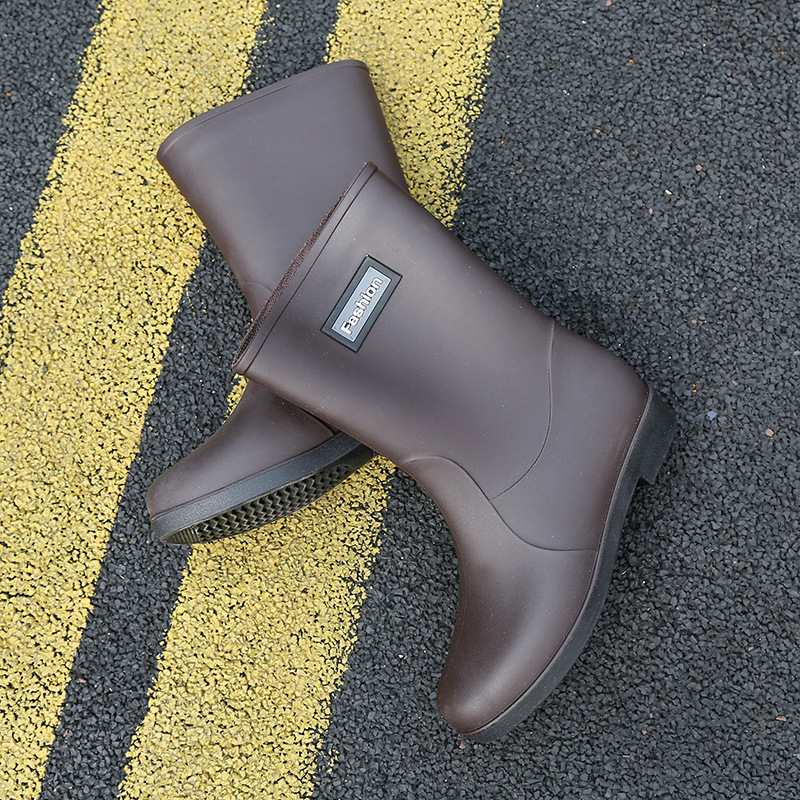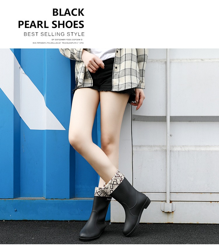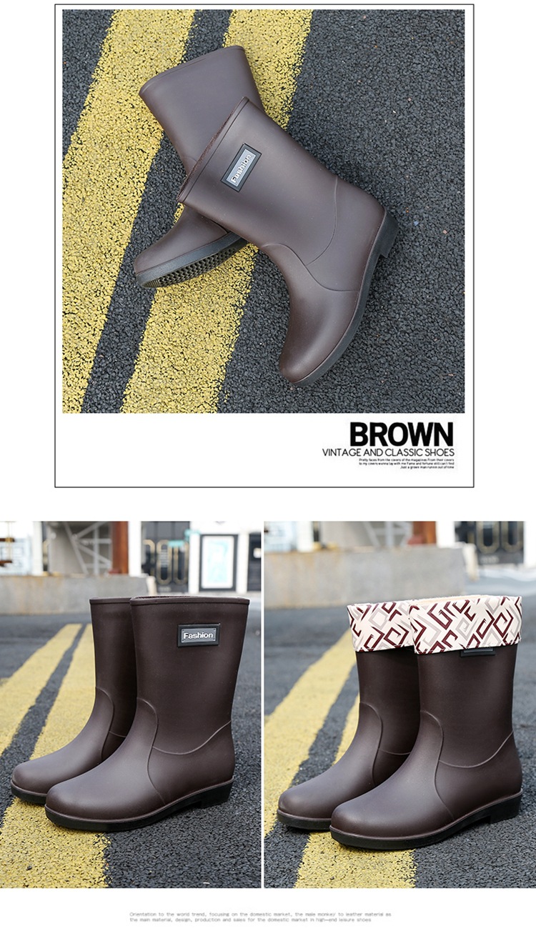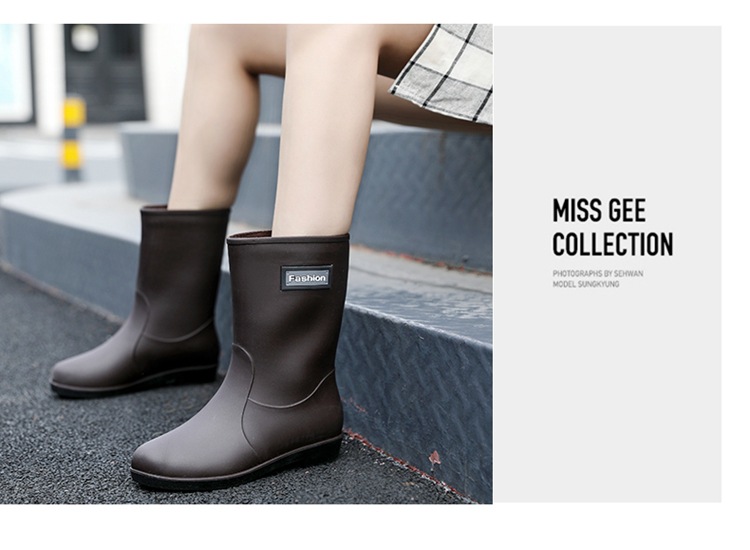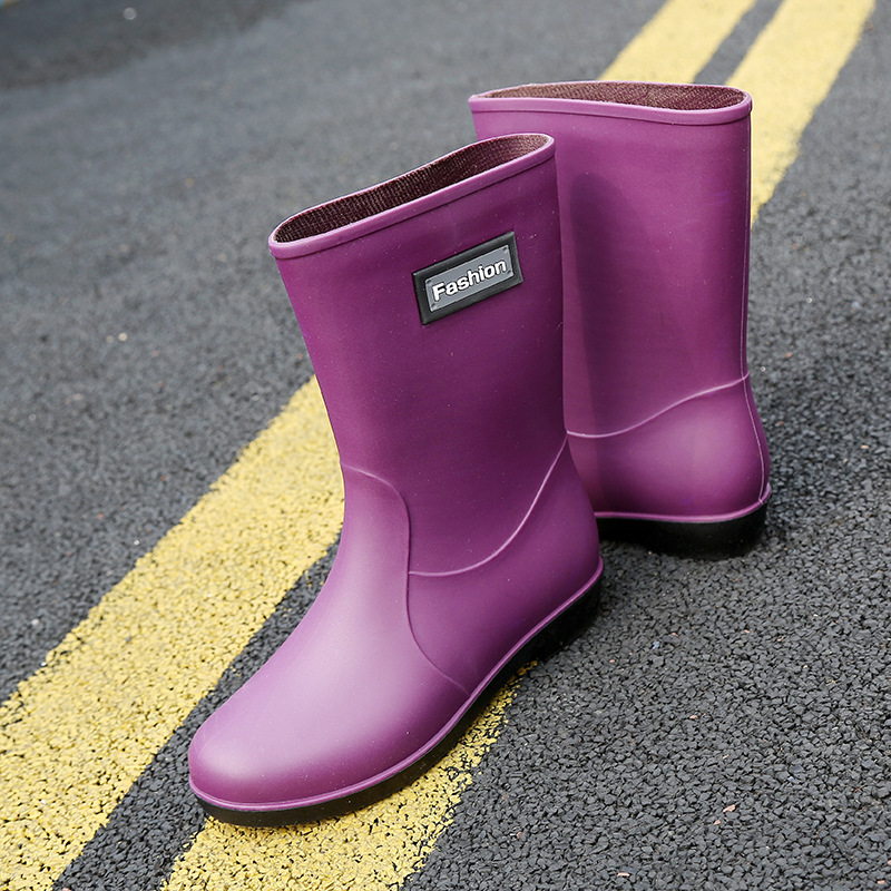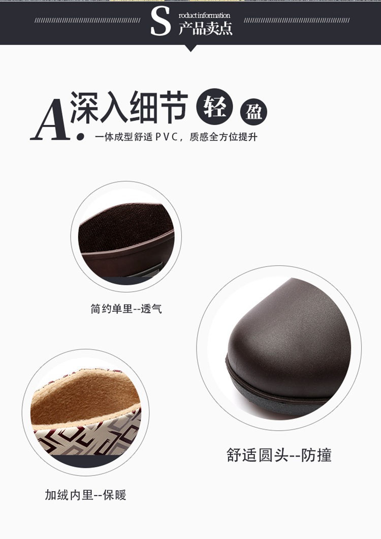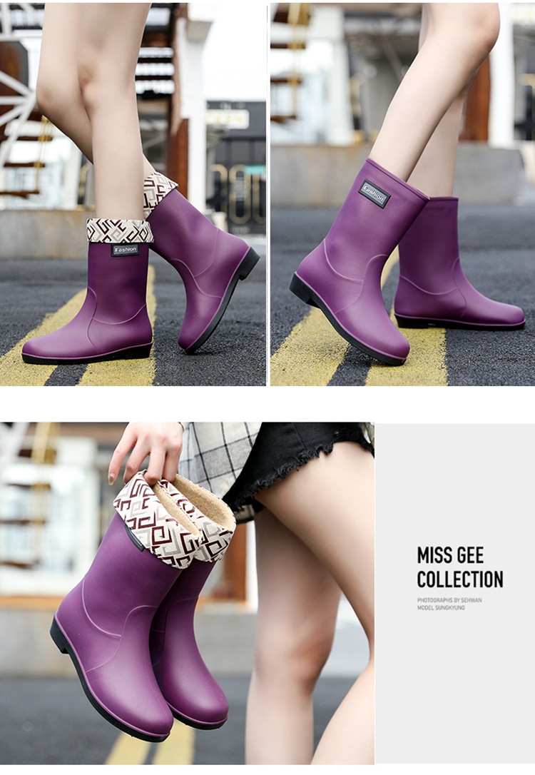 新款时尚女士中筒雨鞋加绒保暖厚底耐磨防水雨鞋厨房买菜防滑胶鞋