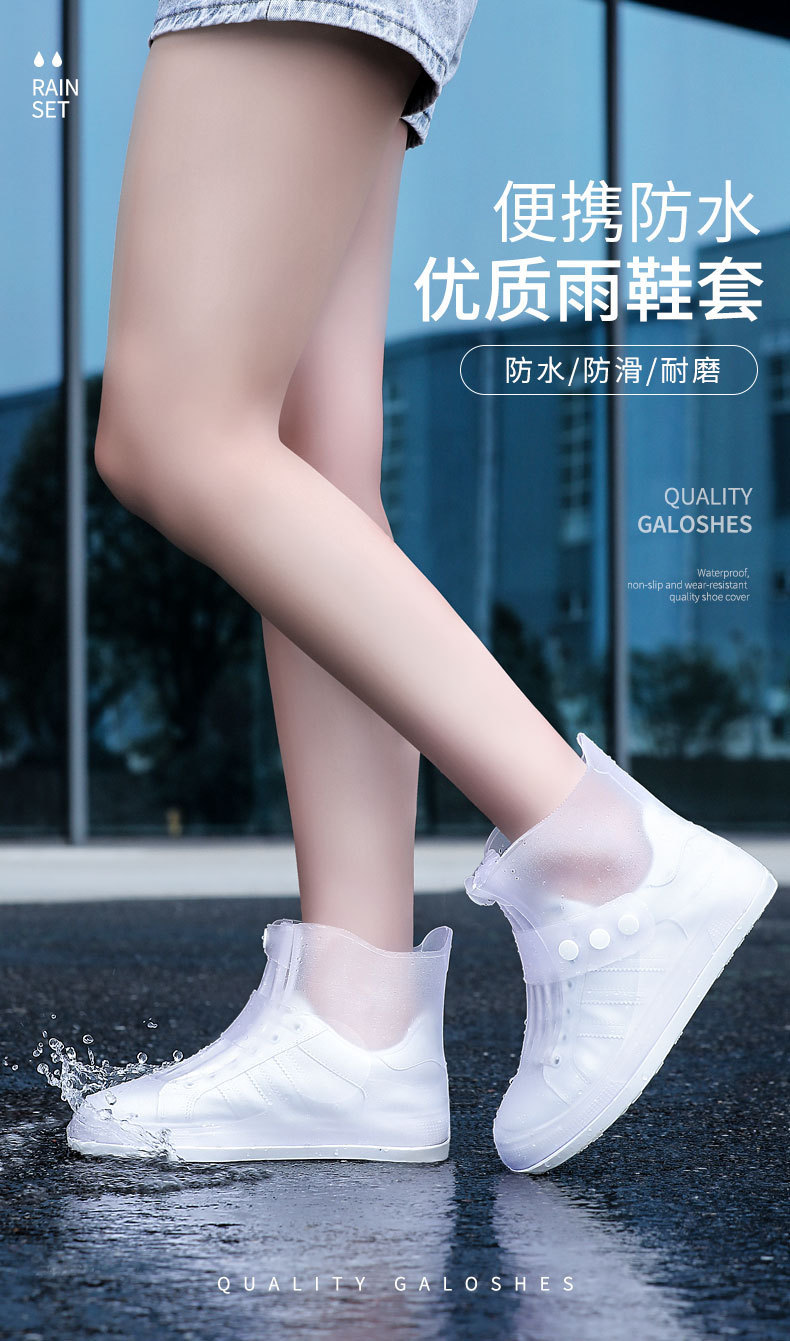 雨鞋套批发雨天防水鞋套防滑加厚耐磨雨鞋女成人硅胶中筒脚套白鞋