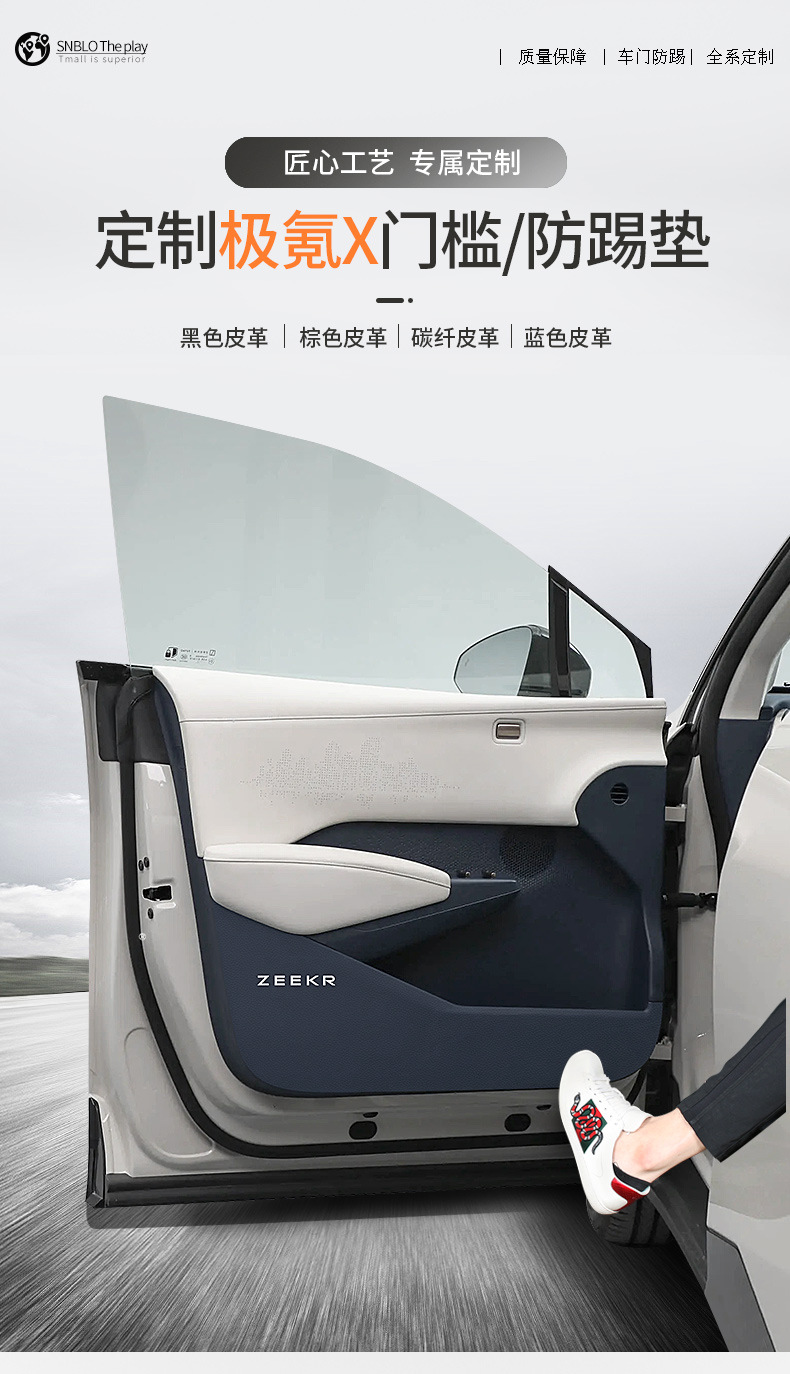 适用于极氪X皮革车门防踢垫内置门槛垫防护防脏保护垫车内饰改装