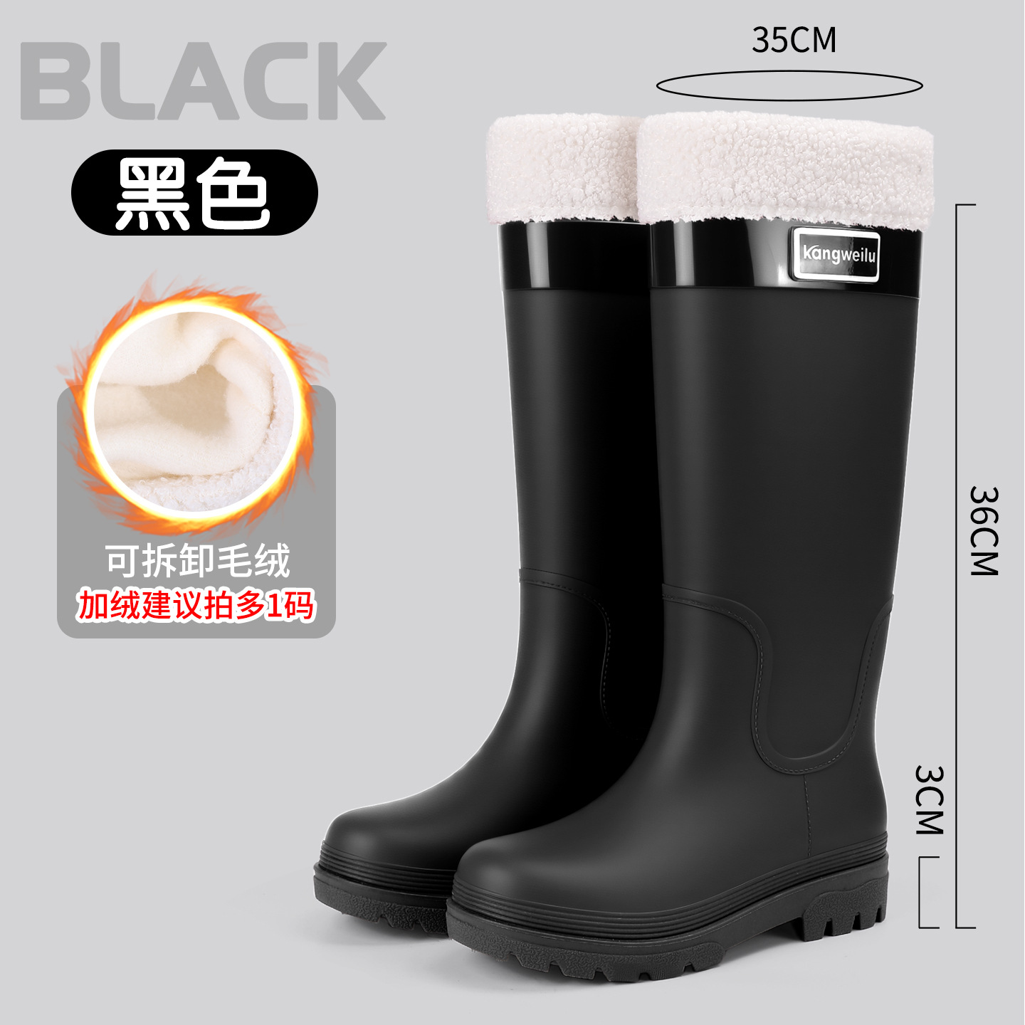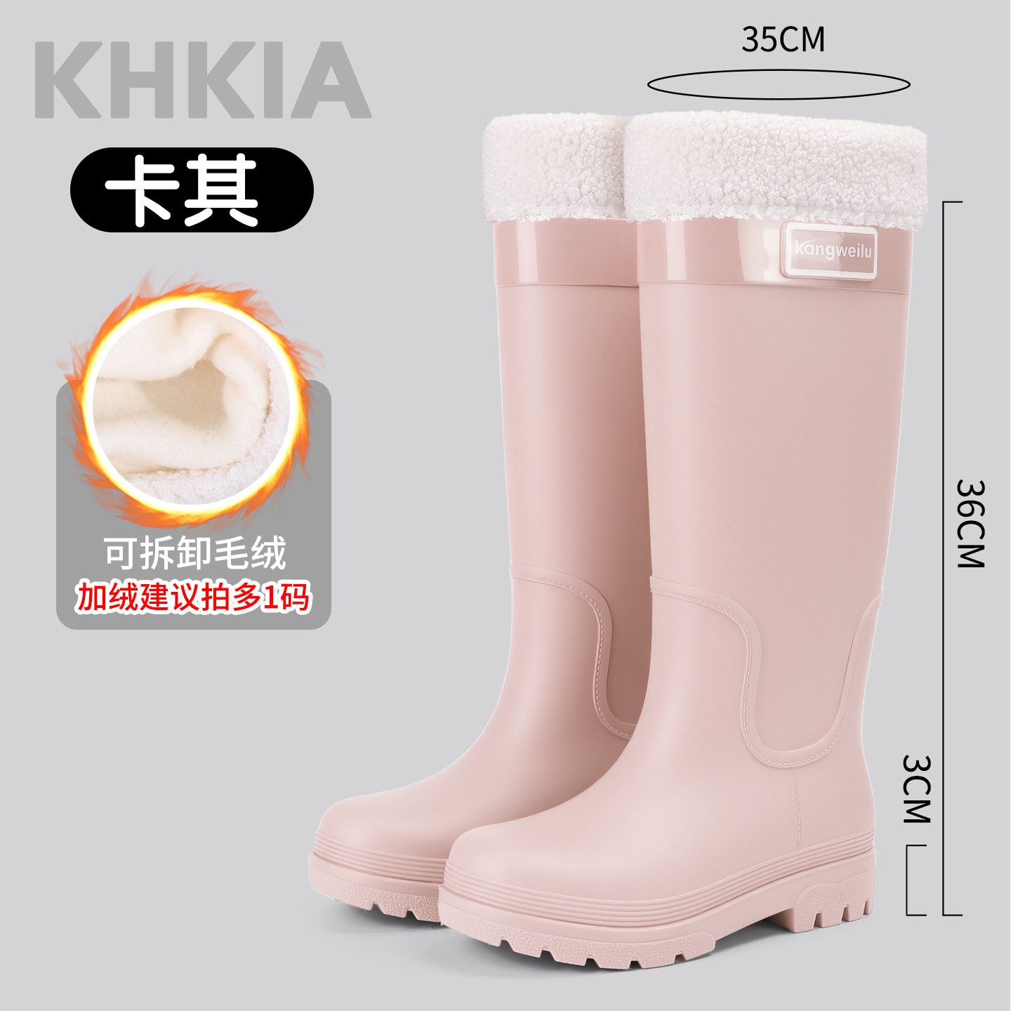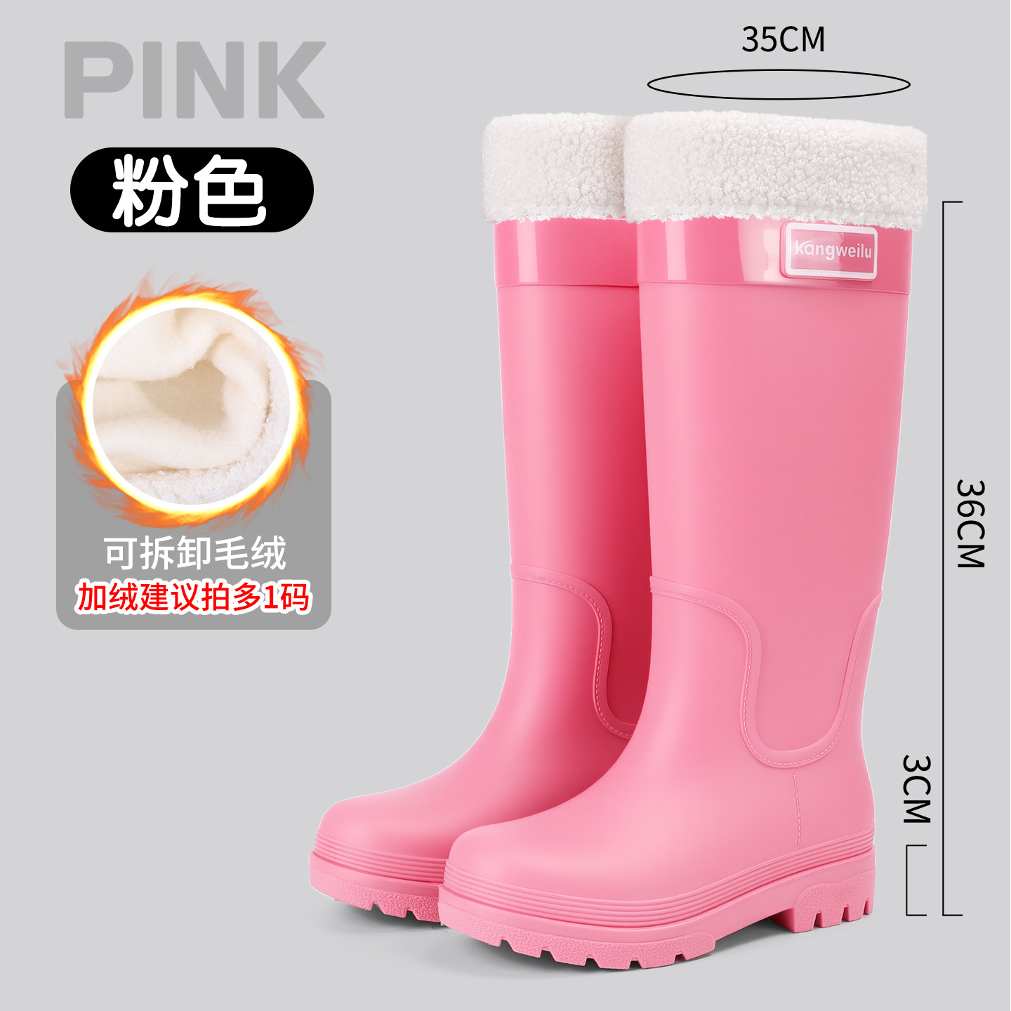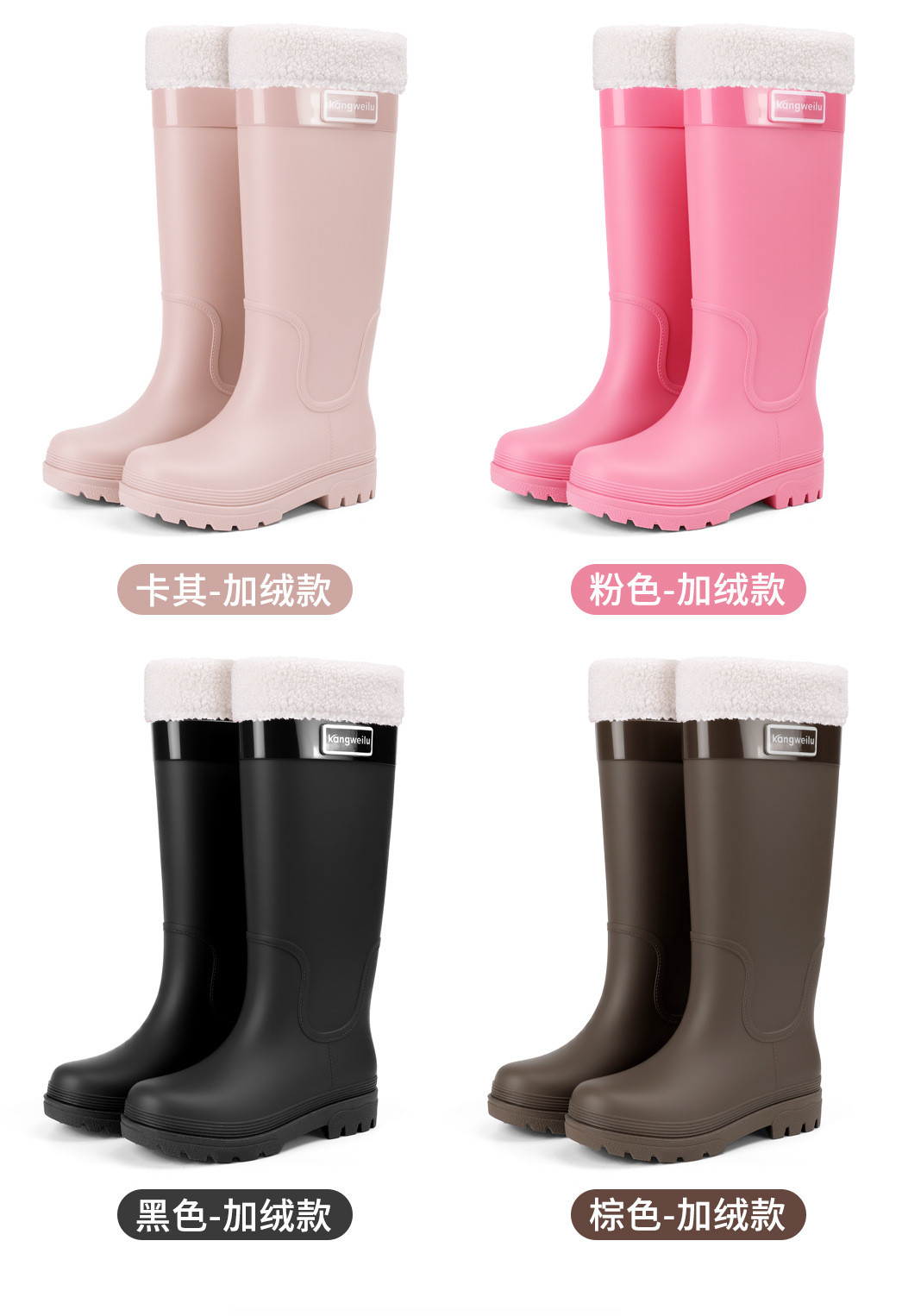 新款跨境时尚高筒外穿防水雨靴女 防滑女式保暖加绒雨鞋女款