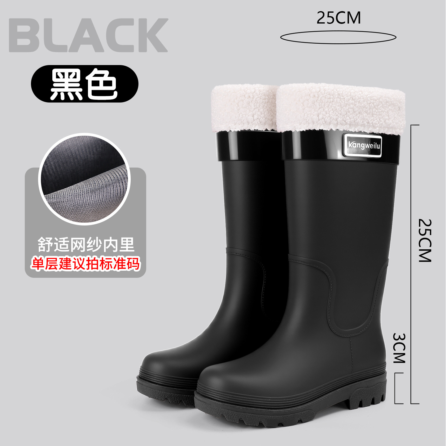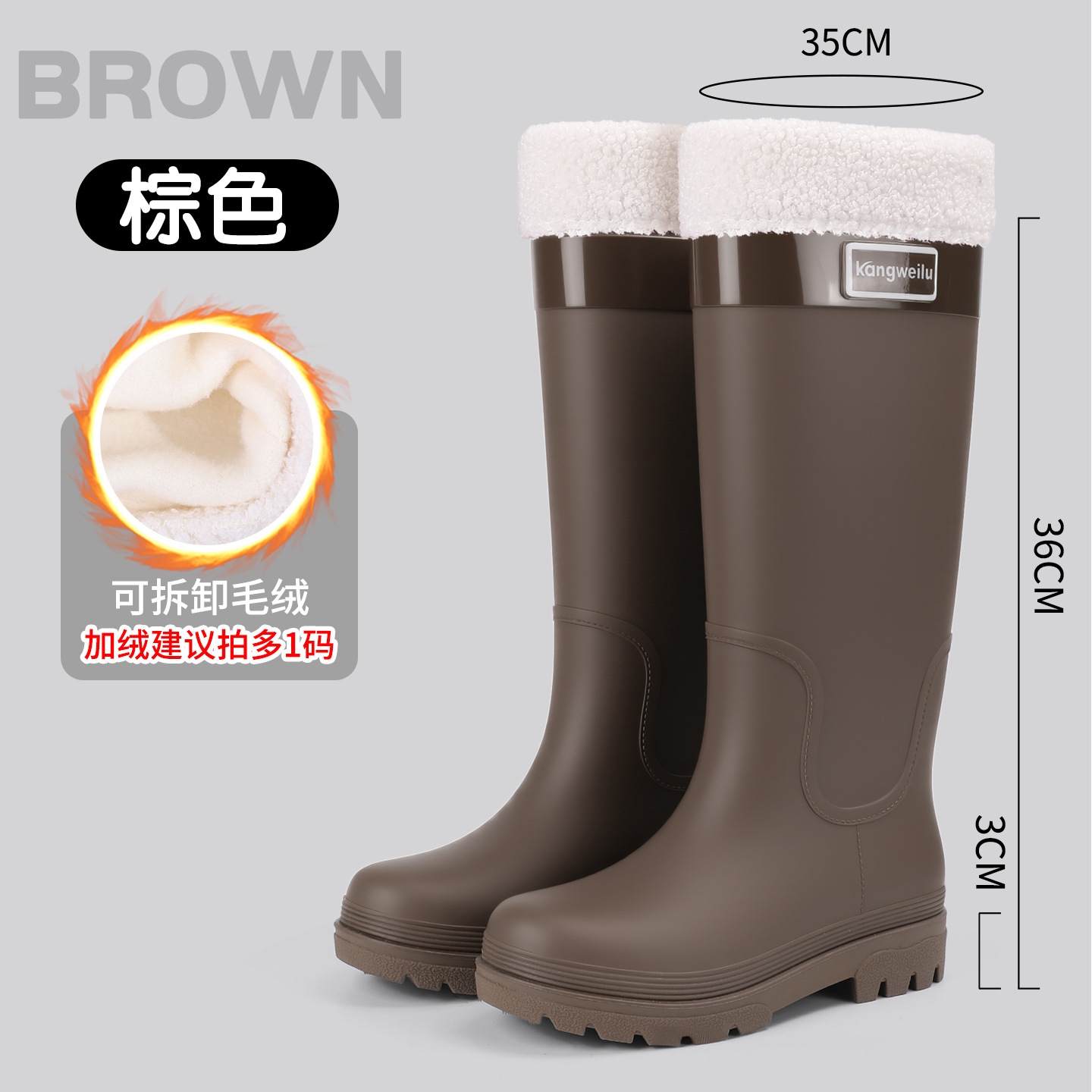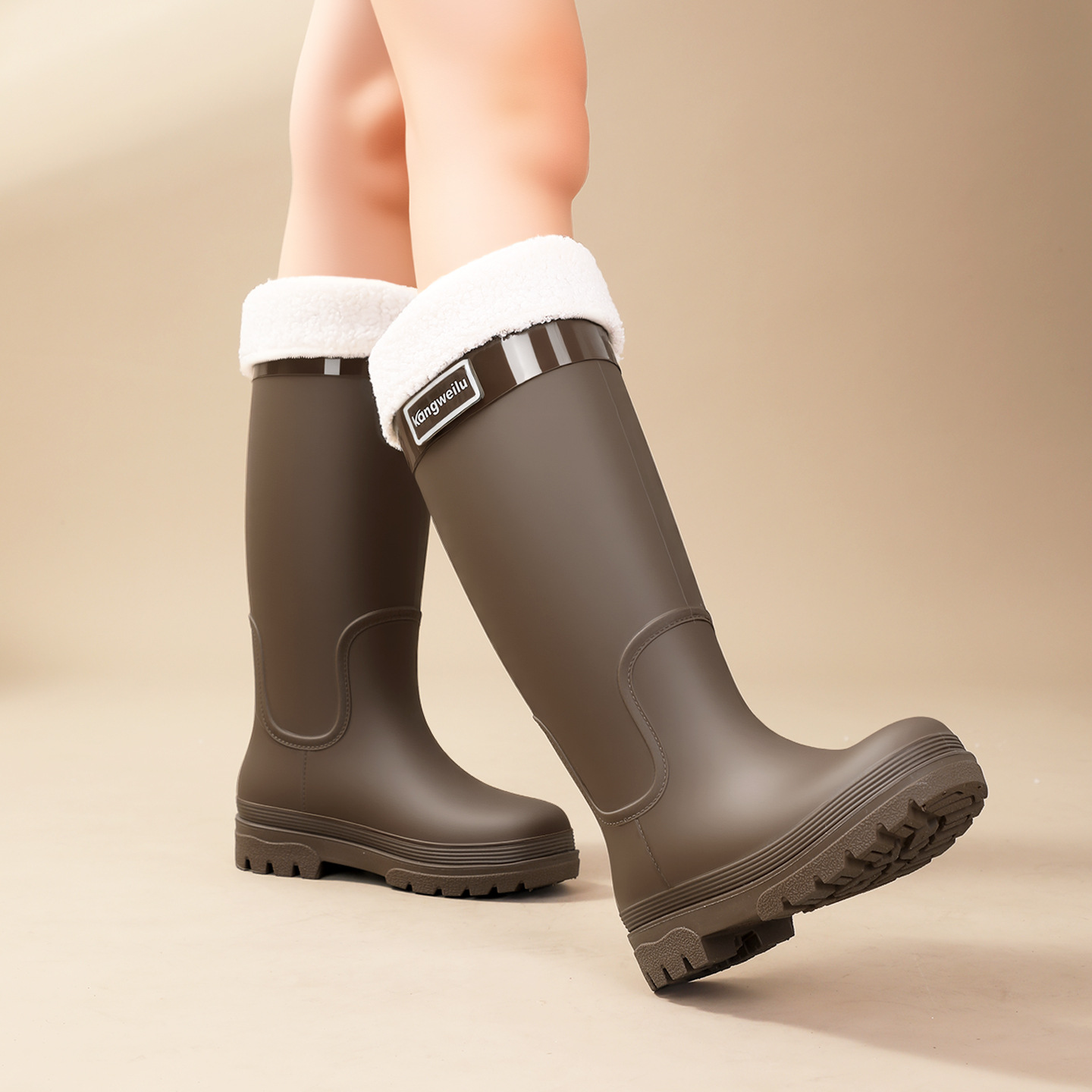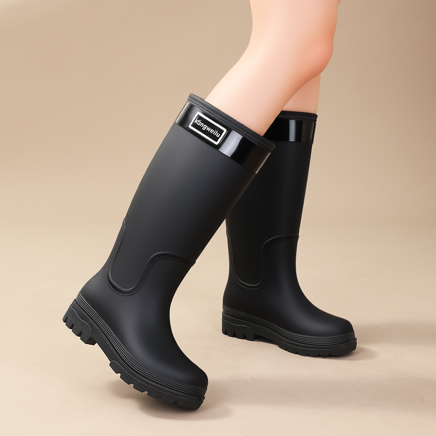新款跨境时尚高筒外穿防水雨靴女 防滑女式保暖加绒雨鞋女款