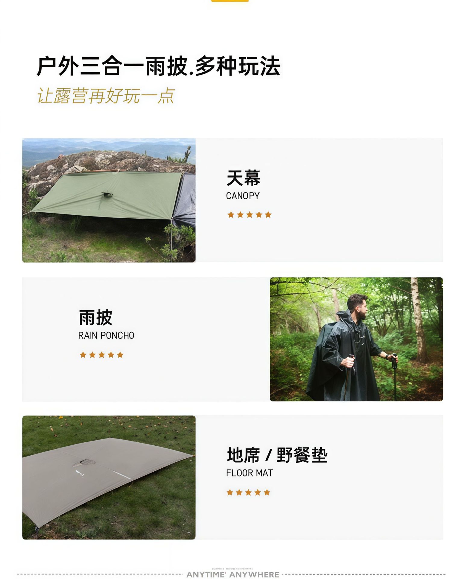 外贸三合一斗篷雨衣跨境户外背包登山天幕地席便携式连体成人雨披