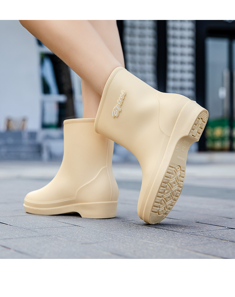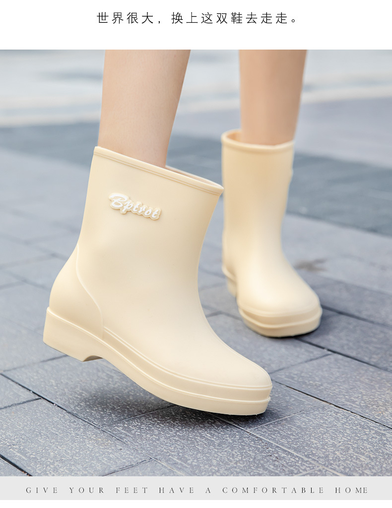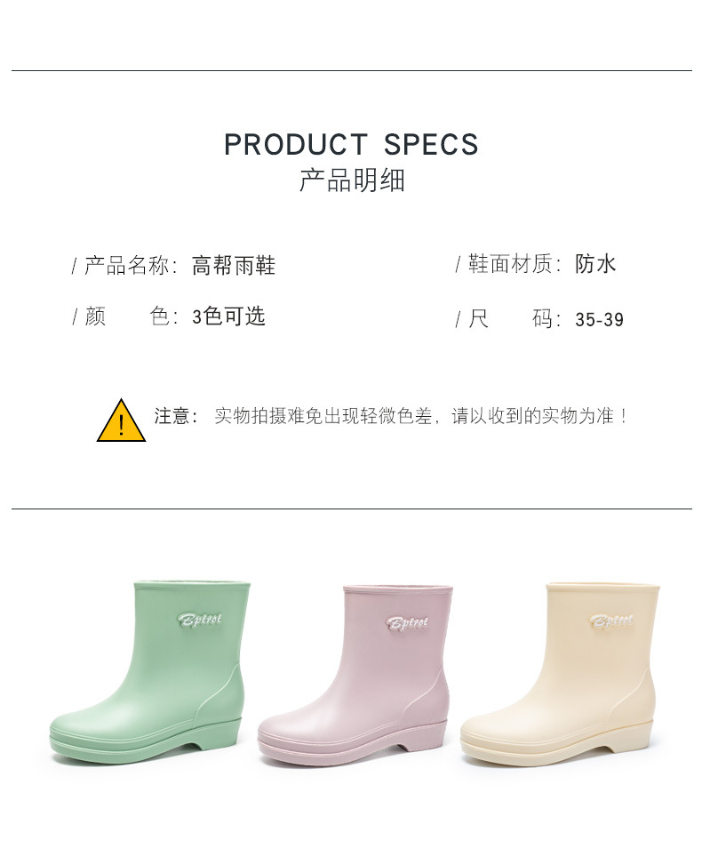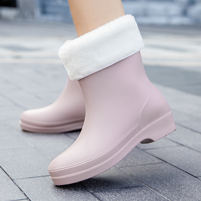 冬季爆款女士中筒雨鞋加棉保暖户外女雨鞋果冻色时尚女士雨季鞋