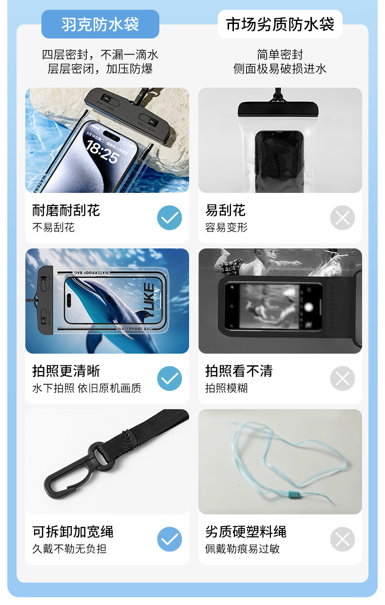 手机防水袋可触屏游泳漂流专用装备可拍照海边浮潜透明防水手机套