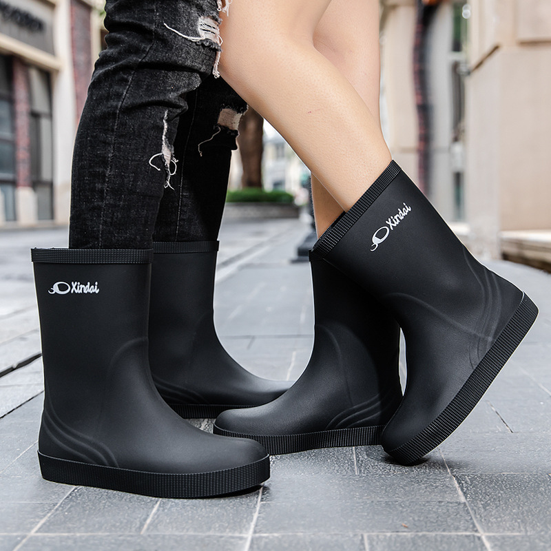 新款雨鞋女中筒潮流防水防滑耐磨水鞋工作雨鞋女成人洗车胶鞋男士