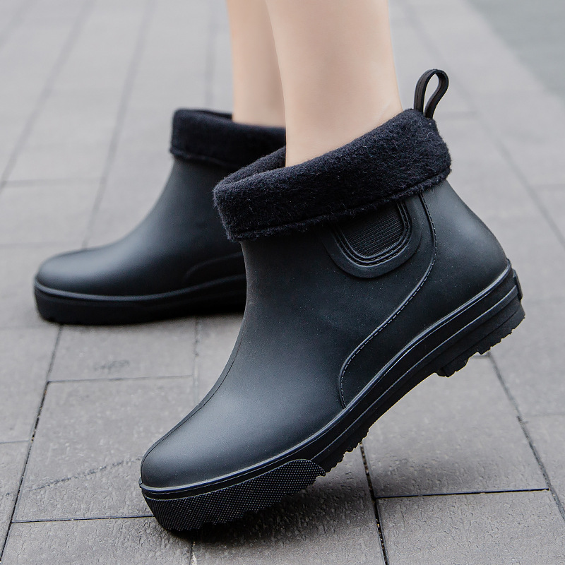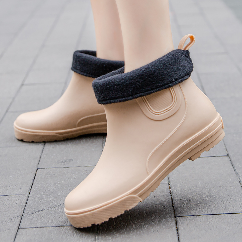 雨鞋新款外穿时尚女式雨靴加绒保暖防水防滑耐磨成人水鞋纯色胶鞋