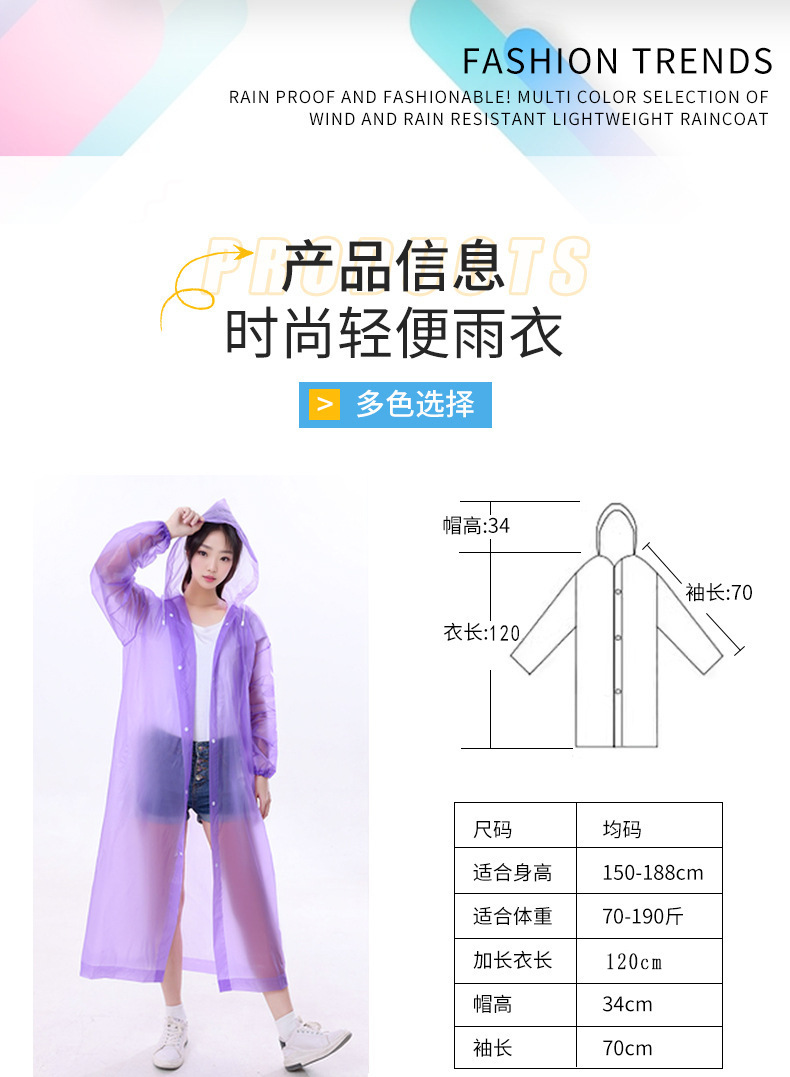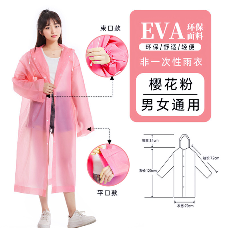 source manufacturer eva raincoat long body transparent thickened rainproof outdoor adult drawstring disposable raincoat