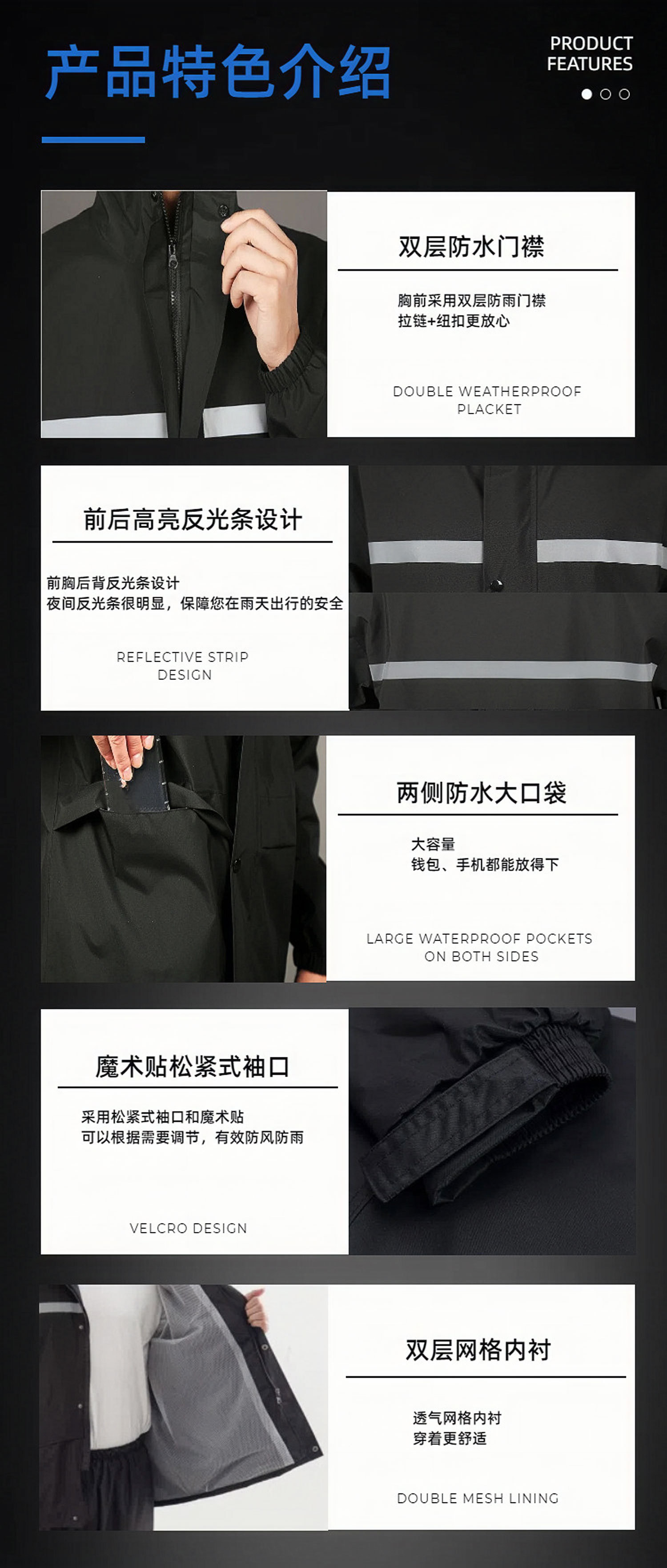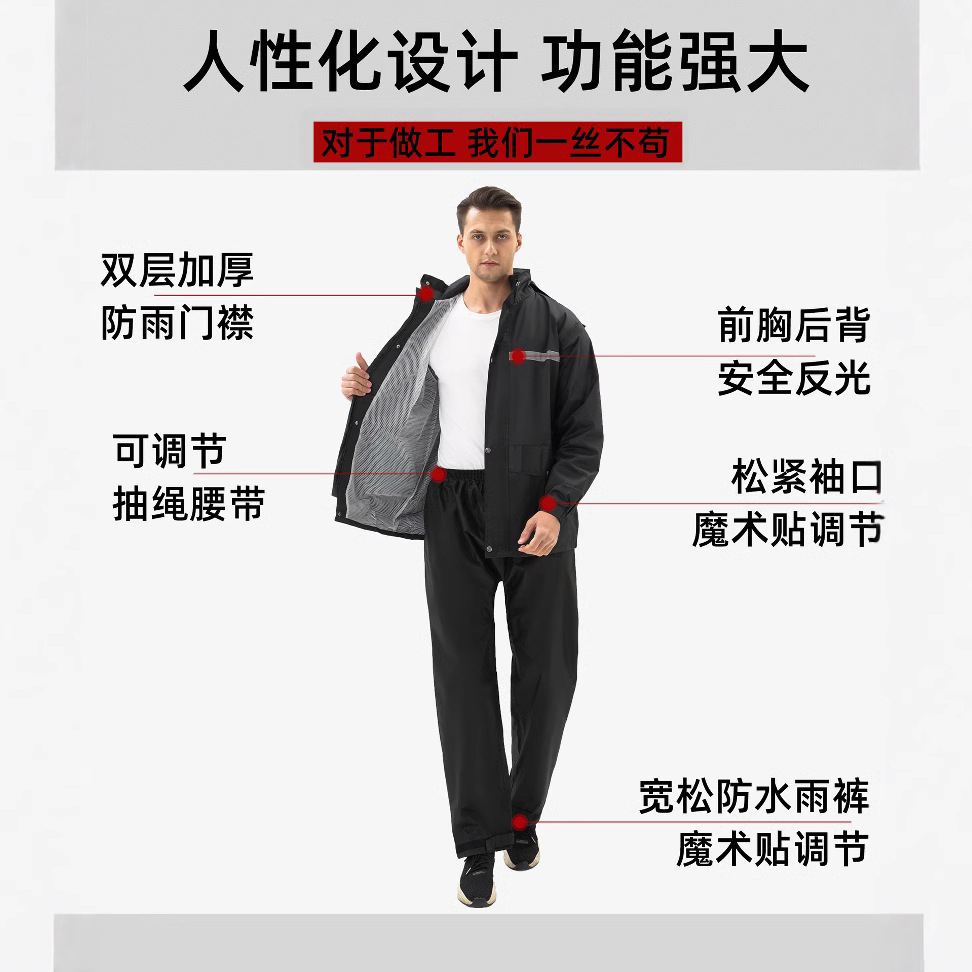 跨境雨衣雨裤套装反光加厚分体式环卫执勤双层防暴雨防汛雨衣批发