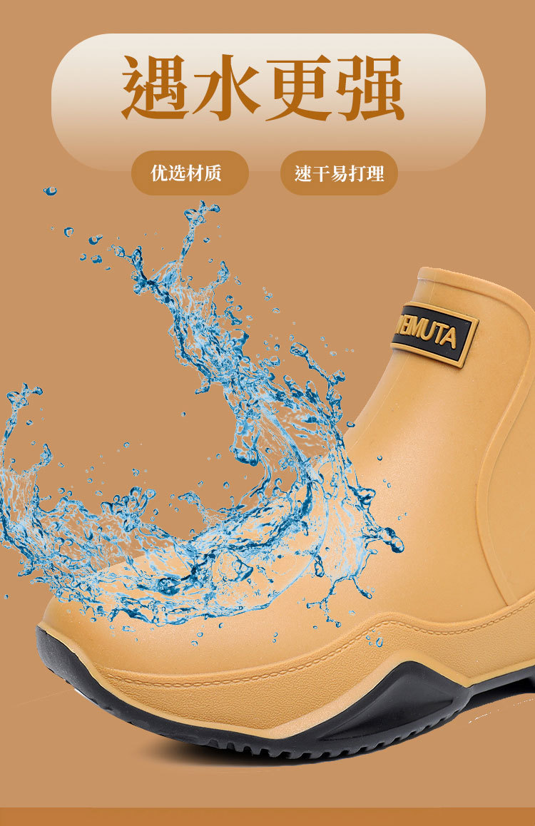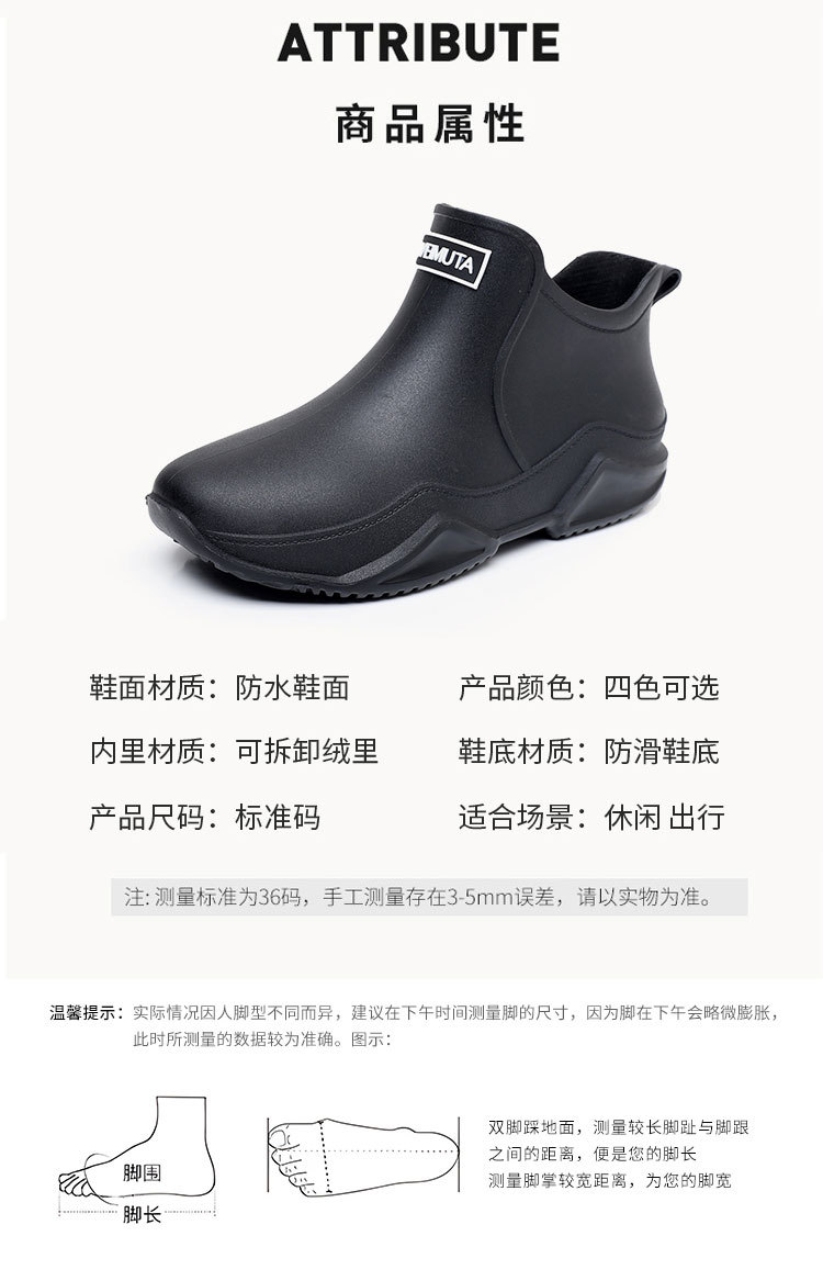 时尚雨鞋男士水靴女款四季防滑防水鞋雨靴情侣低短筒厨房胶鞋跨境