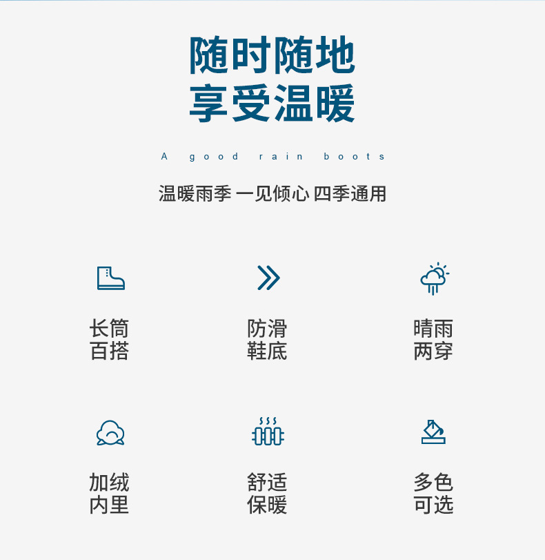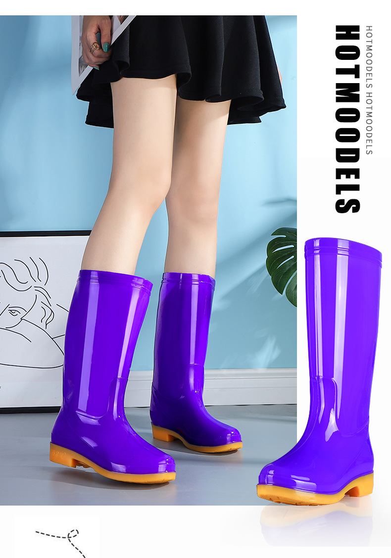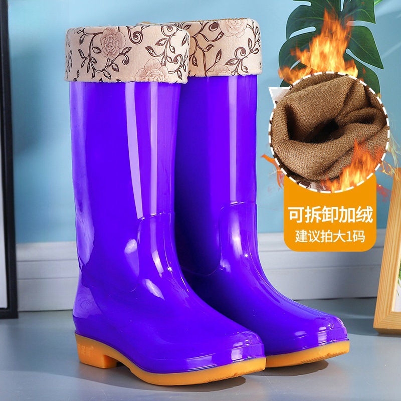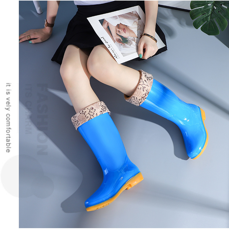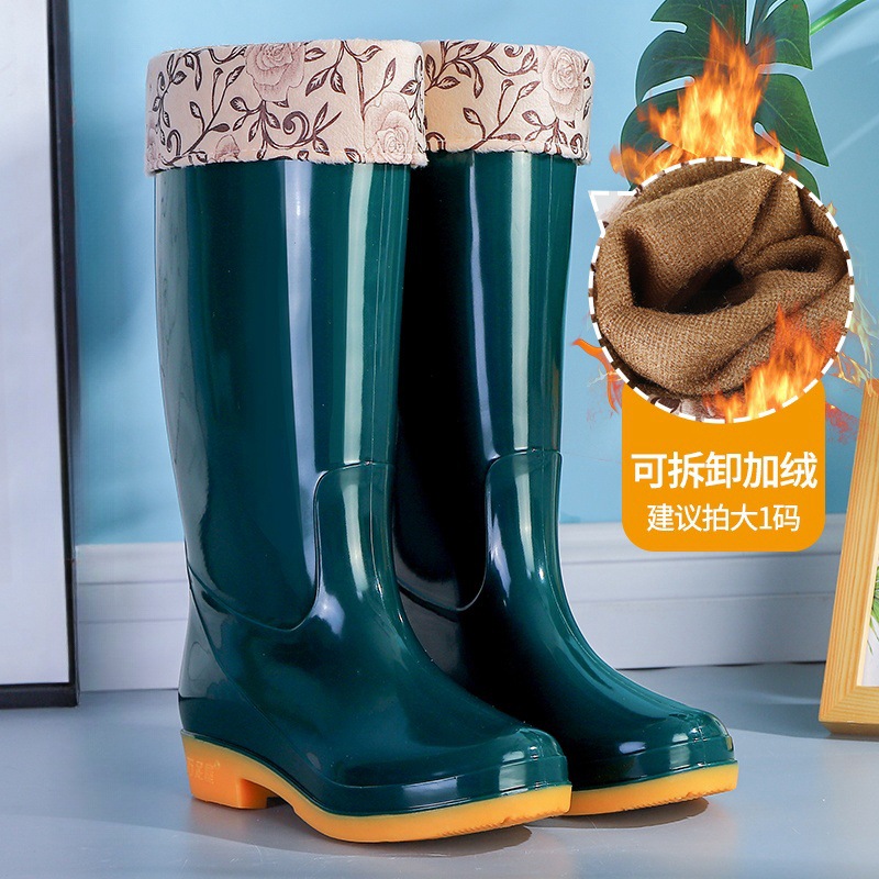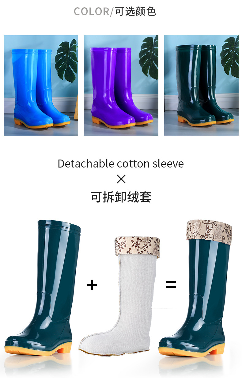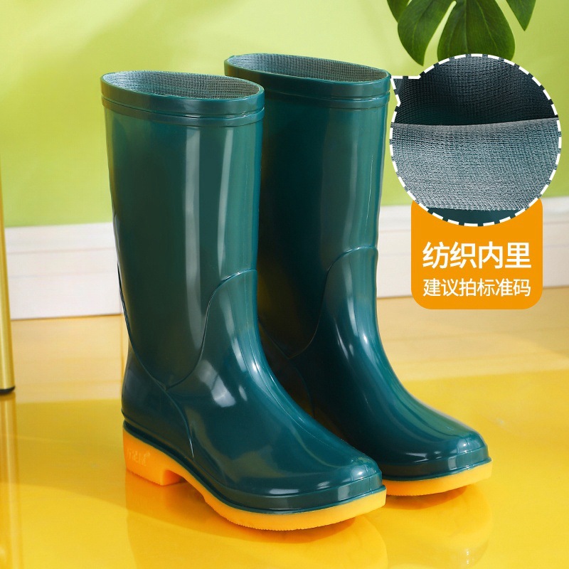 高筒夏季高帮雨鞋女士防滑牛筋底加厚加棉保暖水鞋耐磨胶鞋女