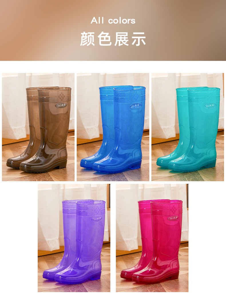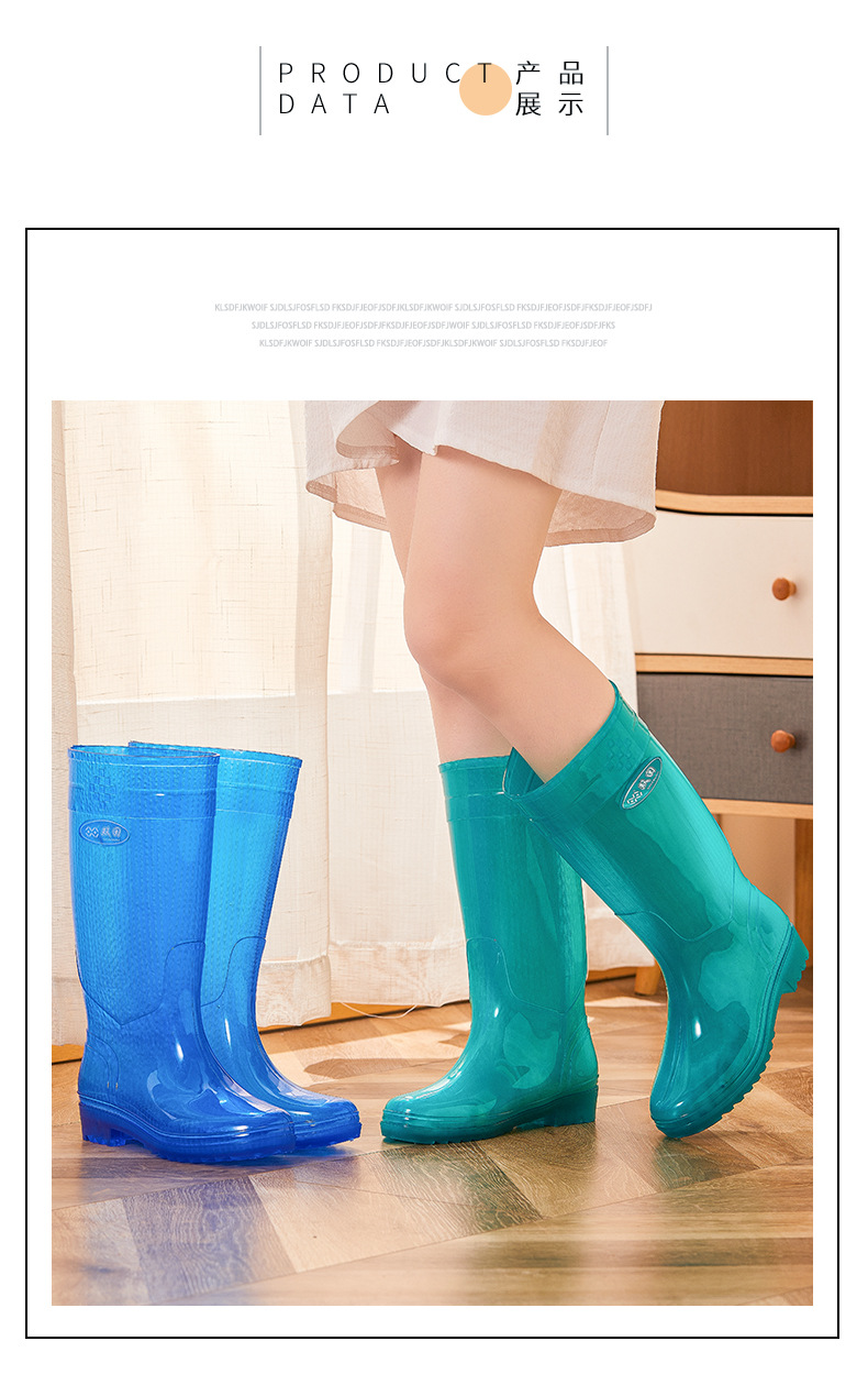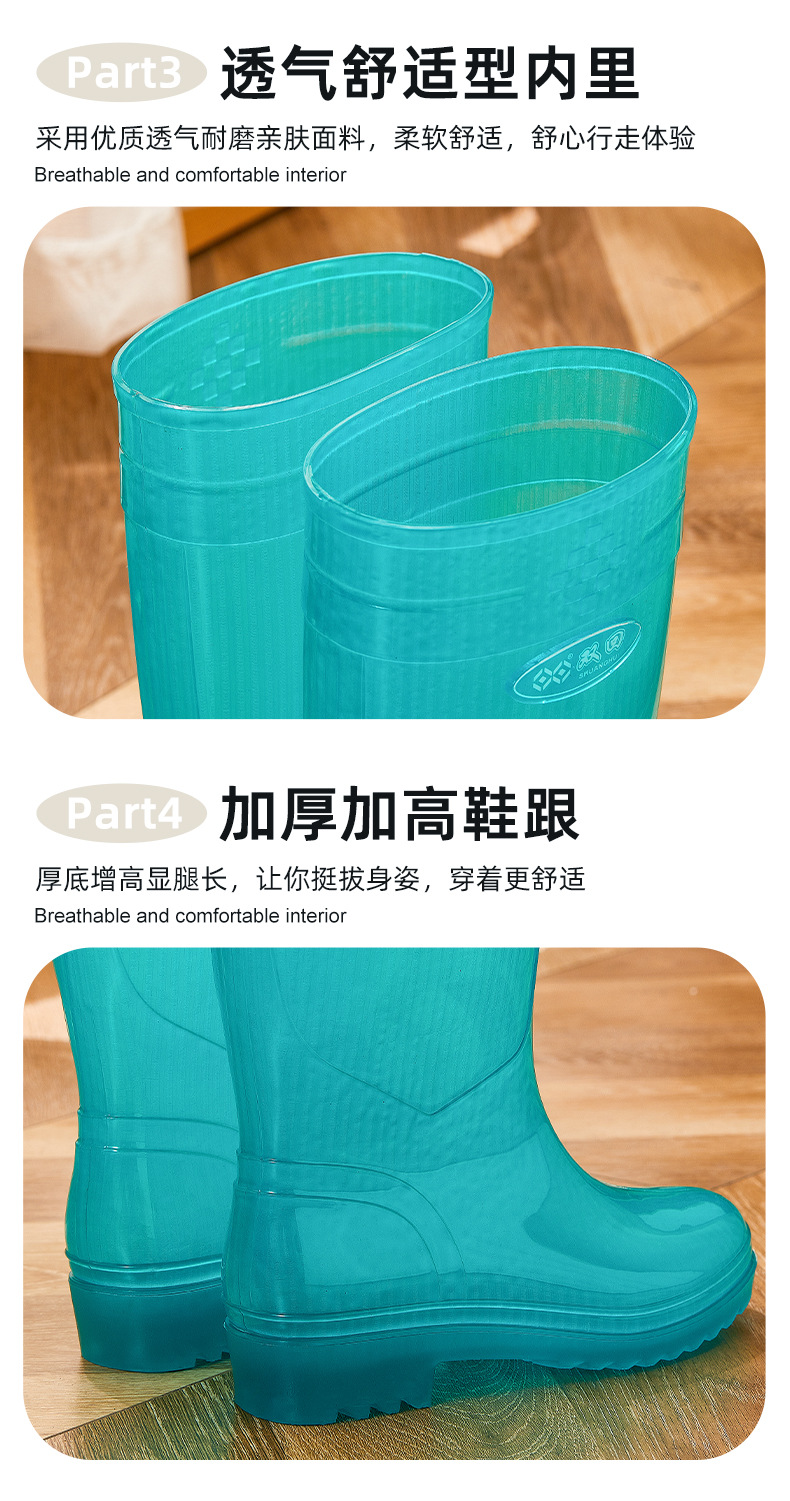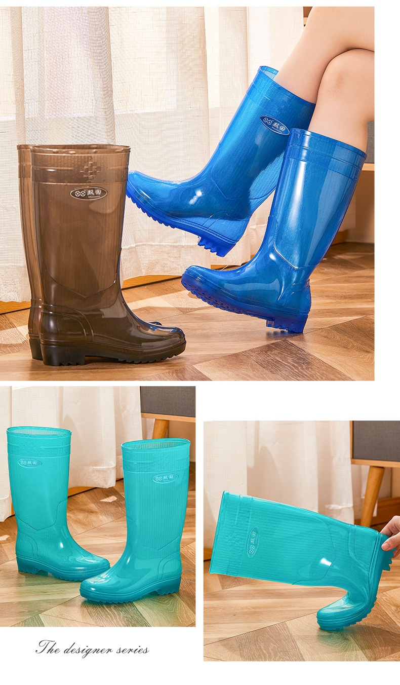 无里布速干高筒碧蓝女士雨鞋女防水劳保鞋防滑胶鞋长筒雨靴速洗款