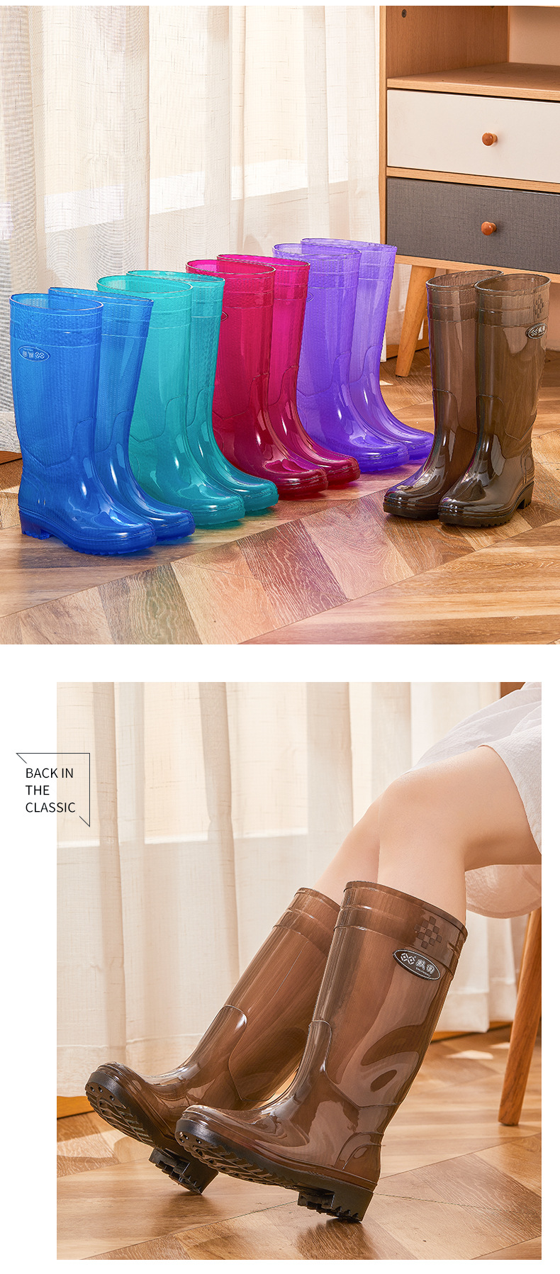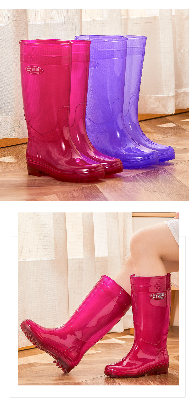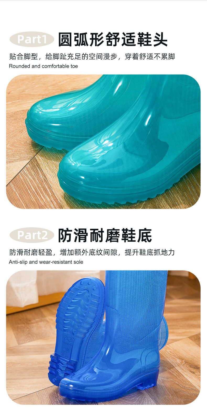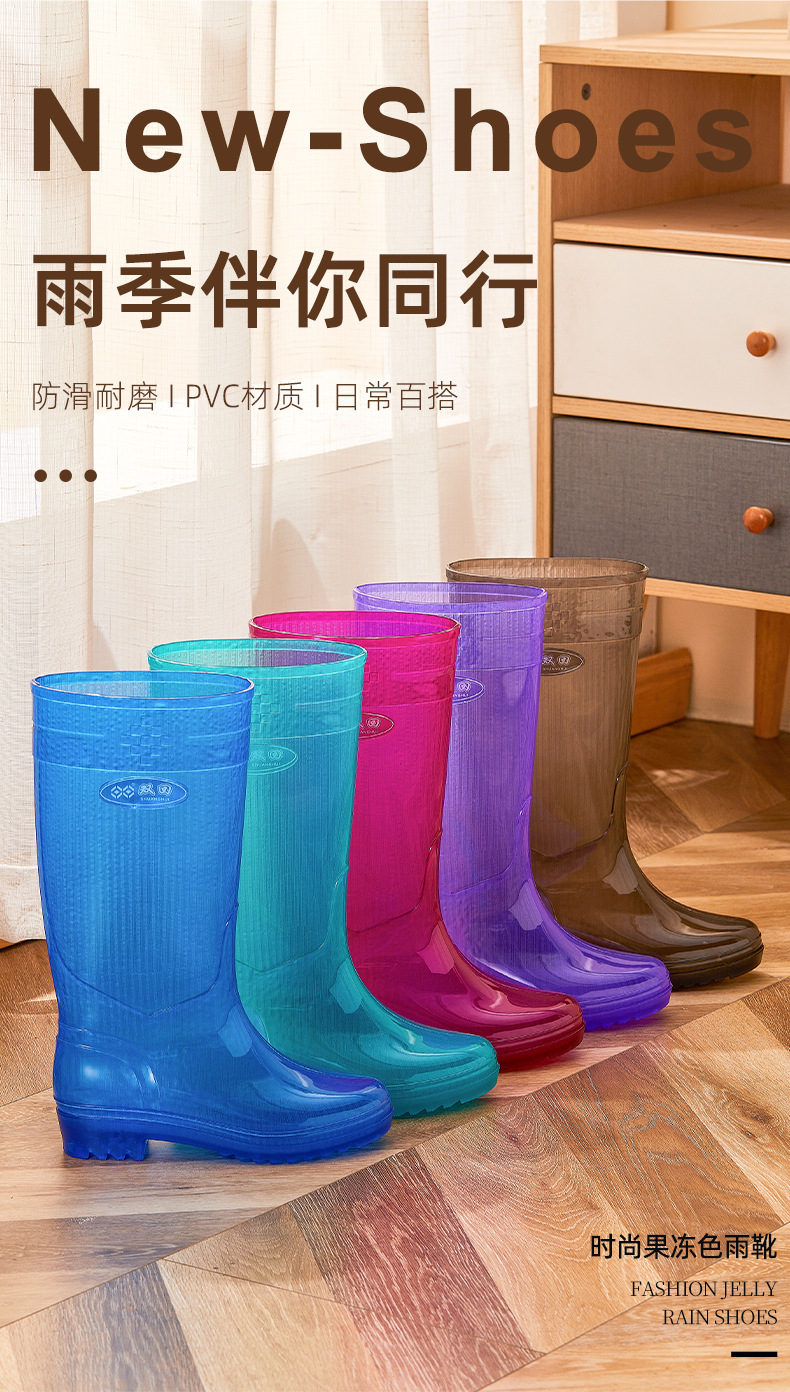 无里布速干高筒碧蓝女士雨鞋女防水劳保鞋防滑胶鞋长筒雨靴速洗款