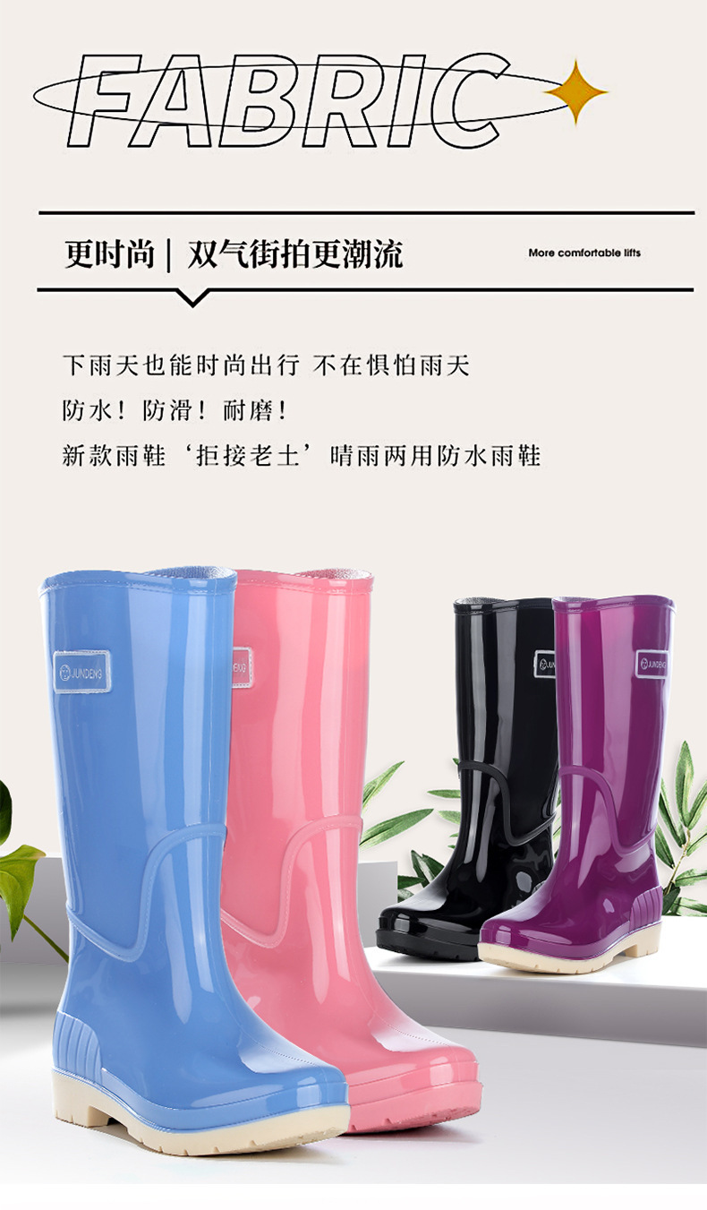 水鞋女高筒外穿防水防滑雨鞋军登雨靴黑色长筒防滑鞋厨房高筒雨靴
