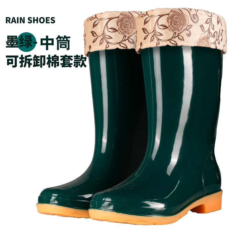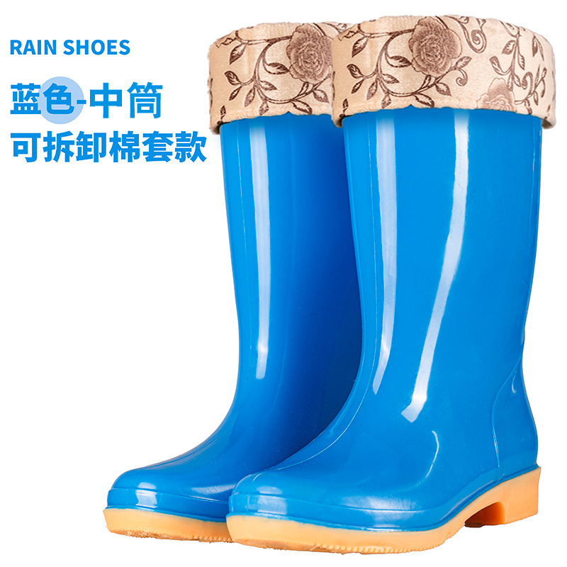 外贸女士成人雨鞋高筒中筒防水防滑胶鞋加棉厨房工作雨靴淘宝爆款