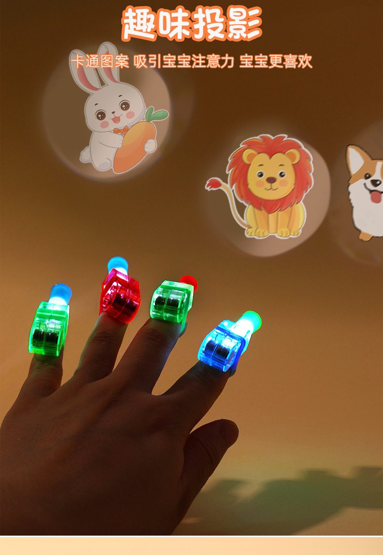 卡通图案儿童手指投影灯发光玩具LED摆地摊发光戒指灯手指灯批发