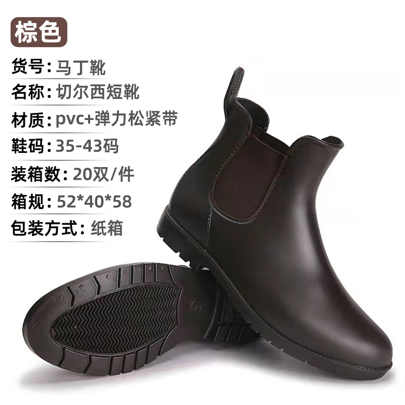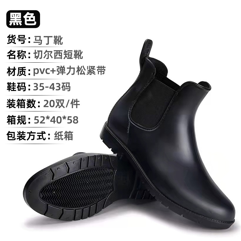 雨鞋女式跨境切尔西短筒松紧雨靴马丁靴防滑水靴雨靴中筒成人套鞋