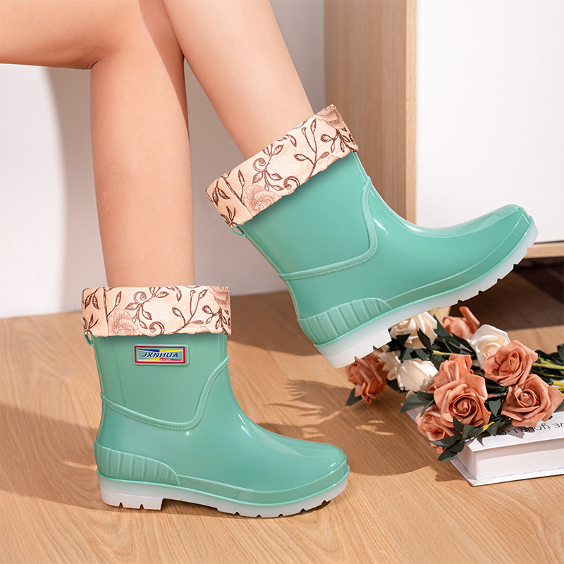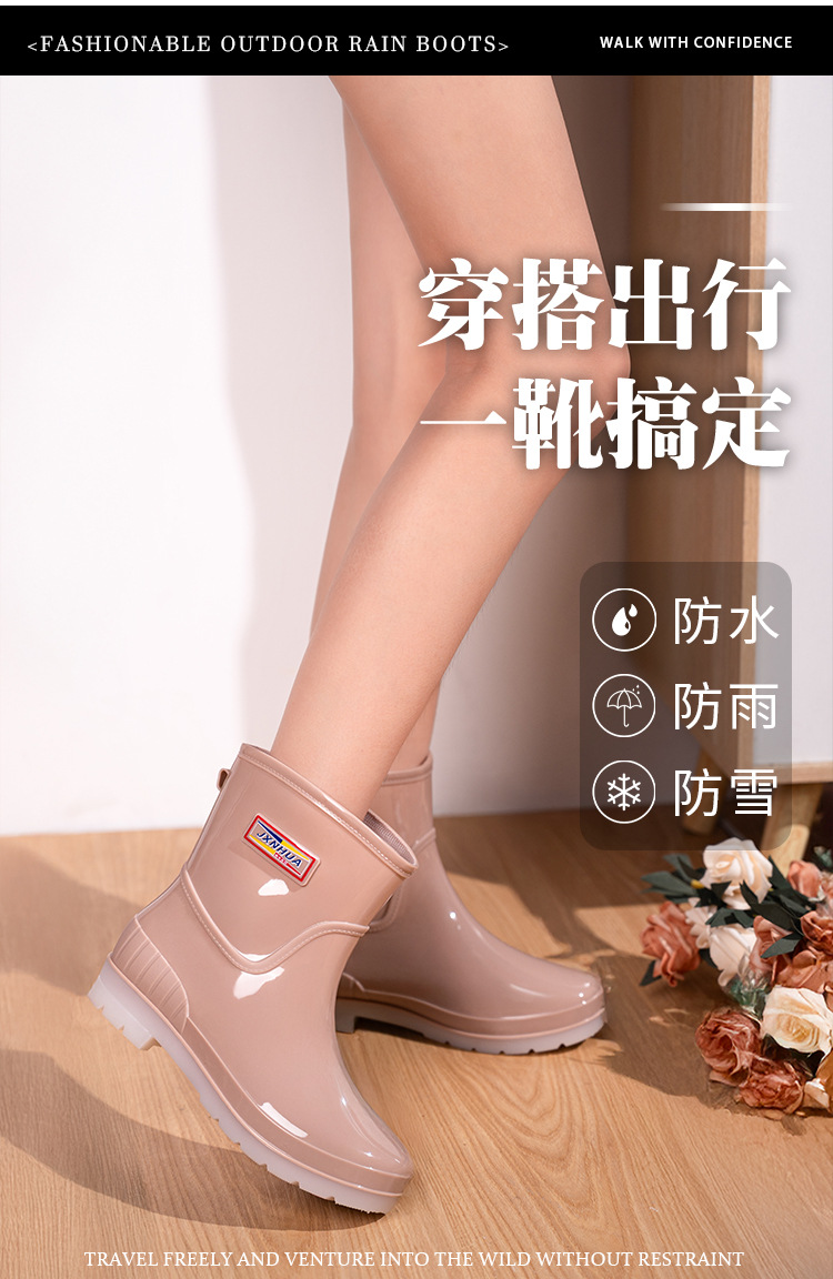 跨境中筒时尚女款水鞋新款时尚防水防滑耐磨个性雨鞋四季保暖水靴
