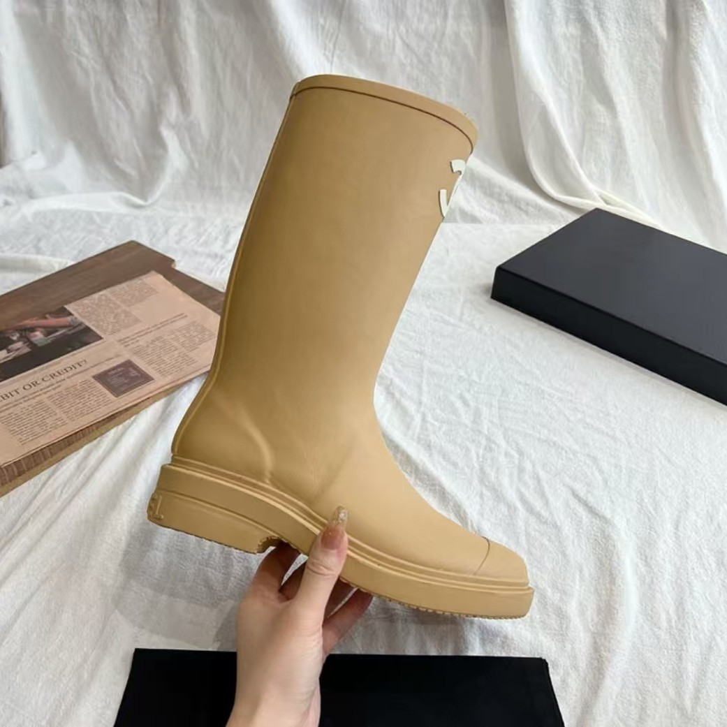 高版本2025新款秋冬黑色圆头高筒骑士靴防滑水靴小香风雨靴长筒靴
