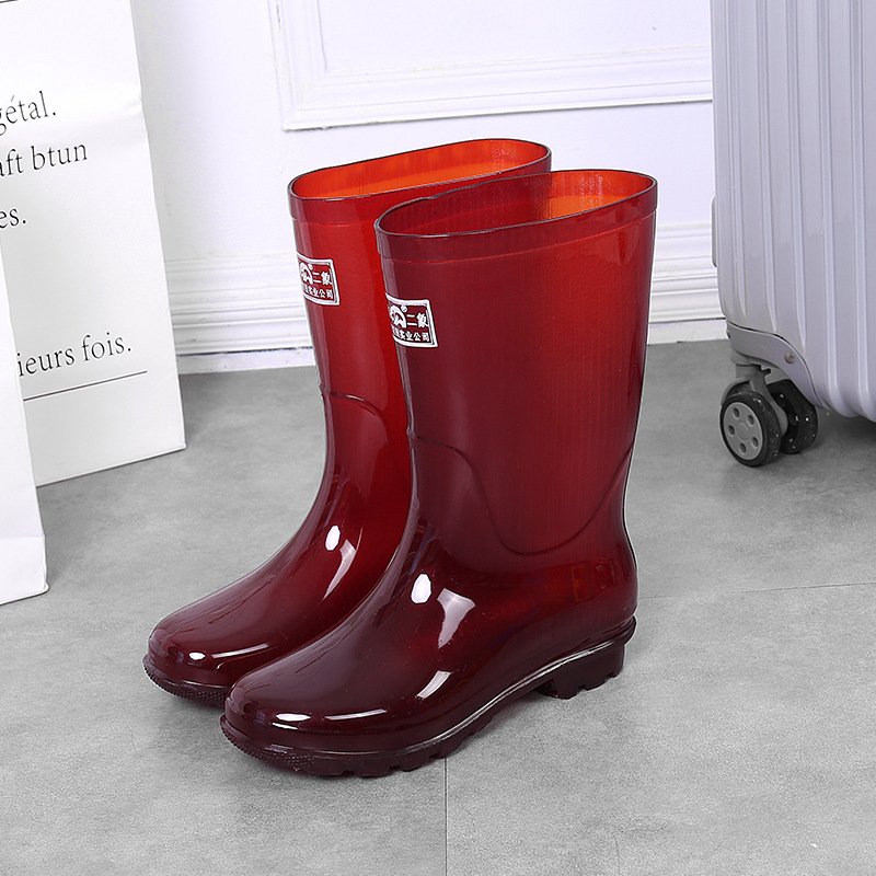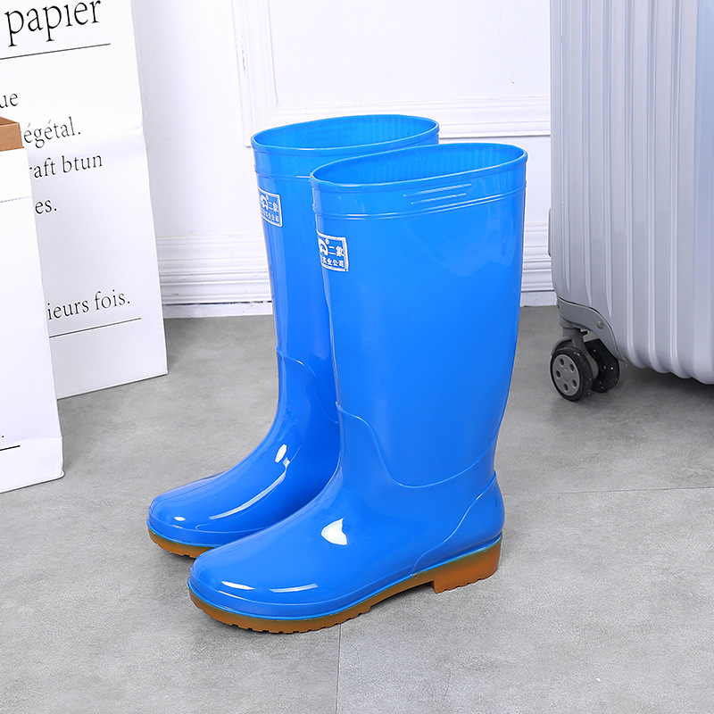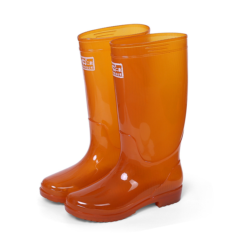 上海双钱二象女式高筒雨靴金黄色低跟揭阳水鞋批发PVC无里布雨鞋