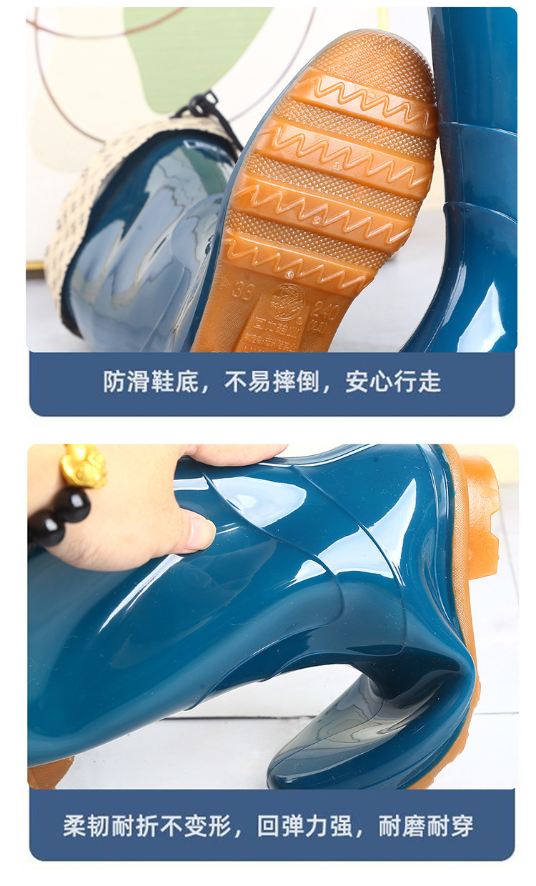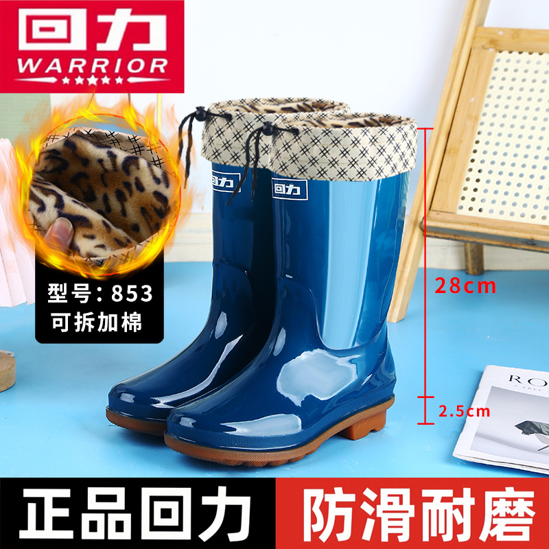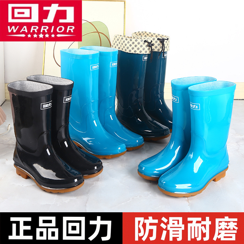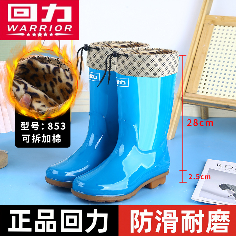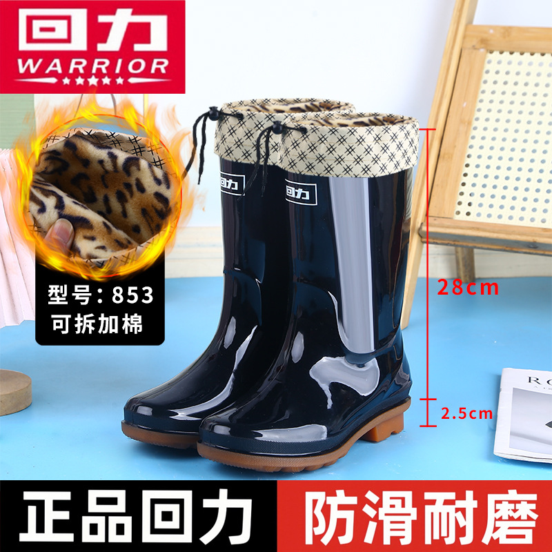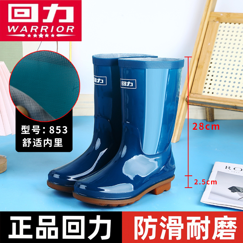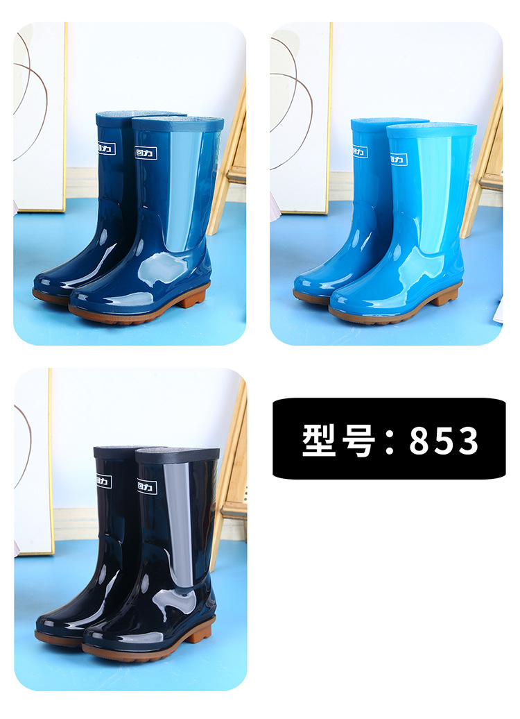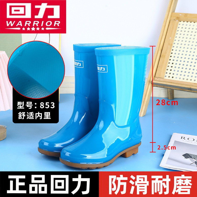 回力雨鞋女士853中筒水鞋牛筋底雨靴厨房防滑防水靴劳保胶鞋批发