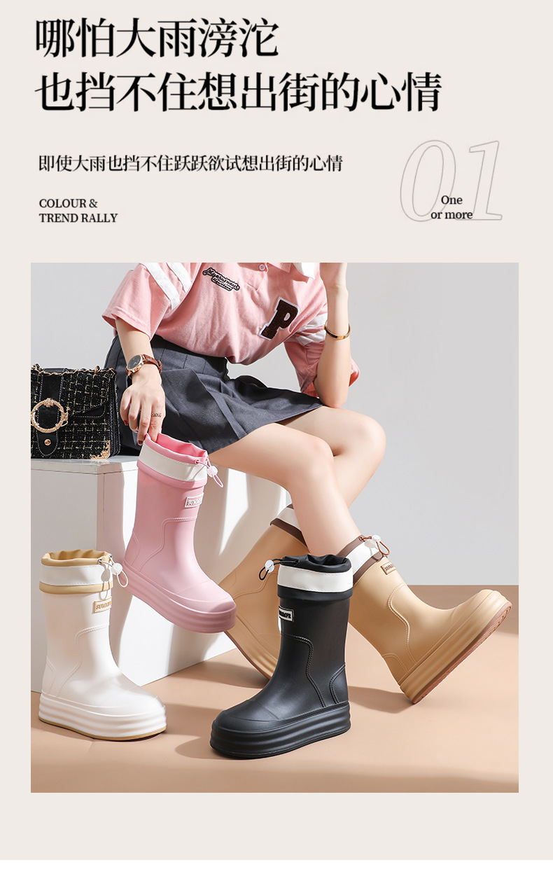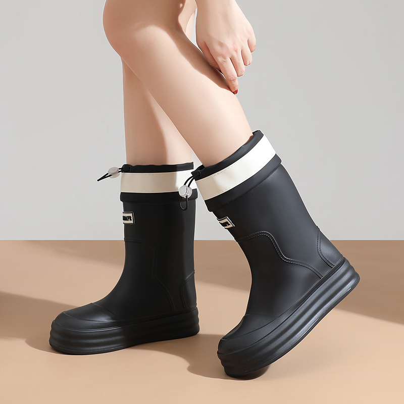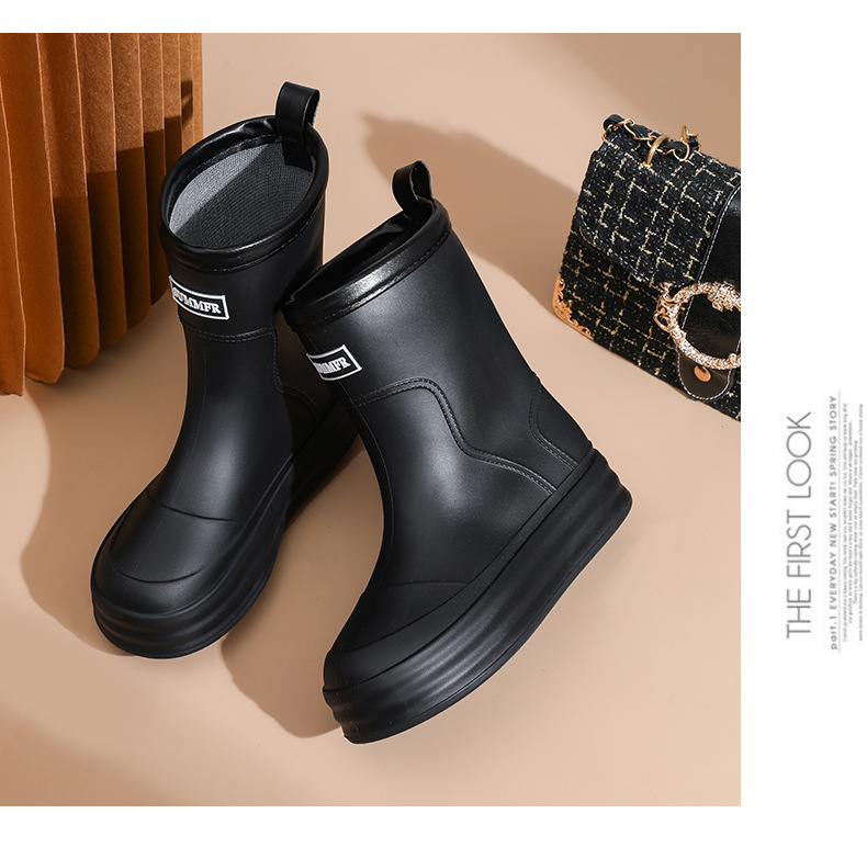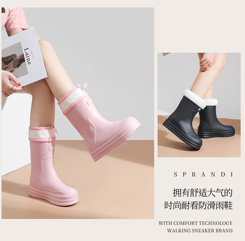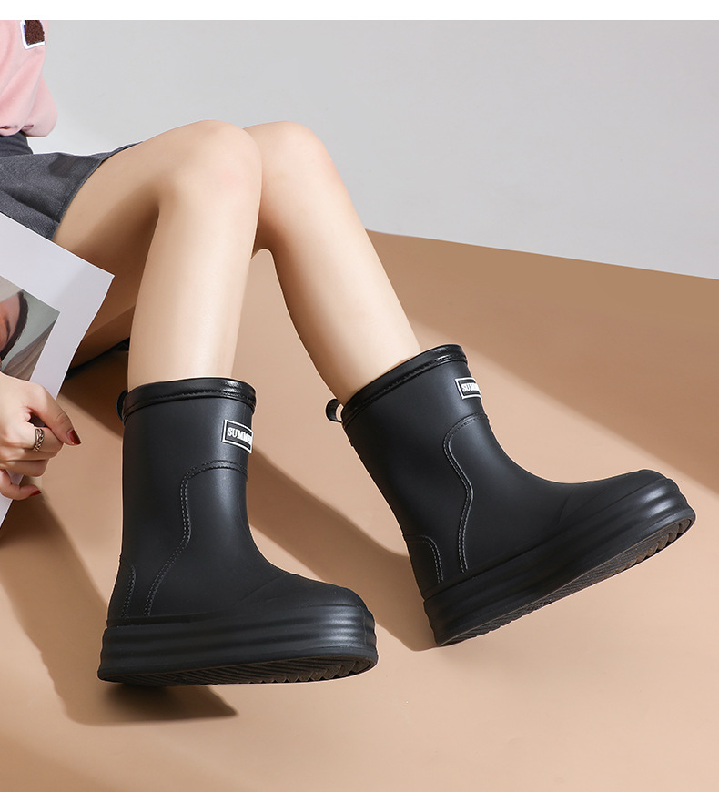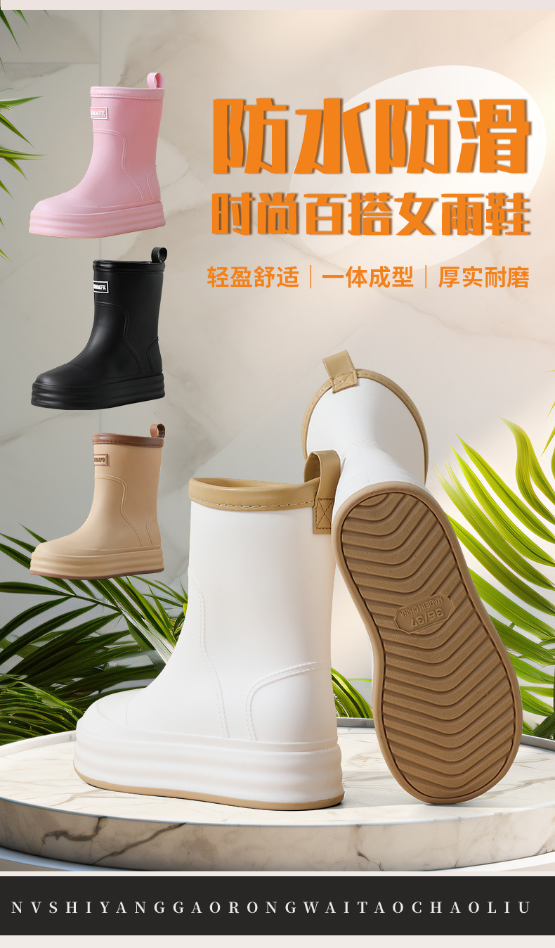 雨鞋女款2024新款中筒防滑水鞋加绒时尚外穿高筒雨天雨靴软底胶鞋